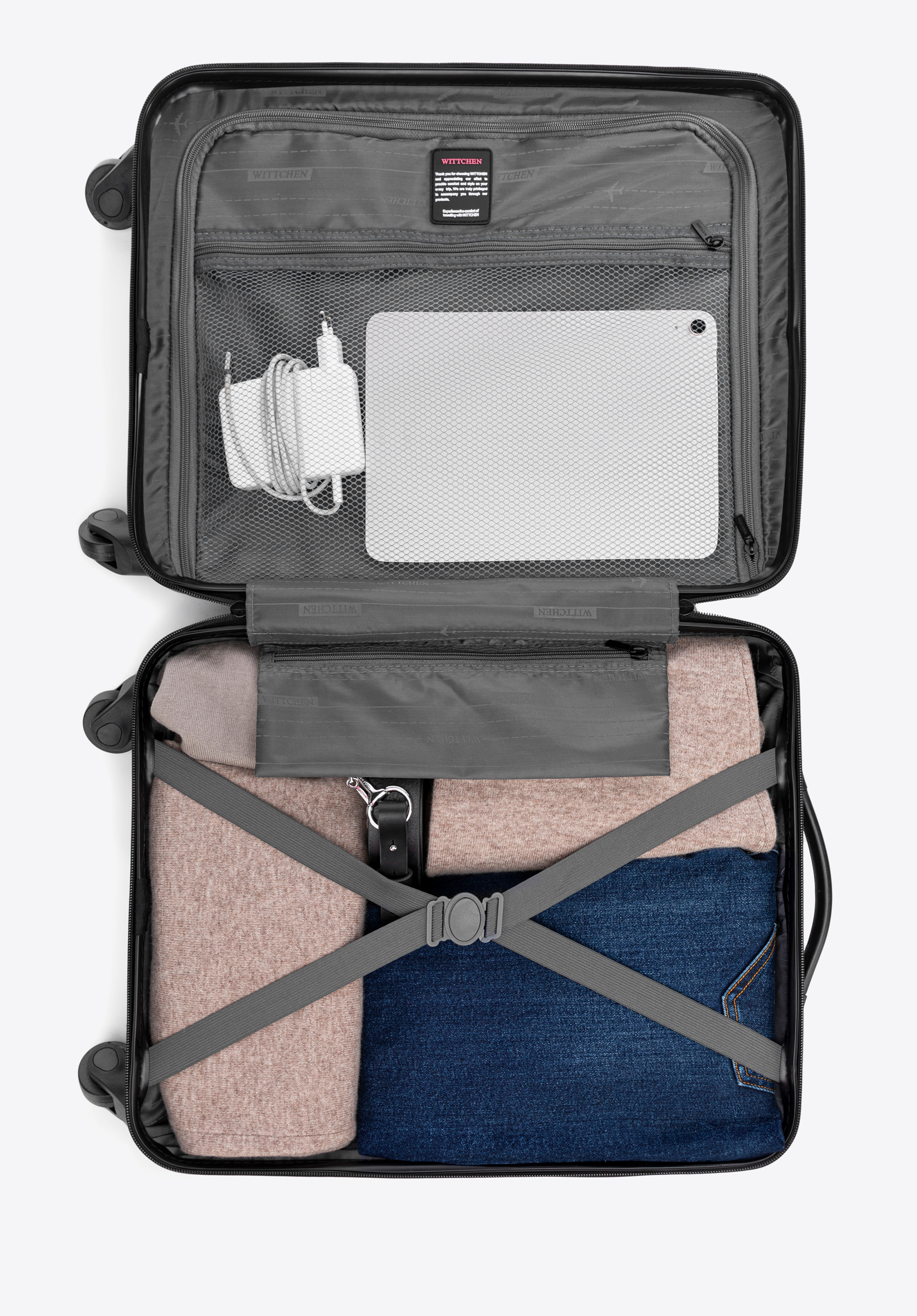 hlavný priestor s elastickými popruhmi na zabránenie pohybu oblečenia;