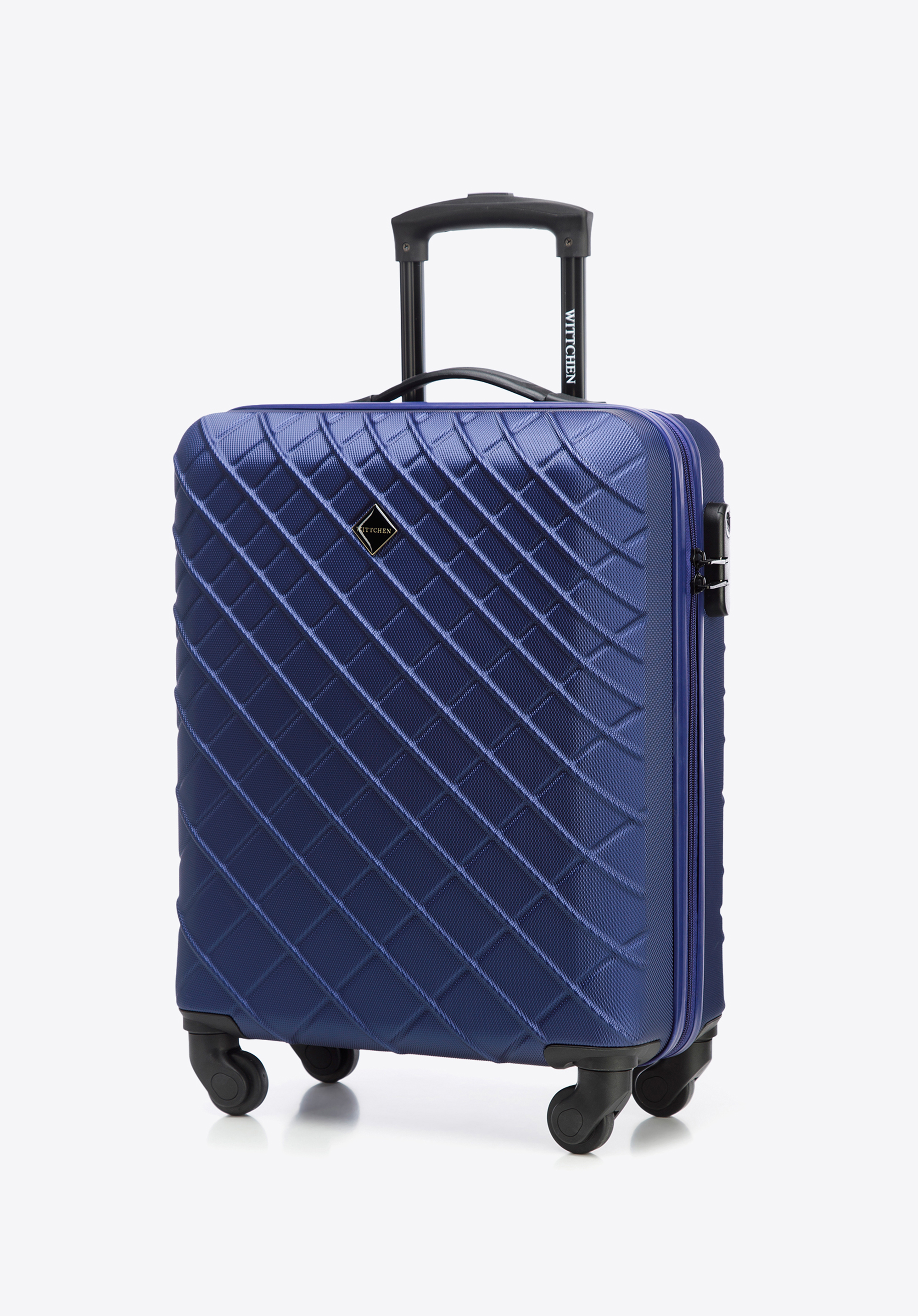 Kabínový kufor z ABS s diagonálnym károvaným vzorom tmavomodrý
