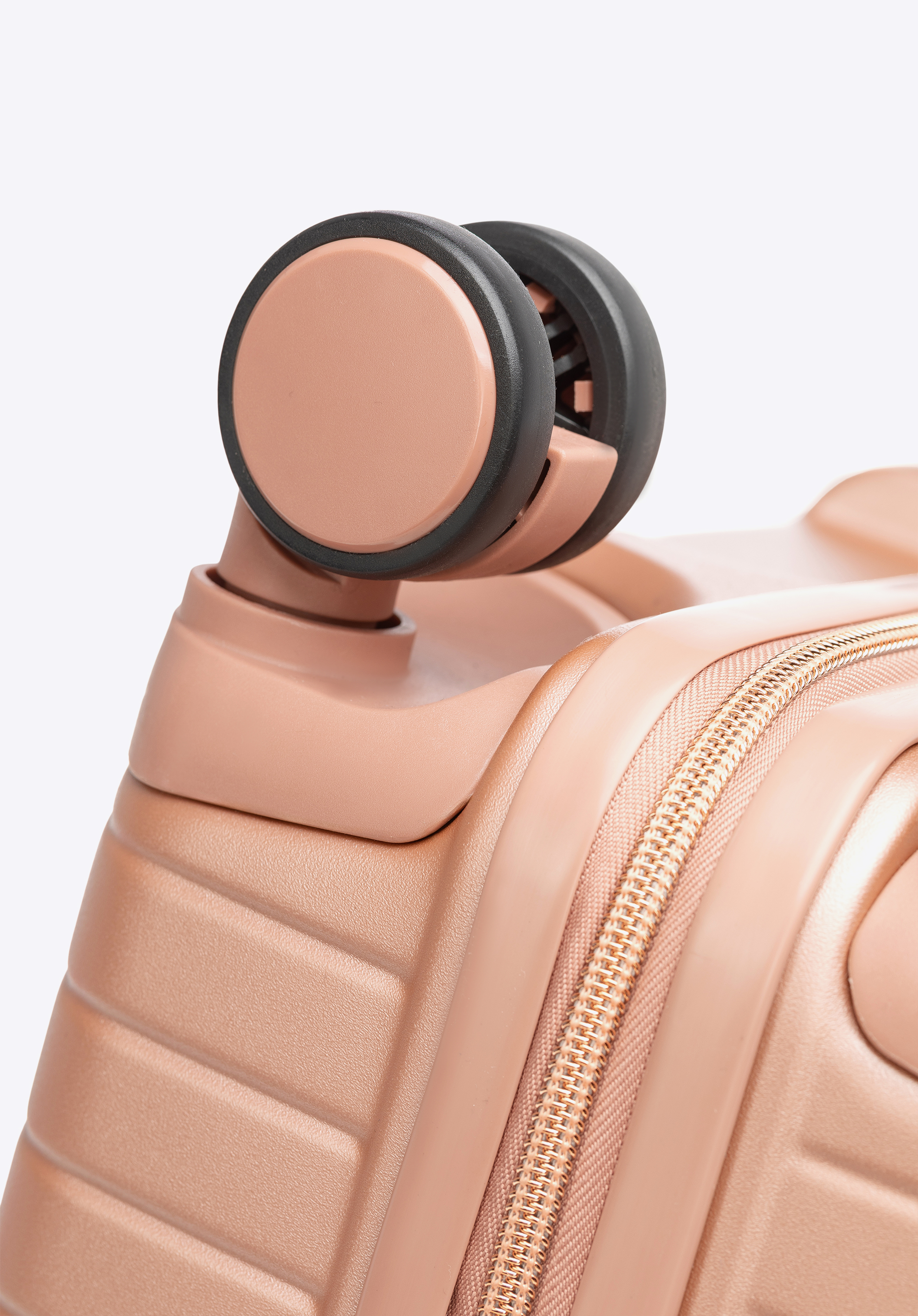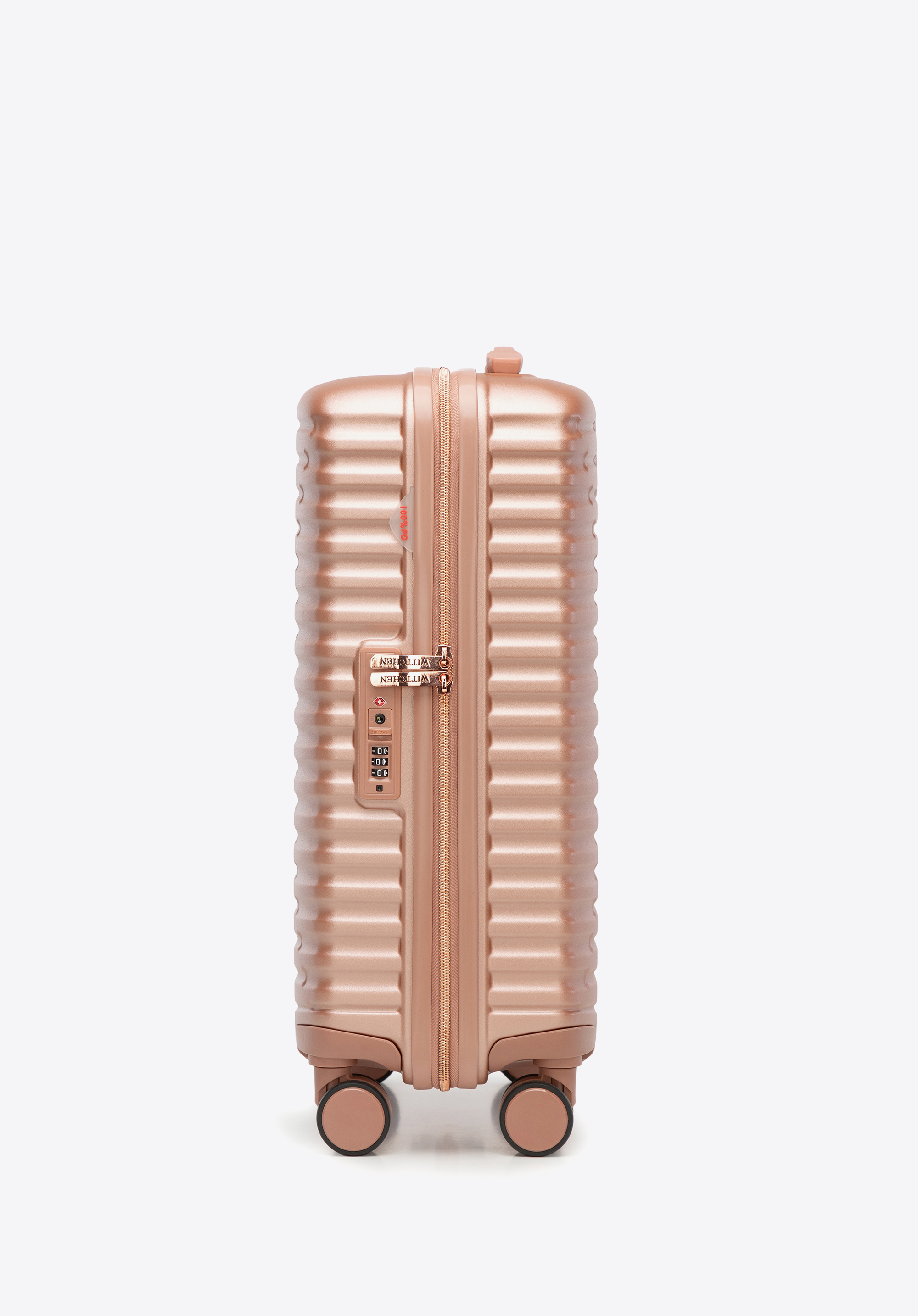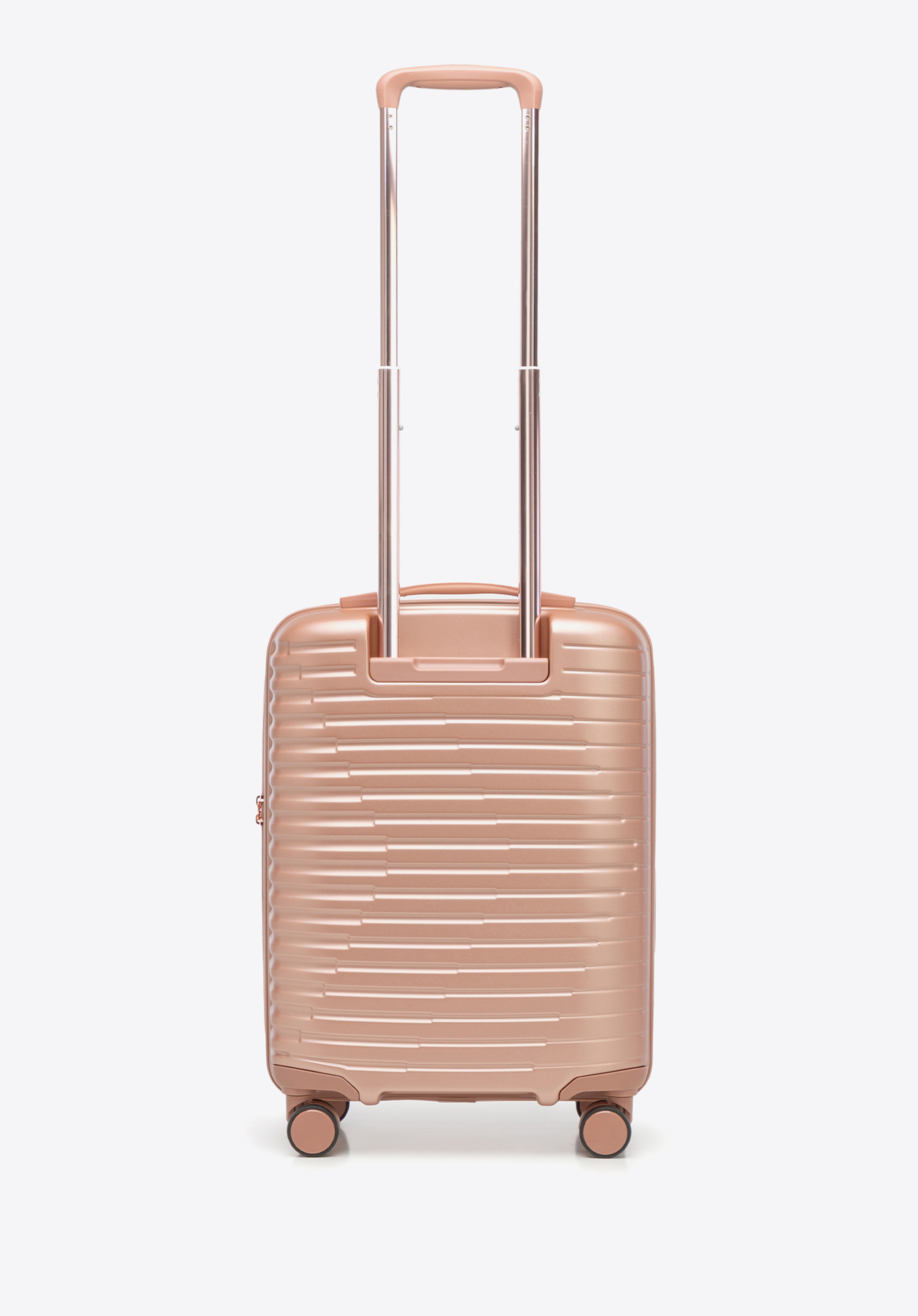 Kabinový kufor z polykarbonátu s horizontálnym rebrovaním. Farba: ružové zlato