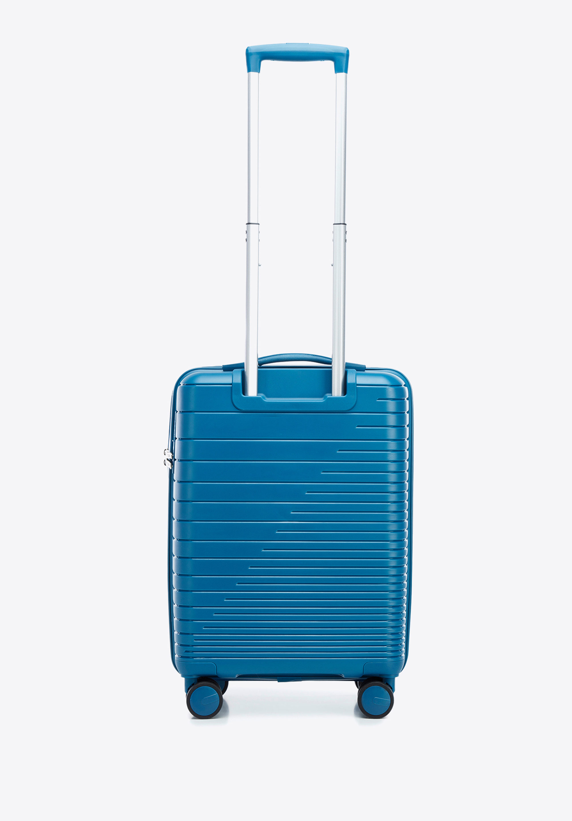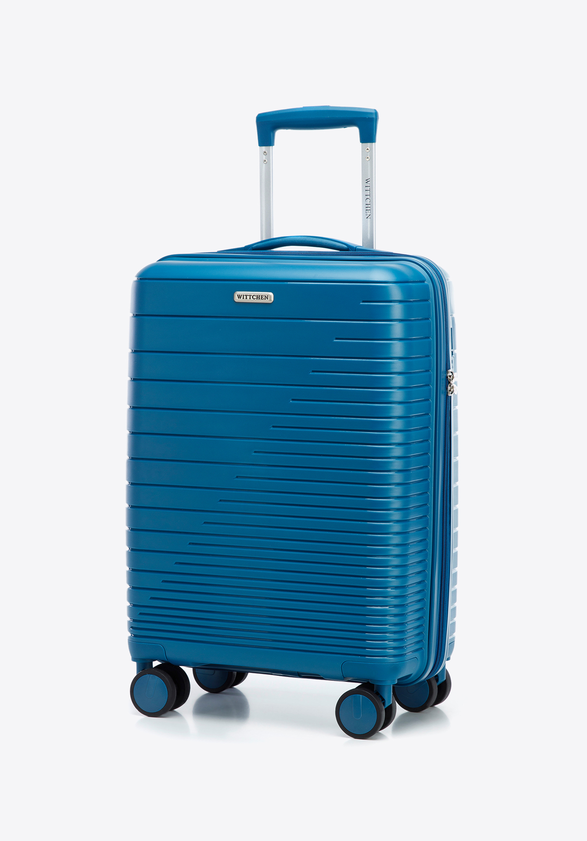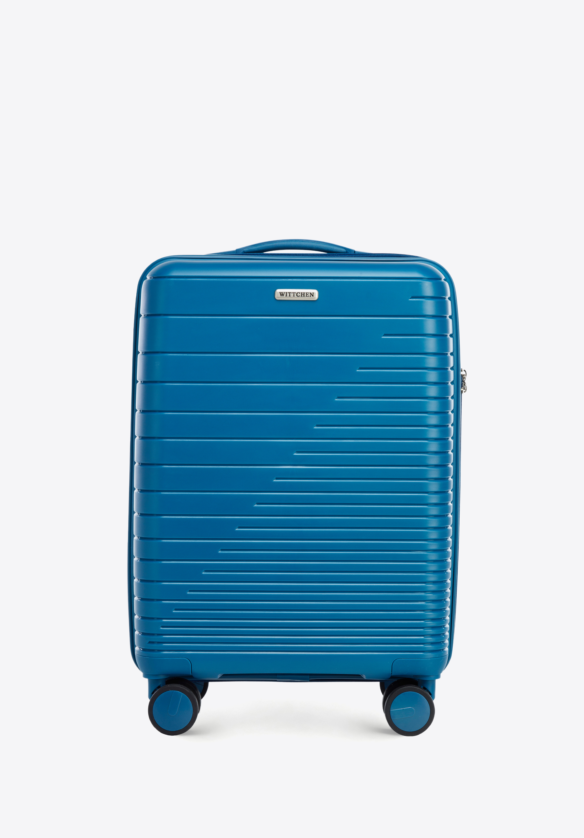 Kabínový kufor z polypropylénu s lesklými pruhmi modrý