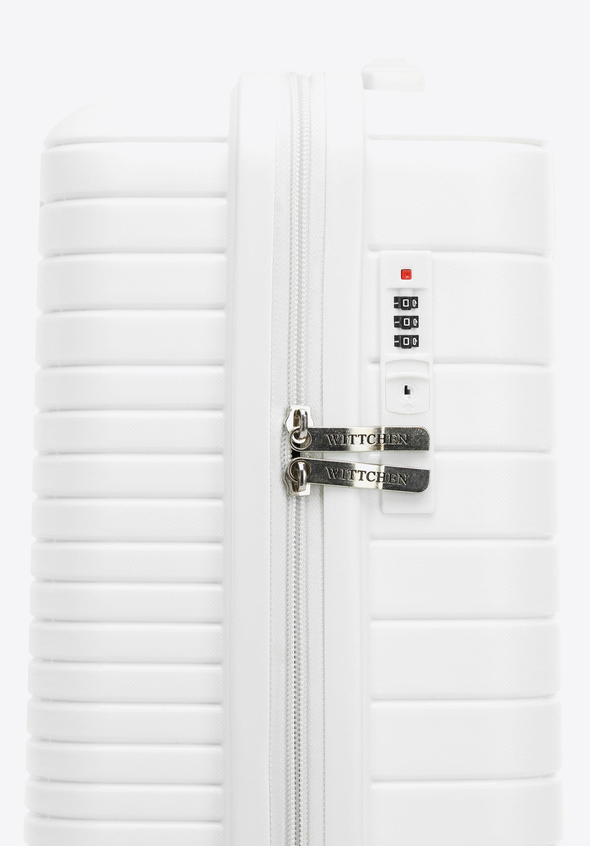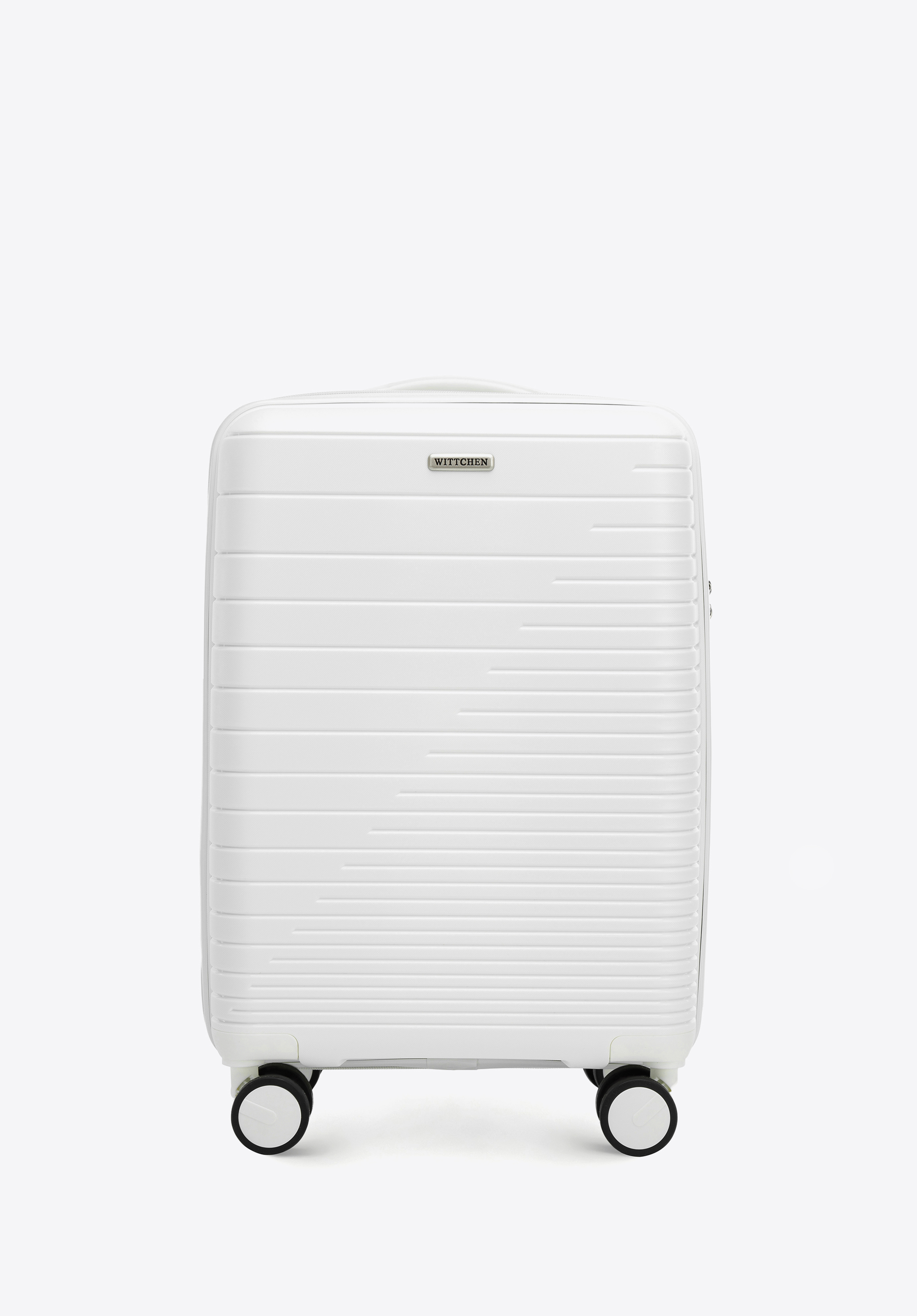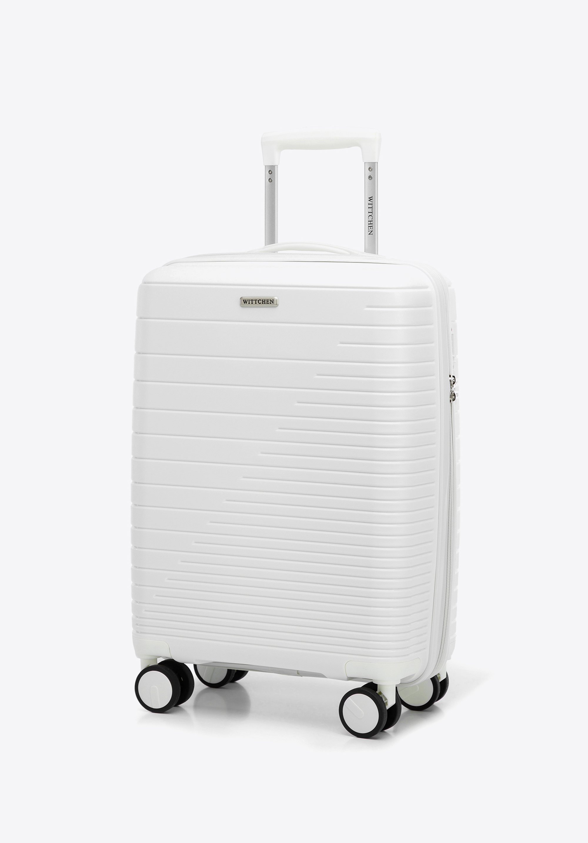 Kabínový kufor z polypropylénu s lesklými pruhmi je praktickým a štýlovým doplnkom pre každého.
