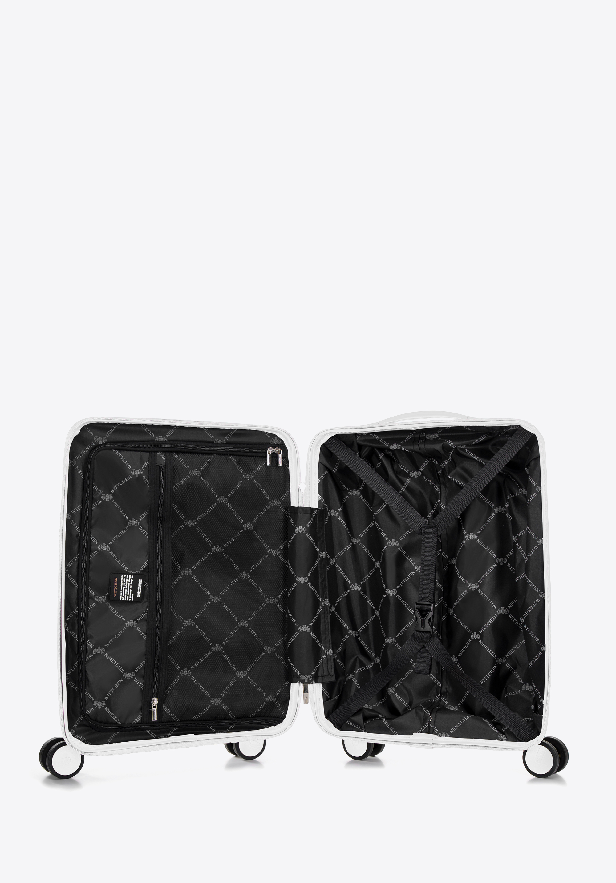 - kufor je vybavený štyrmi dvojitými otočnými kolieskami na jednoduché manévrovanie;