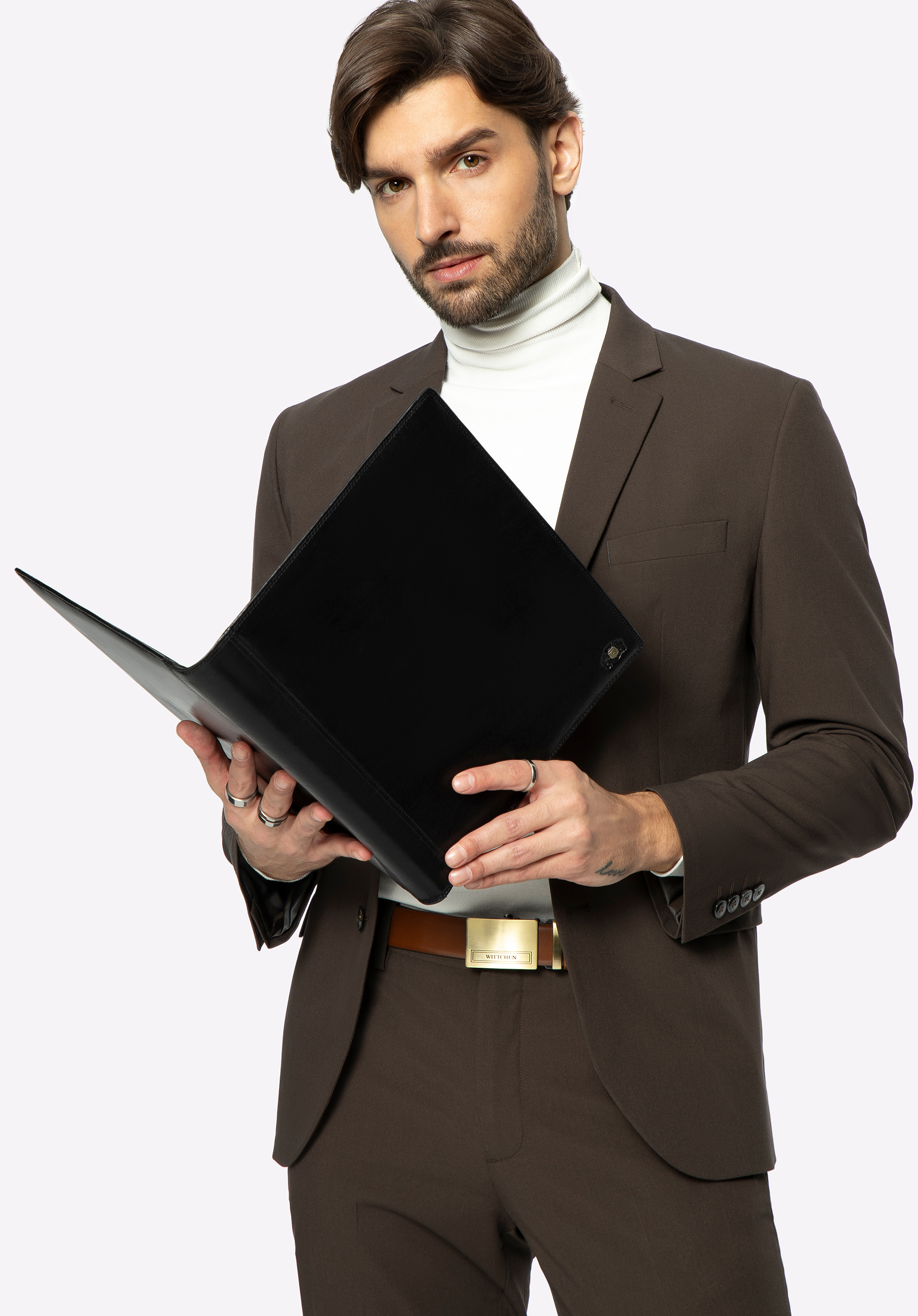 Elegantná aktovka ručne vyrobená z najvyššej kvality teľacej kože je model, ktorý vyniká elegantným a luxusným spracovaním. Na prednej strane má výrazné logo - iniciály zdobené štítkom zlatej farby na reliéfnom erbe. Aktovka je vhodná na dokumenty formátu A4.