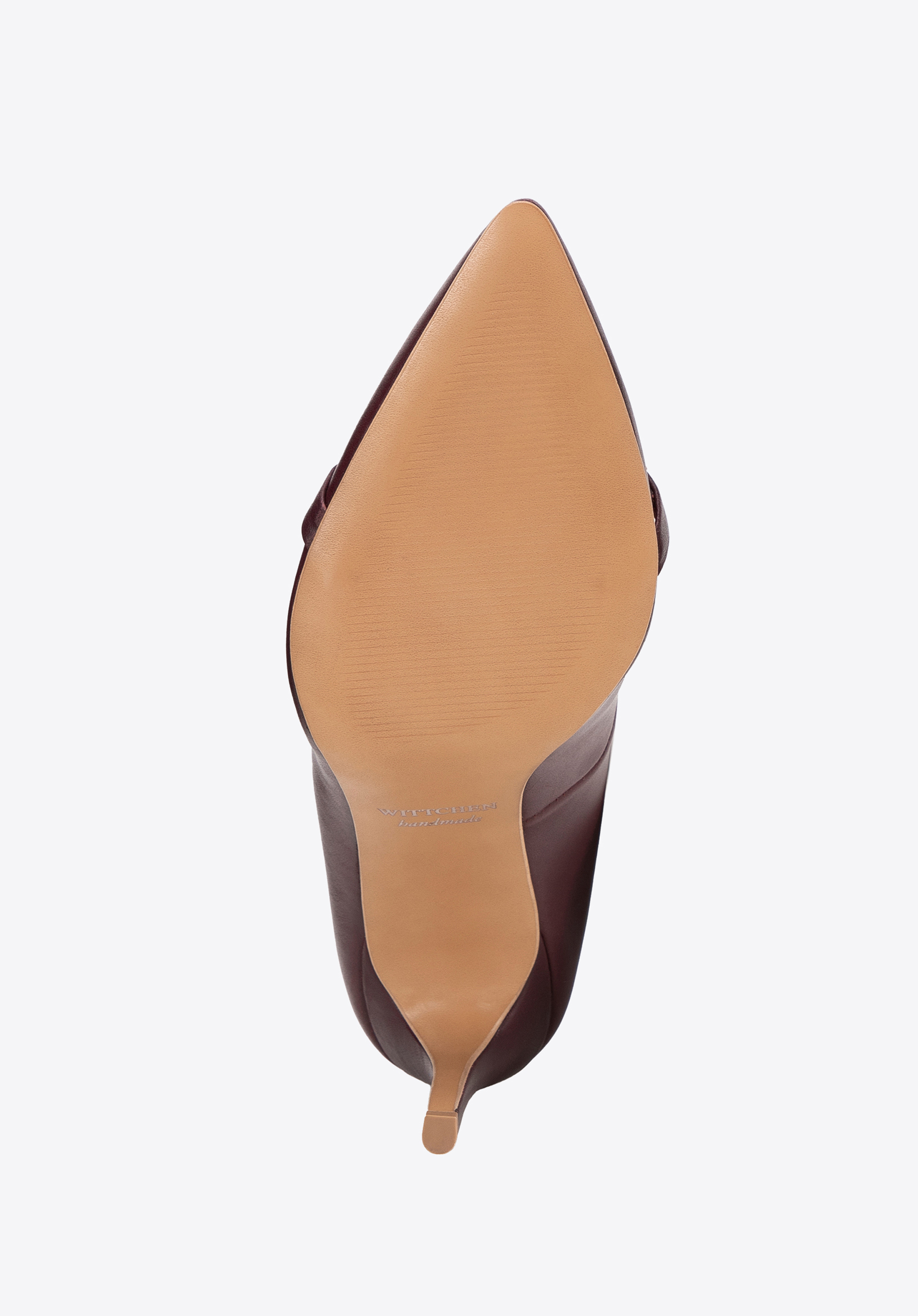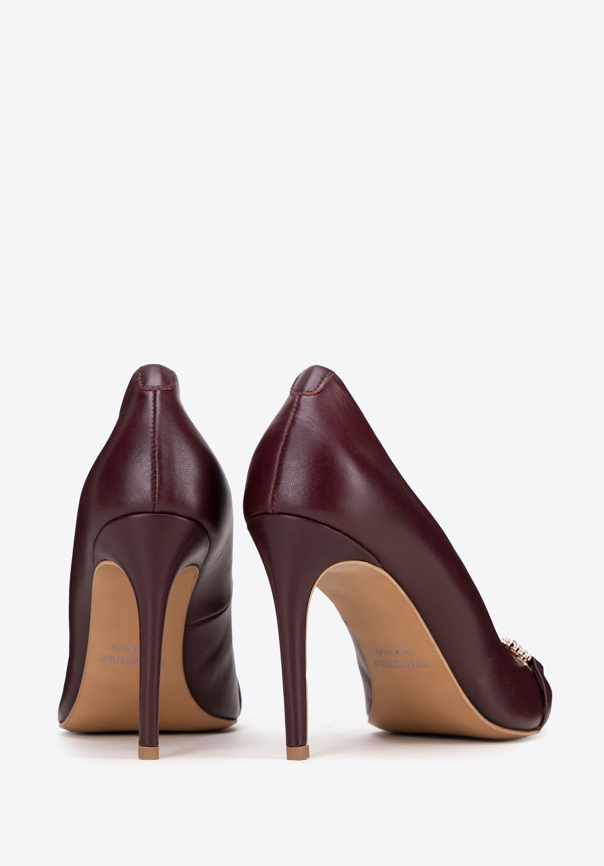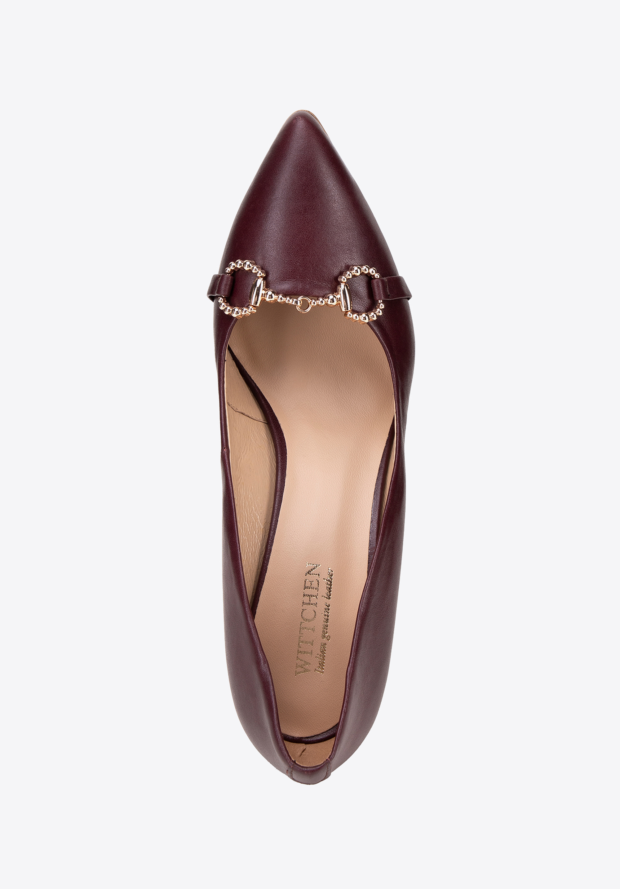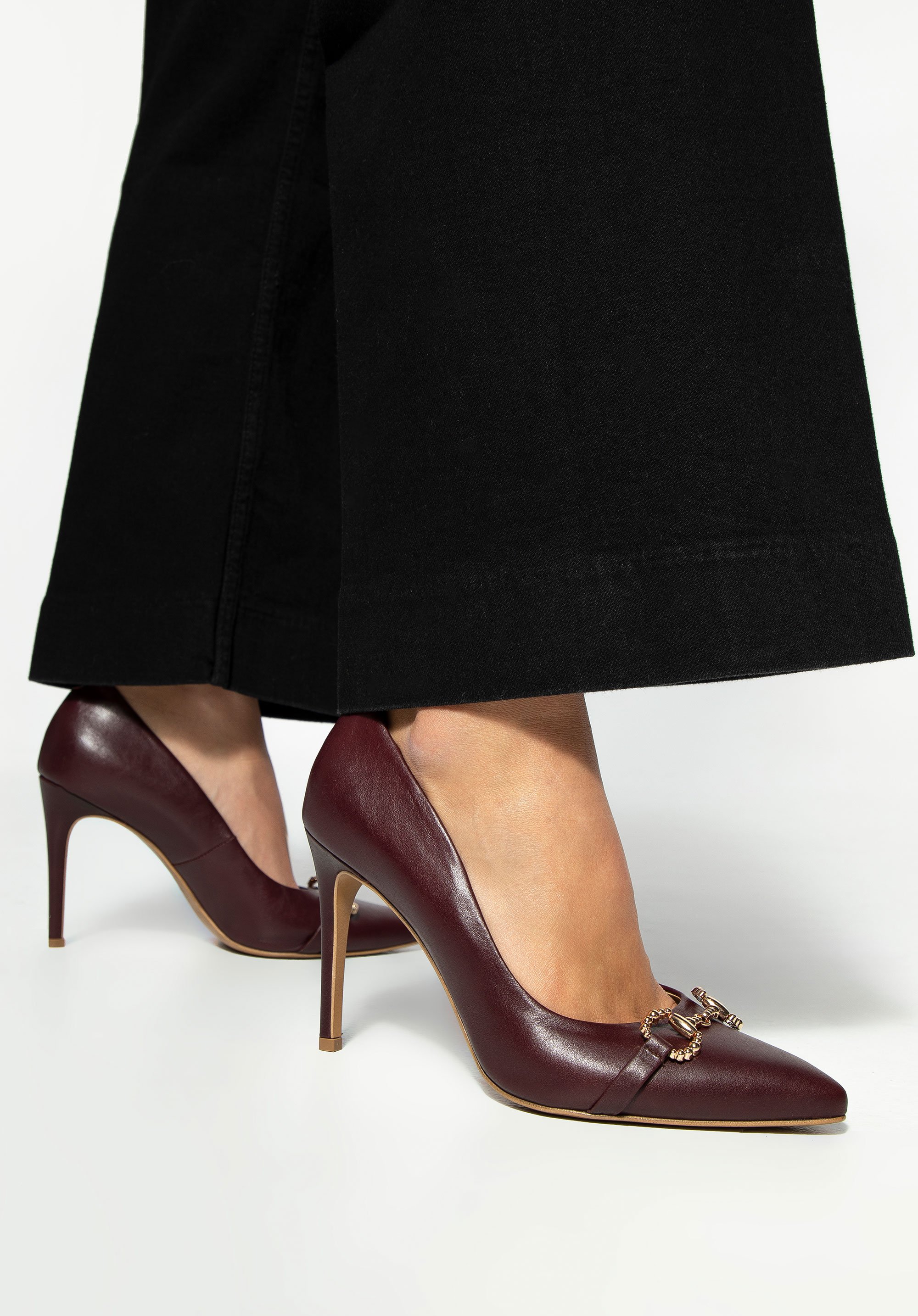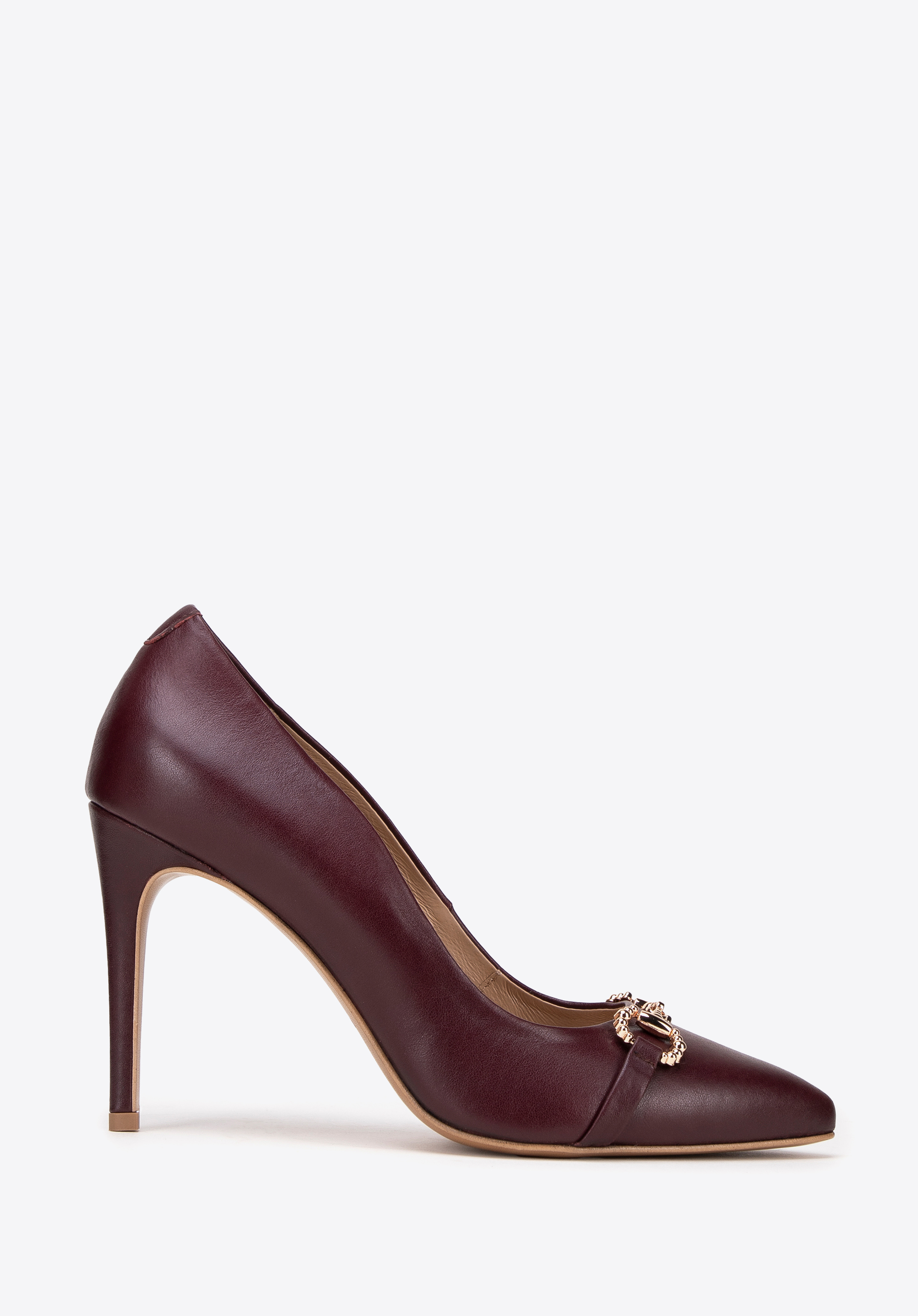 Klasické kožené ihličkové lodičky s ozdobnou retiazkou-bordové