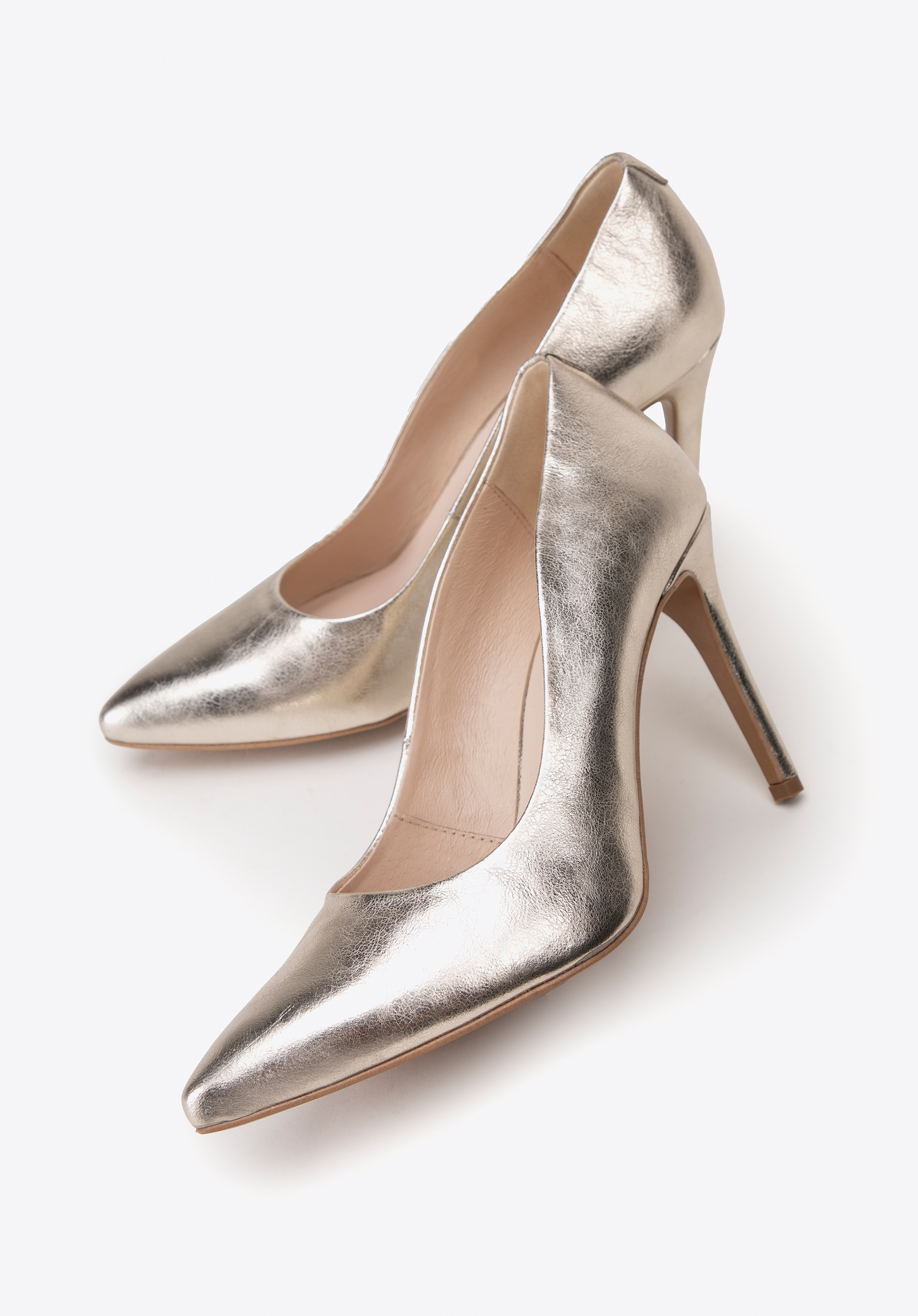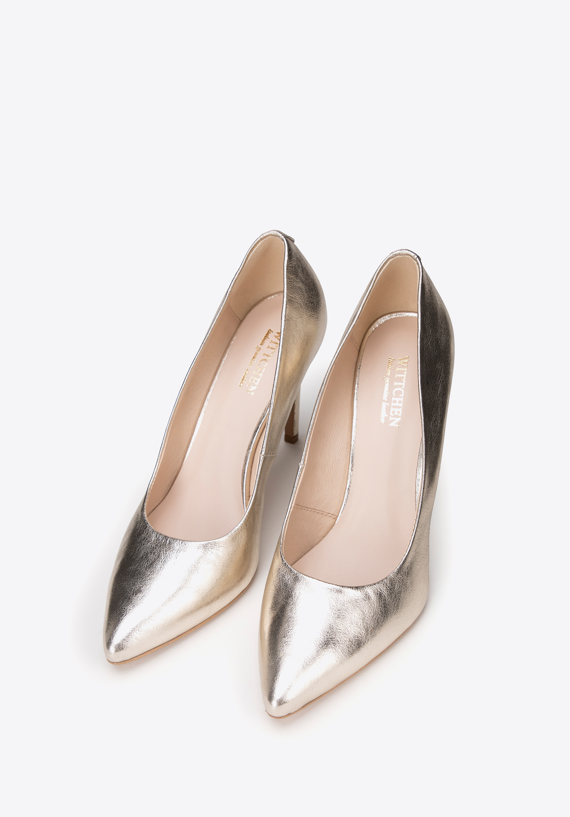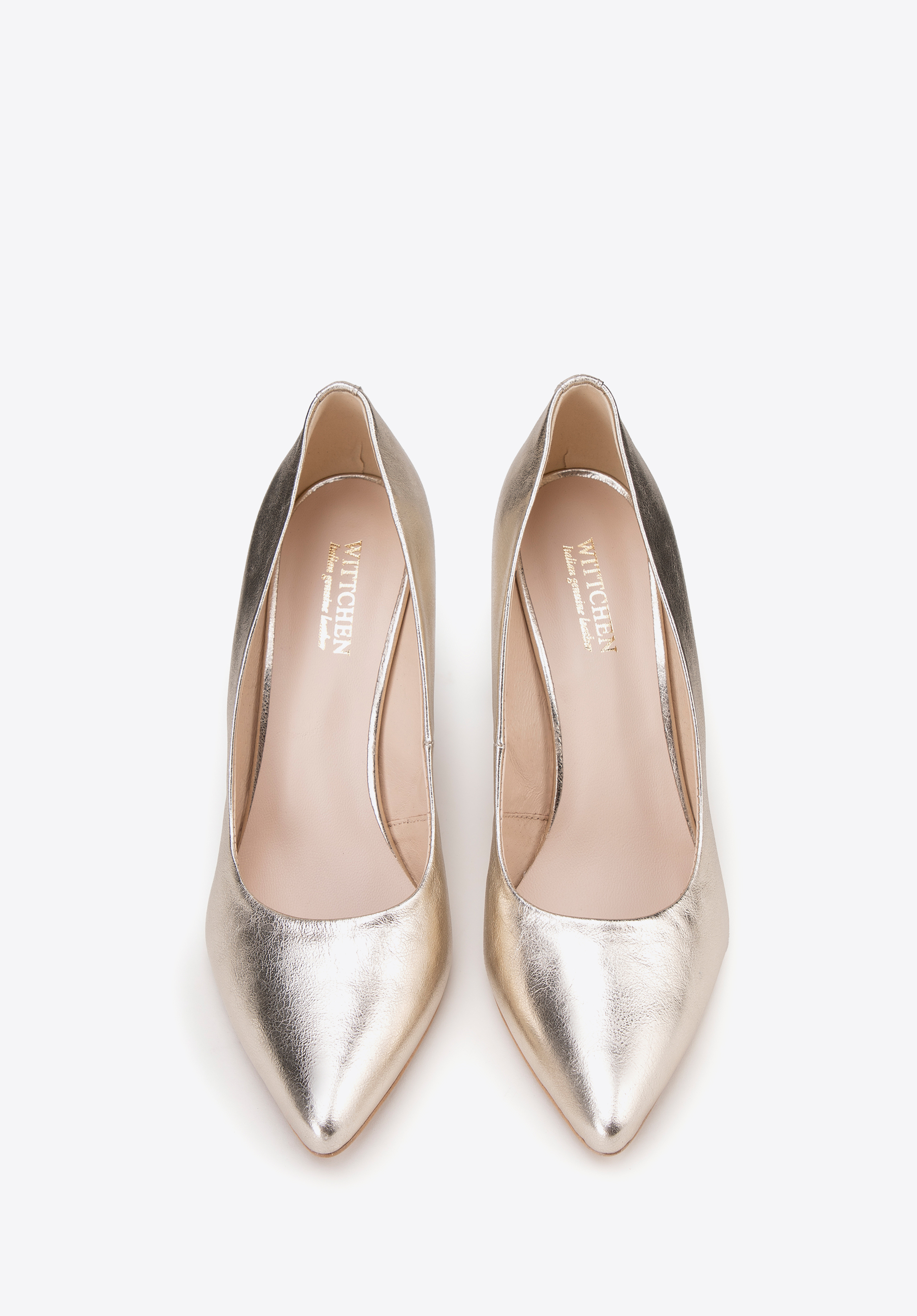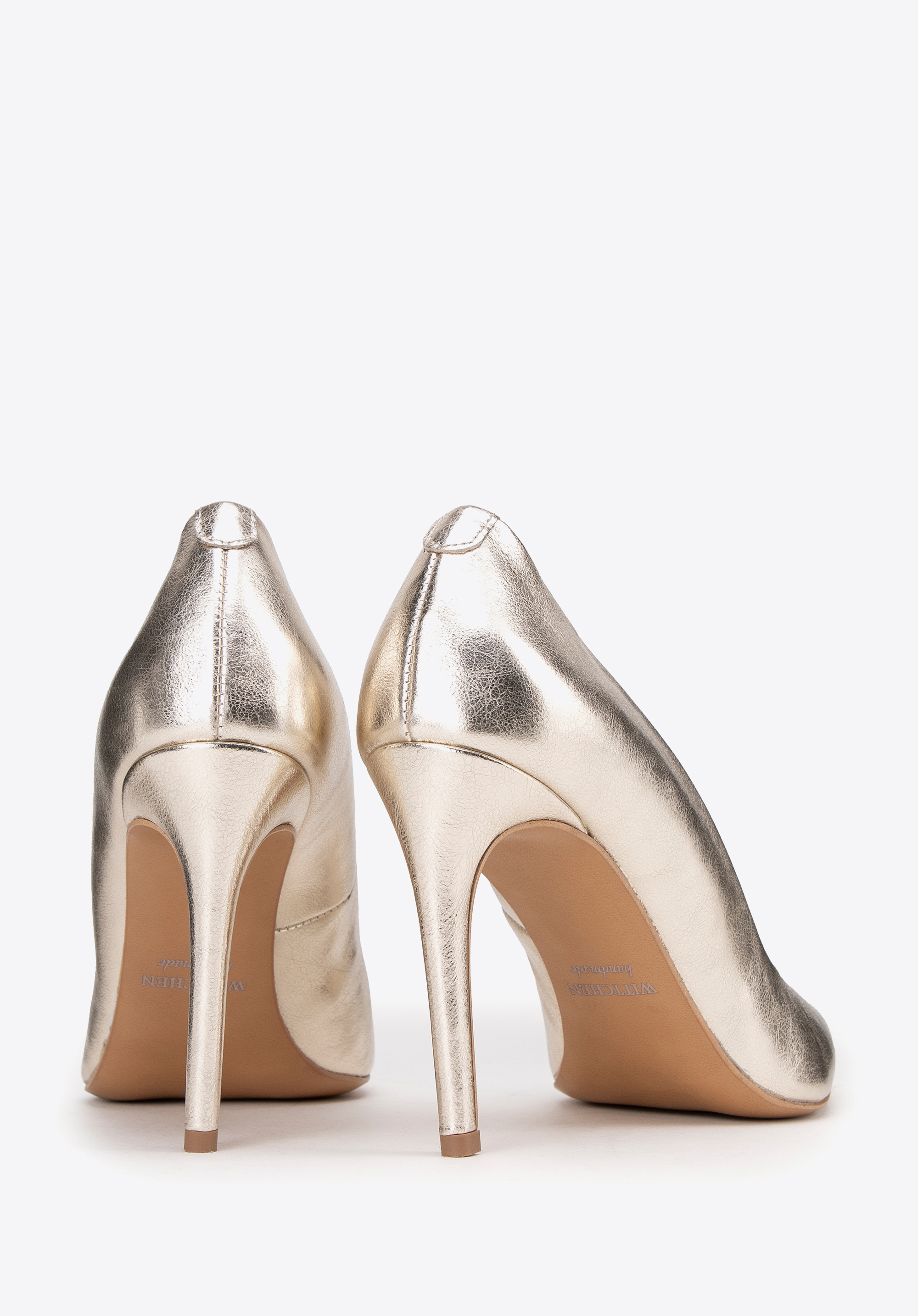 Klasické kožené lodičky na ihličkovom podpätku zlaté