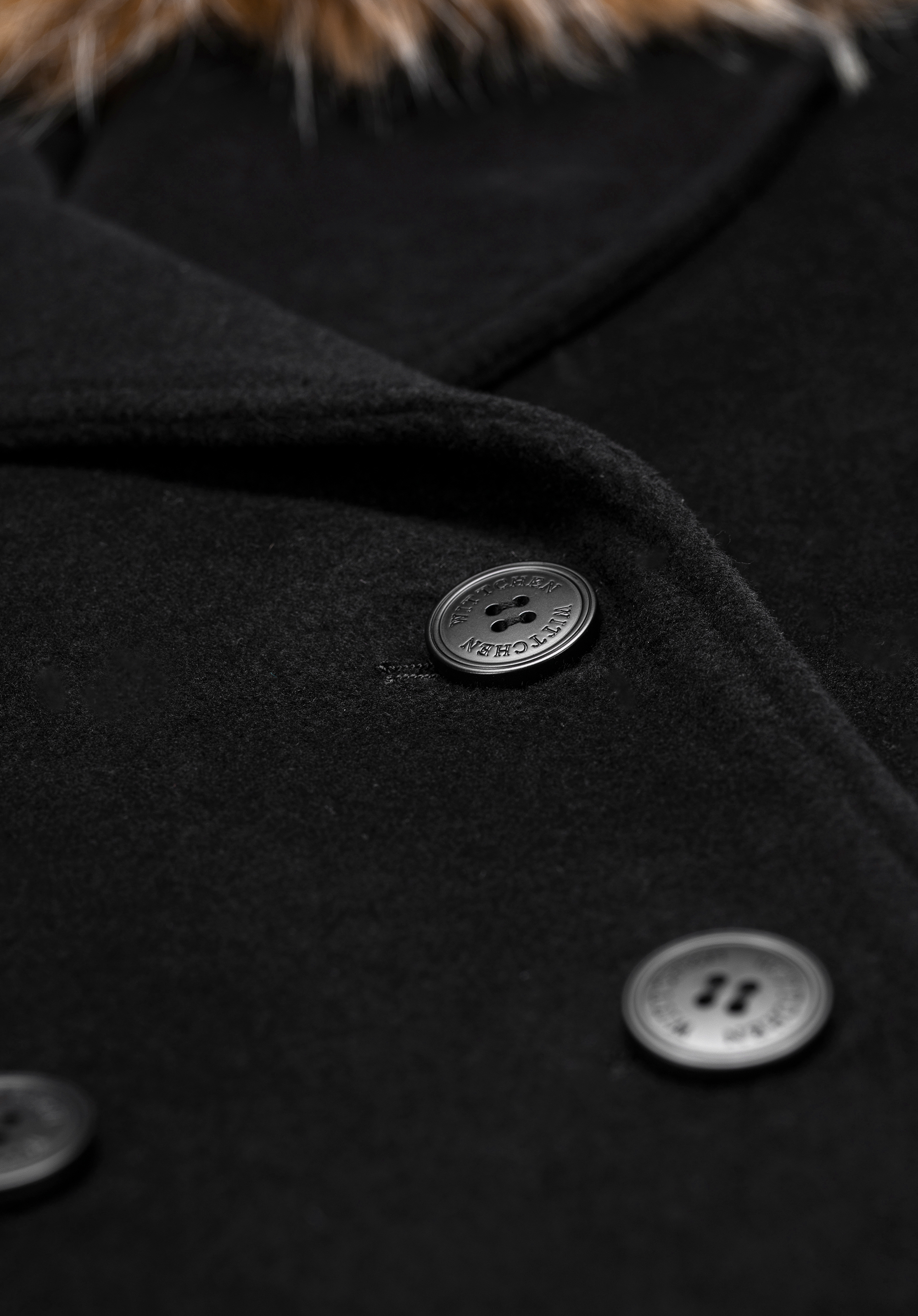 - Zloženie: Vrchná látka: 50 % vlna, 50 % polyester; Podšívka: 100 % viskóza; Umelá kožušina: 50 % akryl, 50 % polyester.