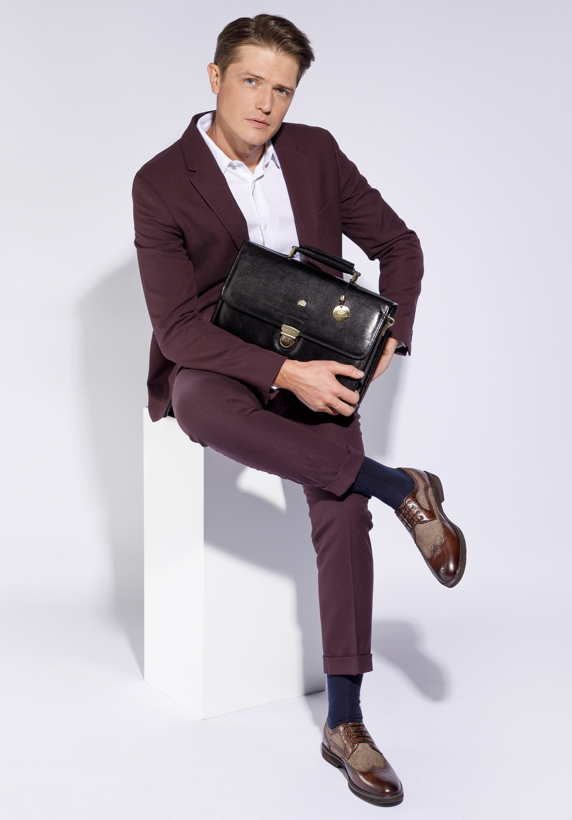 Štýlová kožená aktovka je doplnok, ktorý napriek módnym trendom zostáva vždy módny. Klasický model aktovky je vybavený koženou rukoväťou a pohodlným odnímateľným popruhom.