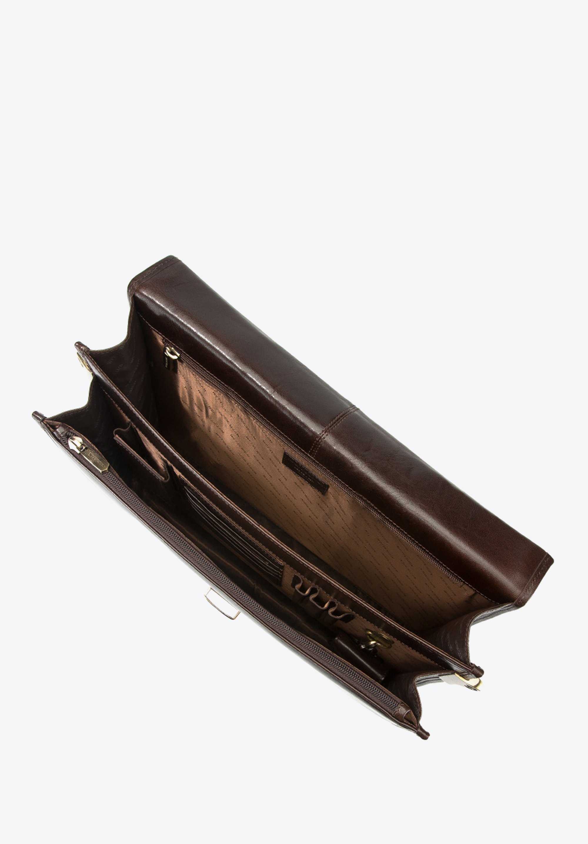 Štýlová kožená aktovka je doplnok, ktorý napriek módnym trendom zostáva vždy módny. Klasický model aktovky je vybavený koženou rukoväťou a pohodlným odnímateľným popruhom.