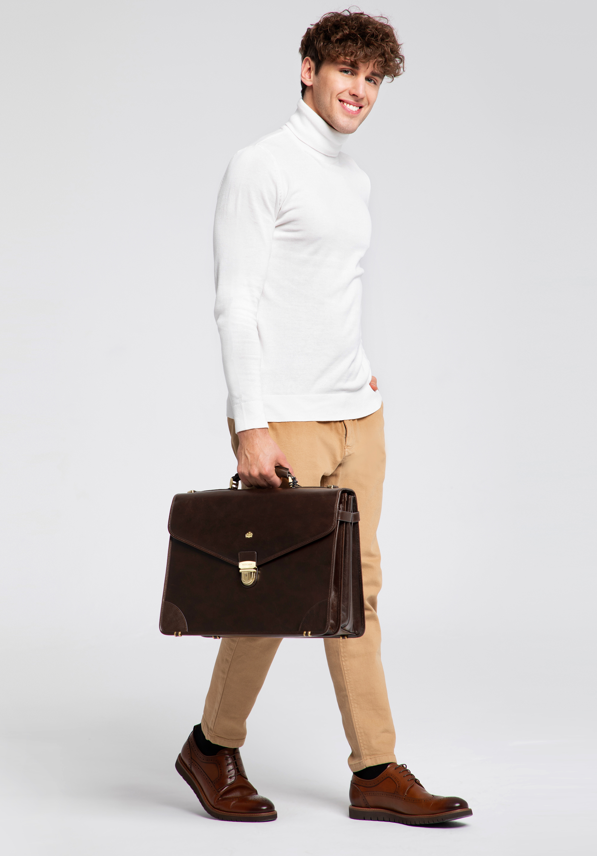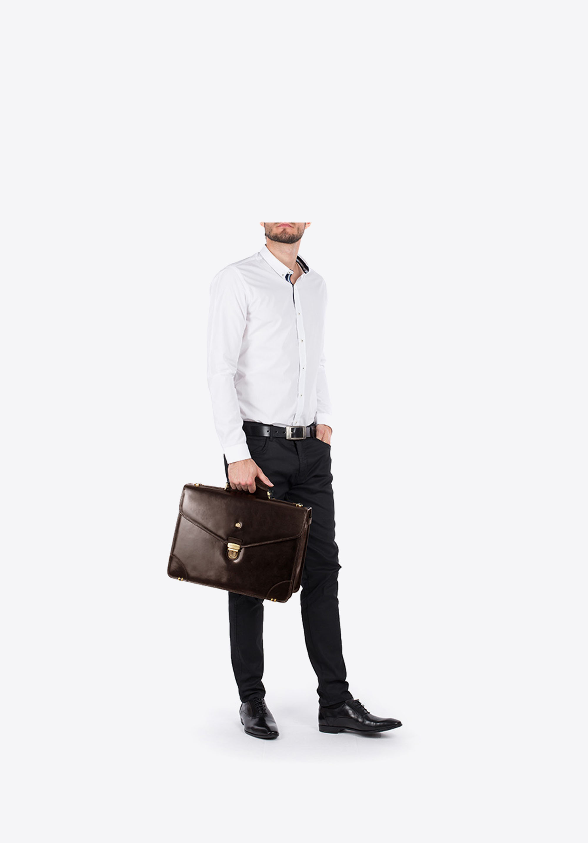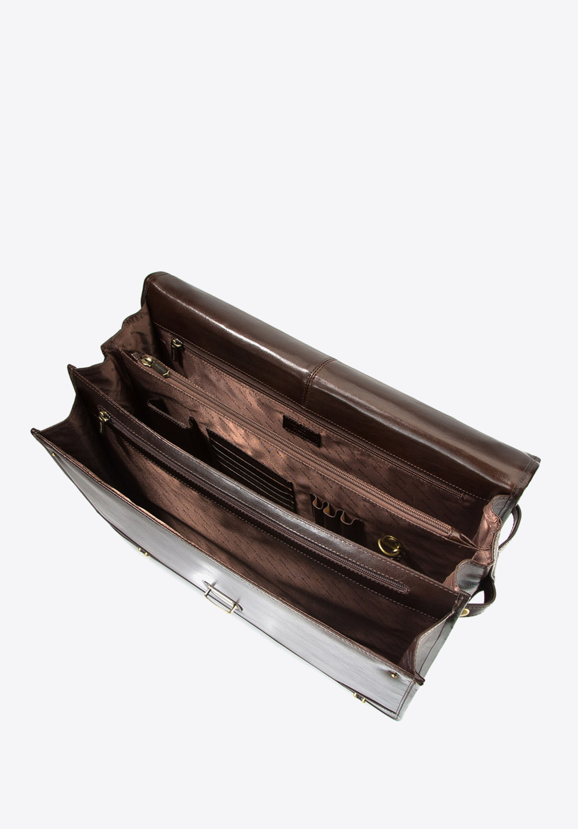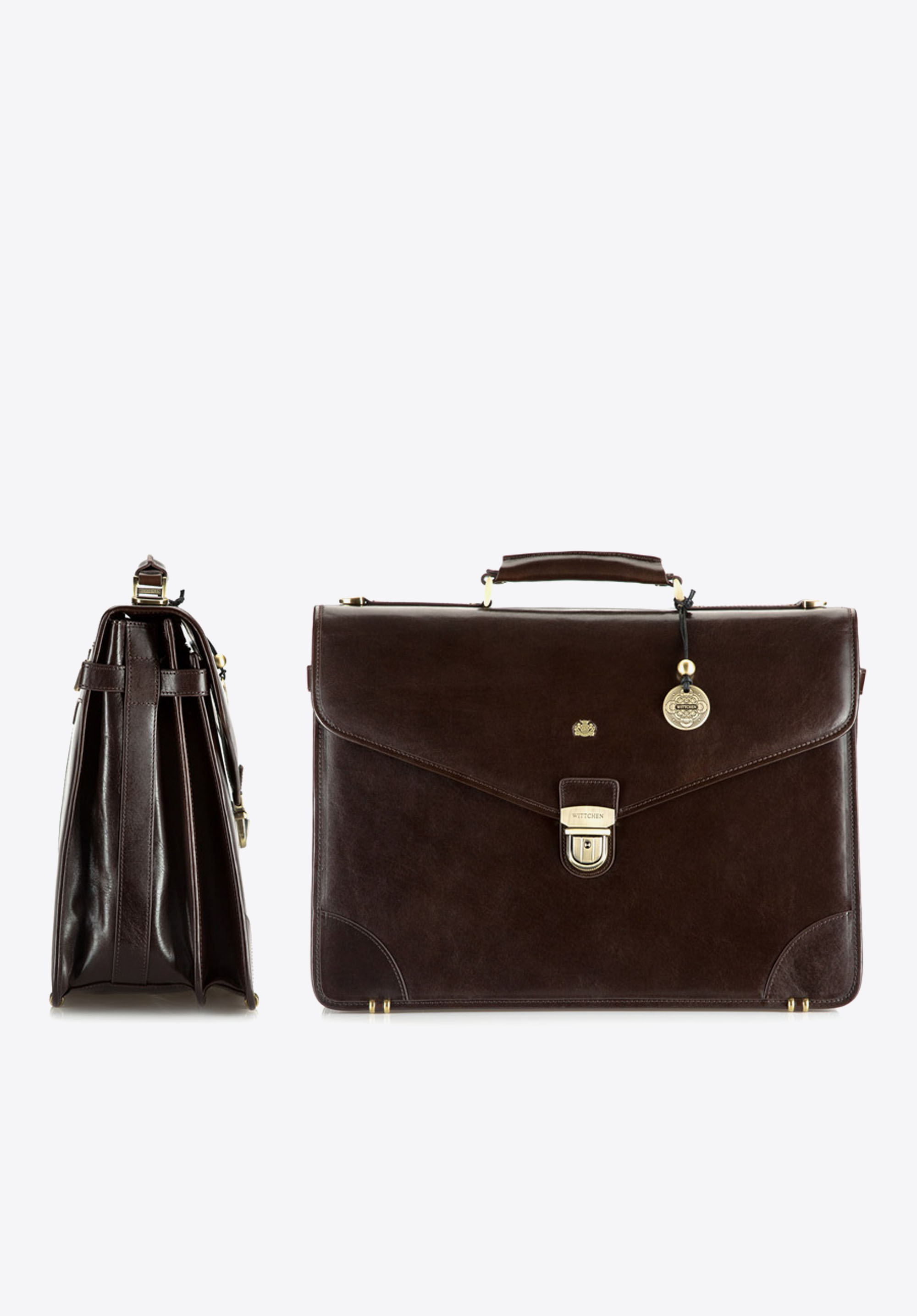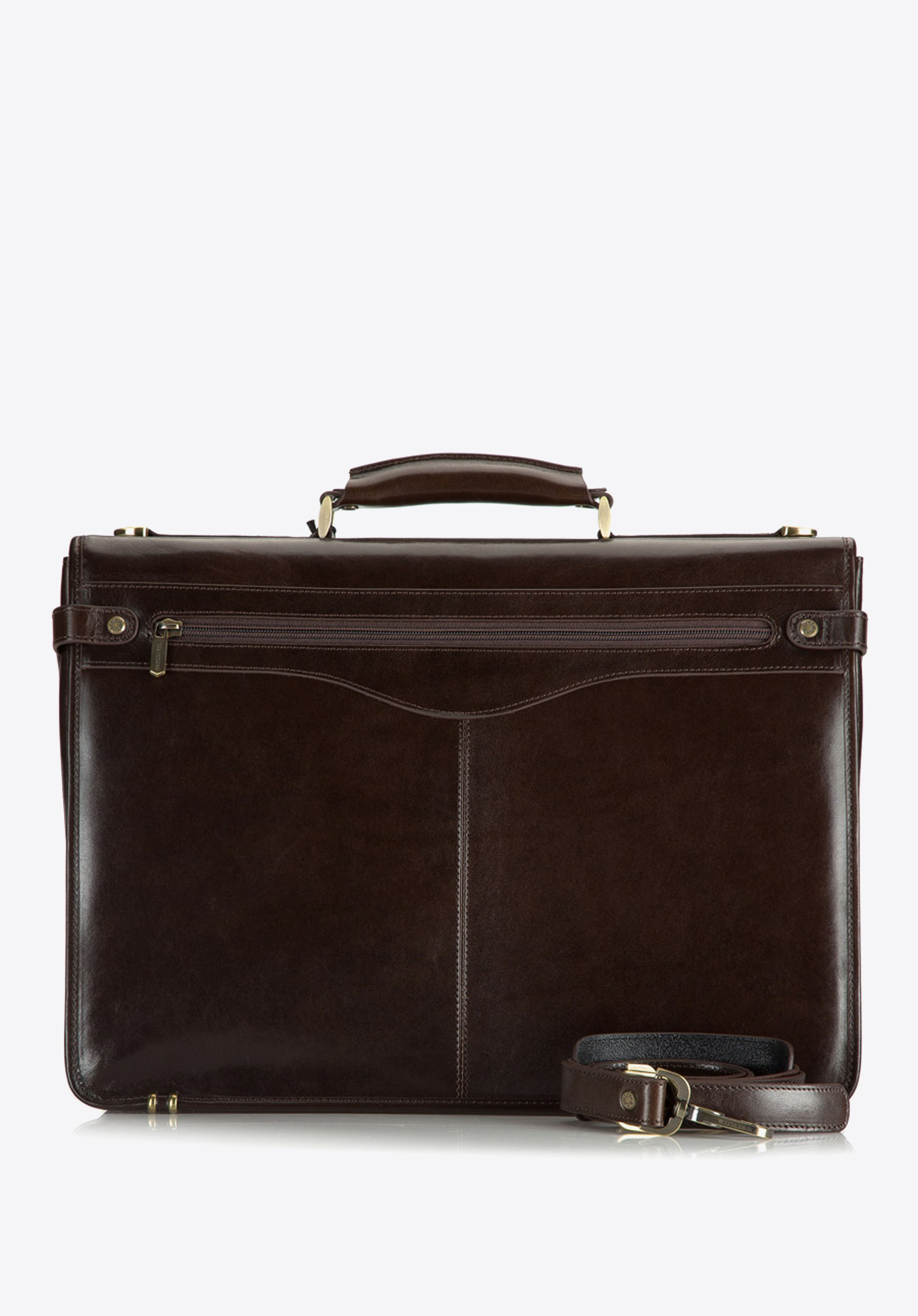 Klasická, kožená aktovka so zlatým kovaním je funkčným a mimoriadne elegantným doplnkom. Aktovka bola ručne vyrobená z odolnej, decentne lesklej teľacej kože.