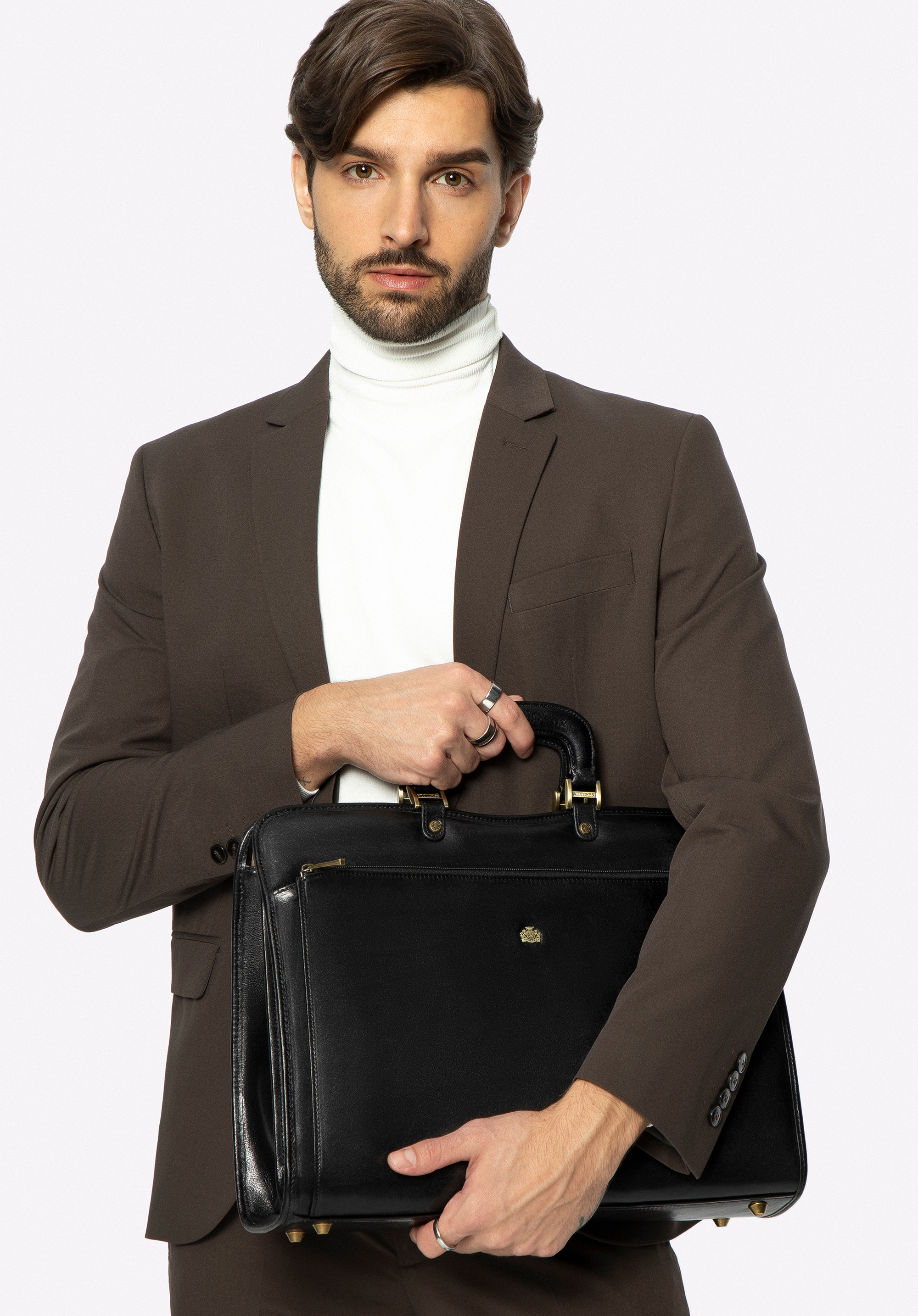 Pojemná kožená aktovka na dokumenty vyrobená z teľacej kože, ktorá sa vyznačuje výnimočne decentným leskom a vysokou odolnosťou. Aktovka pojme zároveň potrebné dokumenty, ako aj telefón a všetko potrebné príslušenstvo.