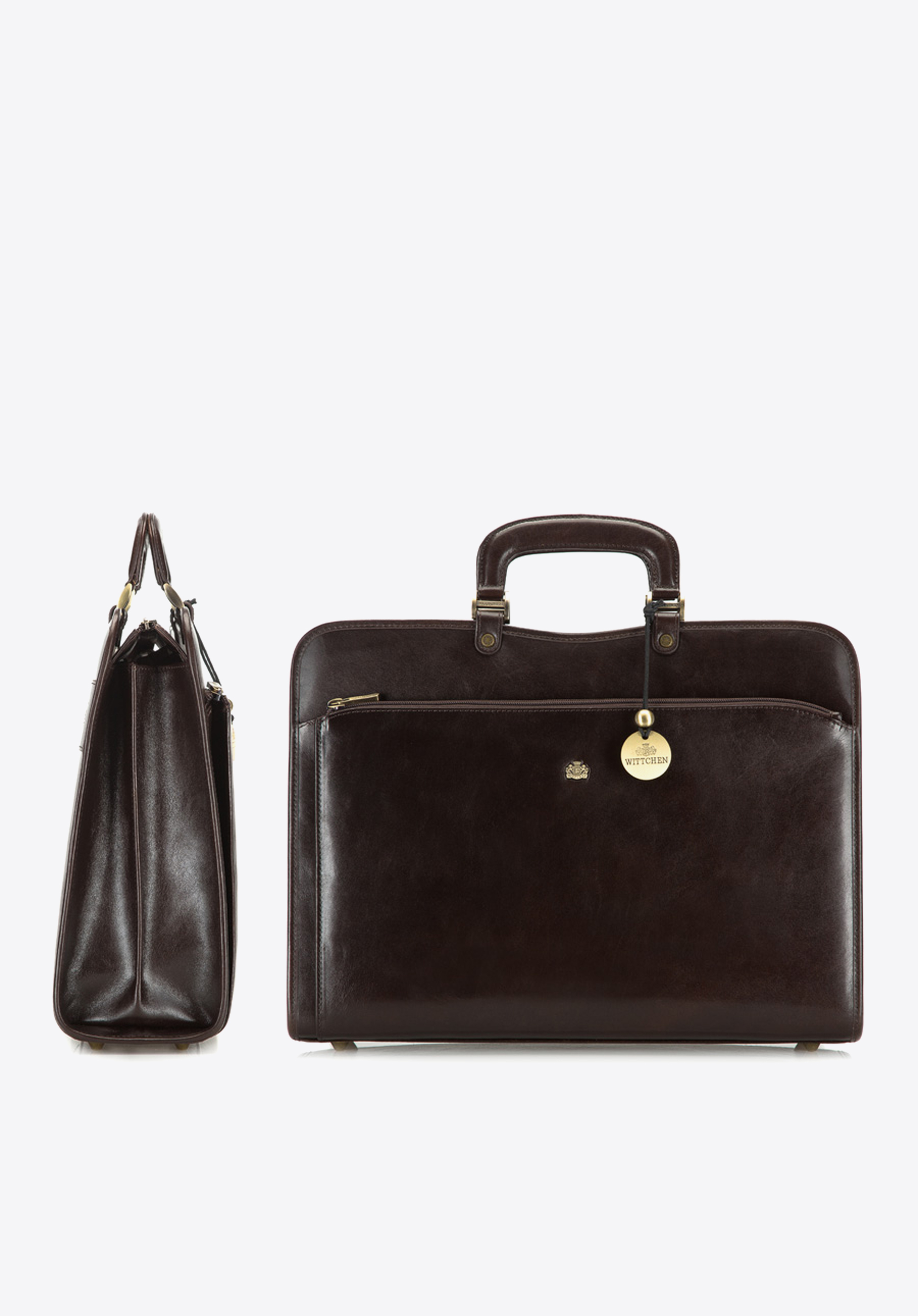 Pojemná kožená aktovka na dokumenty vyrobená z teľacej kože, ktorá sa vyznačuje výnimočne decentným leskom a vysokou odolnosťou. Aktovka pojme zároveň potrebné dokumenty, ako aj telefón a všetko potrebné príslušenstvo.