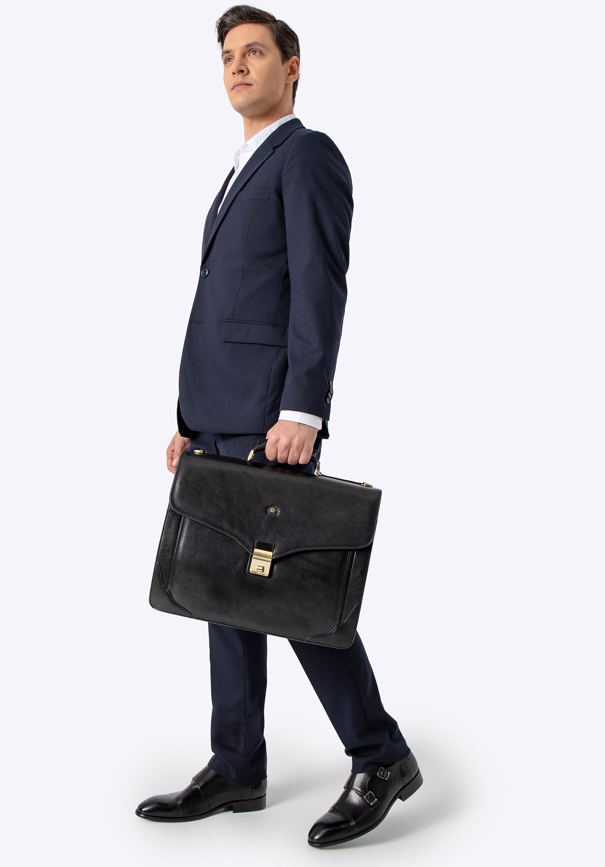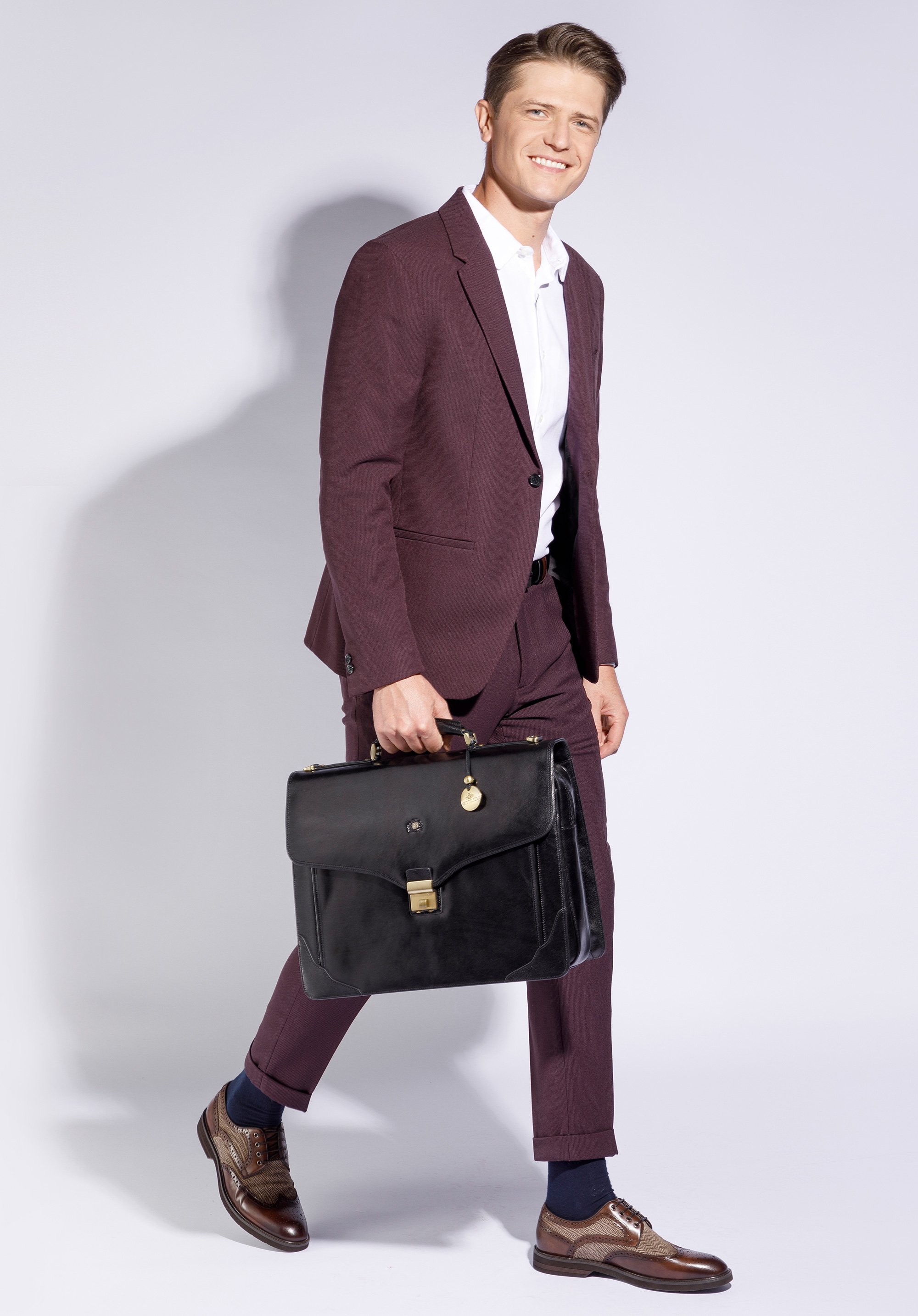 Objemná aktovka vyrobená z najvyššej kvality teľacej kože, ktorá sa vyznačuje výnimočnou odolnosťou, je elegantným a štýlovým doplnkom. Klasický dizajn modelu prelomený inovatívnymi riešeniami uspokojí vkus aj tých najnáročnejších.