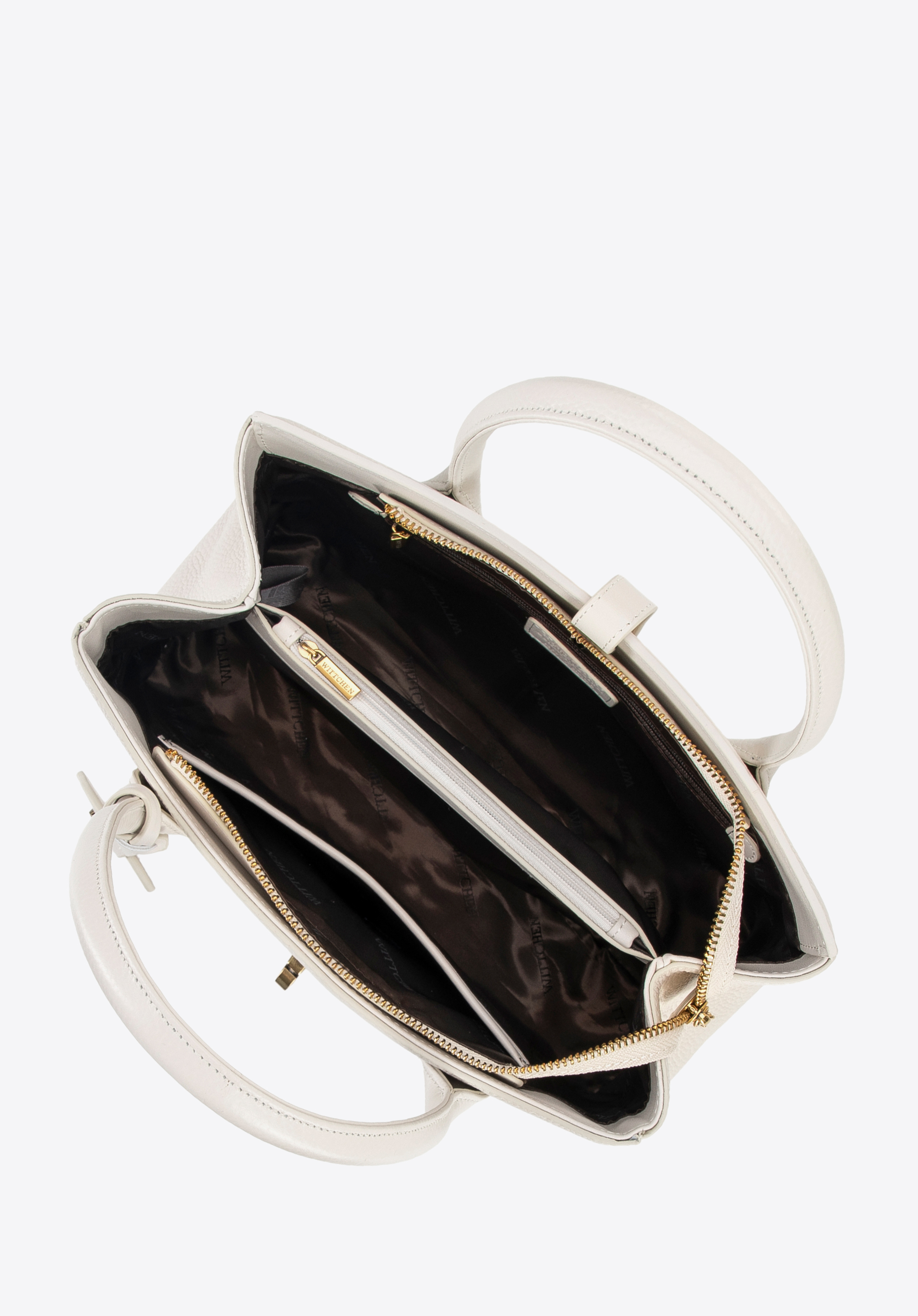 Štýl a funkčnosť v jednom! Táto výnimočná kabelka vyrobená z prírodnej kože s remienkom z mikrovlákna je dokonalým spojením klasického dizajnu a praktickosti. Jeho priestranný interiér tvoria dve priehradky oddelené vreckom na zips, zatiaľ čo ďalšie priehradky na drobnosti pomáhajú udržiavať poriadok. Bezpečné zapínanie na zips a remienok s prackou ponúkajú pohodlie a ochranu pre vaše veci. Je to ideálna voľba pre každodenné použitie, prácu a elegantné výlety.