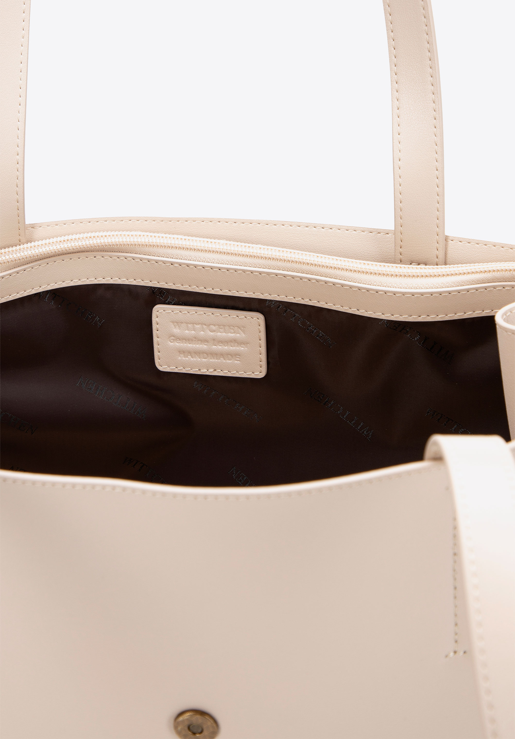 Nadčasový dizajn sa snúbi s praktickosťou. Táto elegantná nákupná taška z prírodnej kože kombinuje klasický štýl s každodenným pohodlím, zatiaľ čo rúčky a ozdobný popruh z mikrovlákna s povrchovou úpravou imitujúcou kožu dodávajú ľahkosť a decentný nádych. Vďaka premyslene navrhnutej dvojpriehradkovej konštrukcii s vreckom na zips môžete mať svoje potrebné veci vždy poruke. Bočné zapínanie na patentné gombíky vám umožňuje prispôsobiť tvar kabelky vášmu štýlu a potrebám. Zapínanie pomocou magnetického popruhu udrží vaše veci v bezpečí, zatiaľ čo logo značky na prednej strane zdôrazňuje jej elegantný charakter.