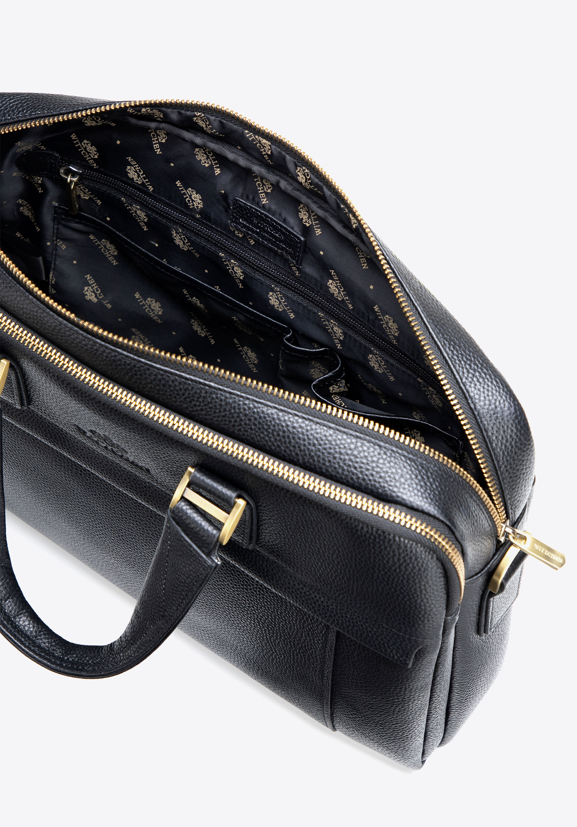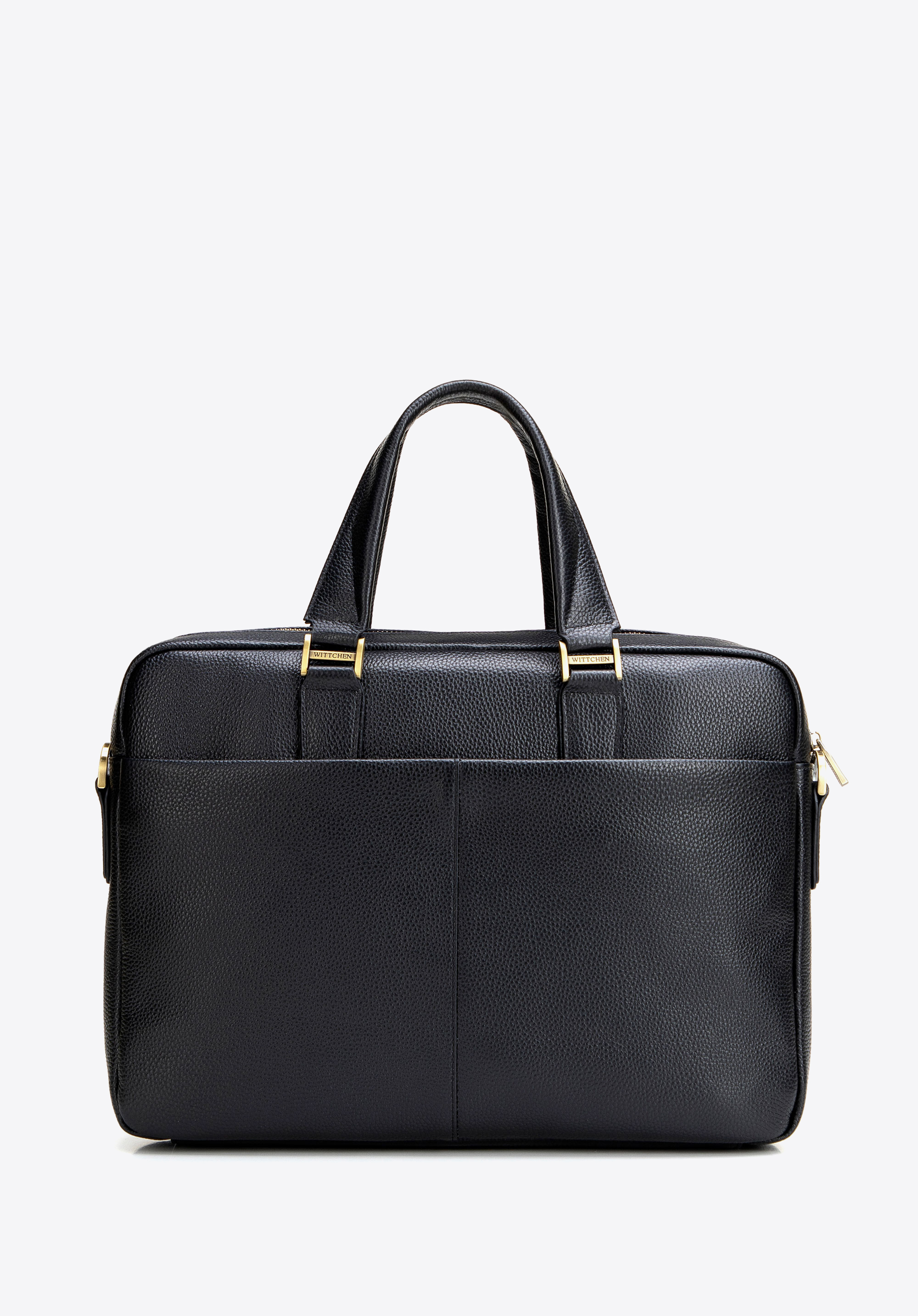 Elegantná pánska taška na notebook vyrobená z prírodnej kože , ktorá kombinuje klasický dizajn s praktickými funkciami, ktoré skvele fungujú na každodenné používanie. Dobre organizovaný interiér udrží všetko v poriadku a zabezpečí, že všetky potrebné veci budete mať vždy po ruke. Vyhradený priestor na notebook s maximálnymi rozmermi 23 × 33 cm (približne 15,6") , zaistený suchým zipsom, poskytuje spoľahlivú ochranu vášho zariadenia počas každodenného dochádzania, stretnutí alebo služobných ciest.