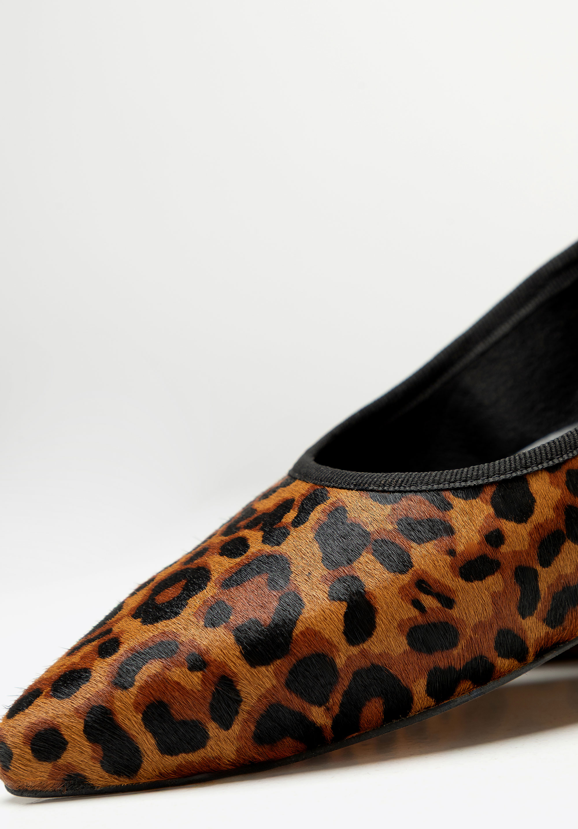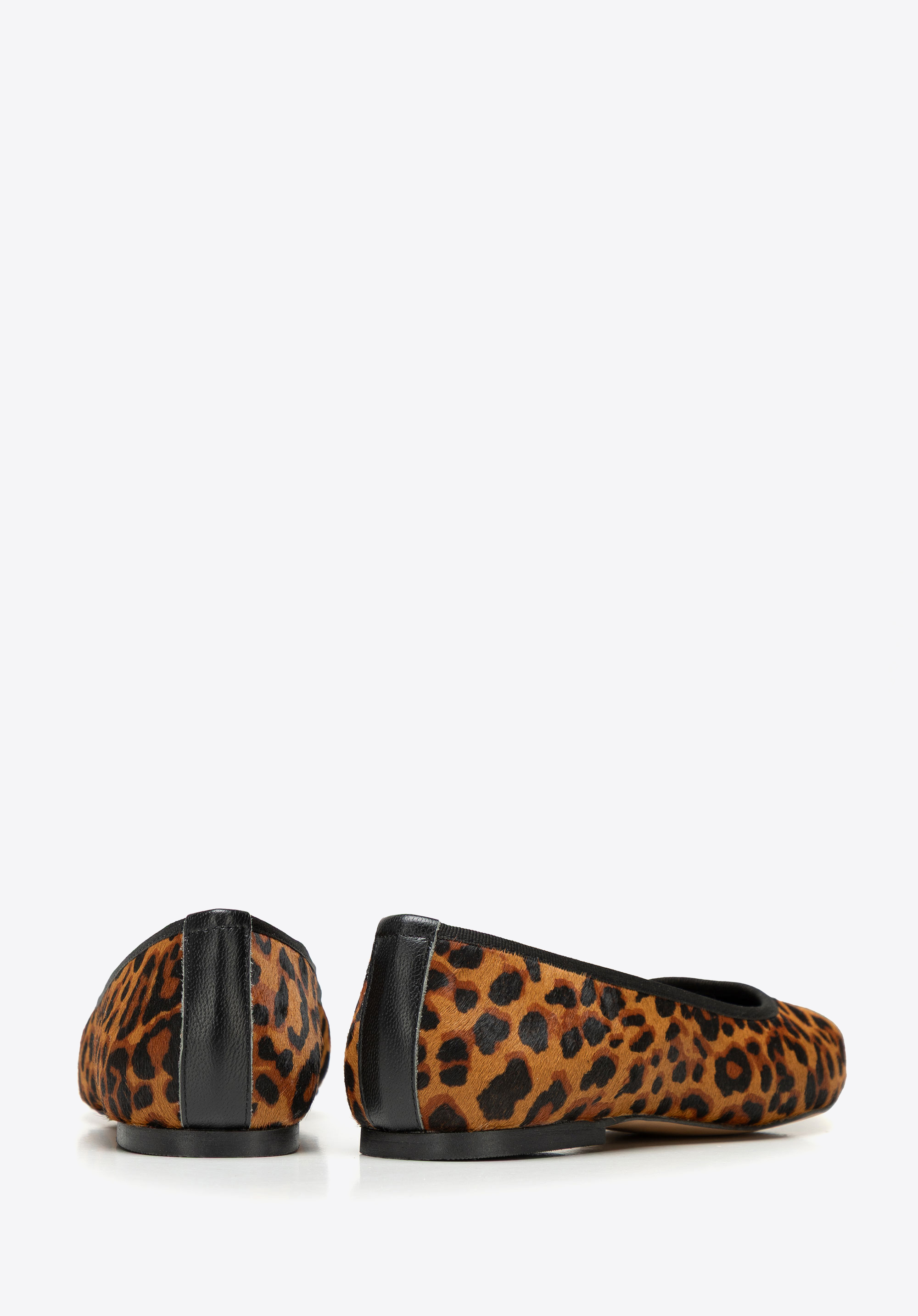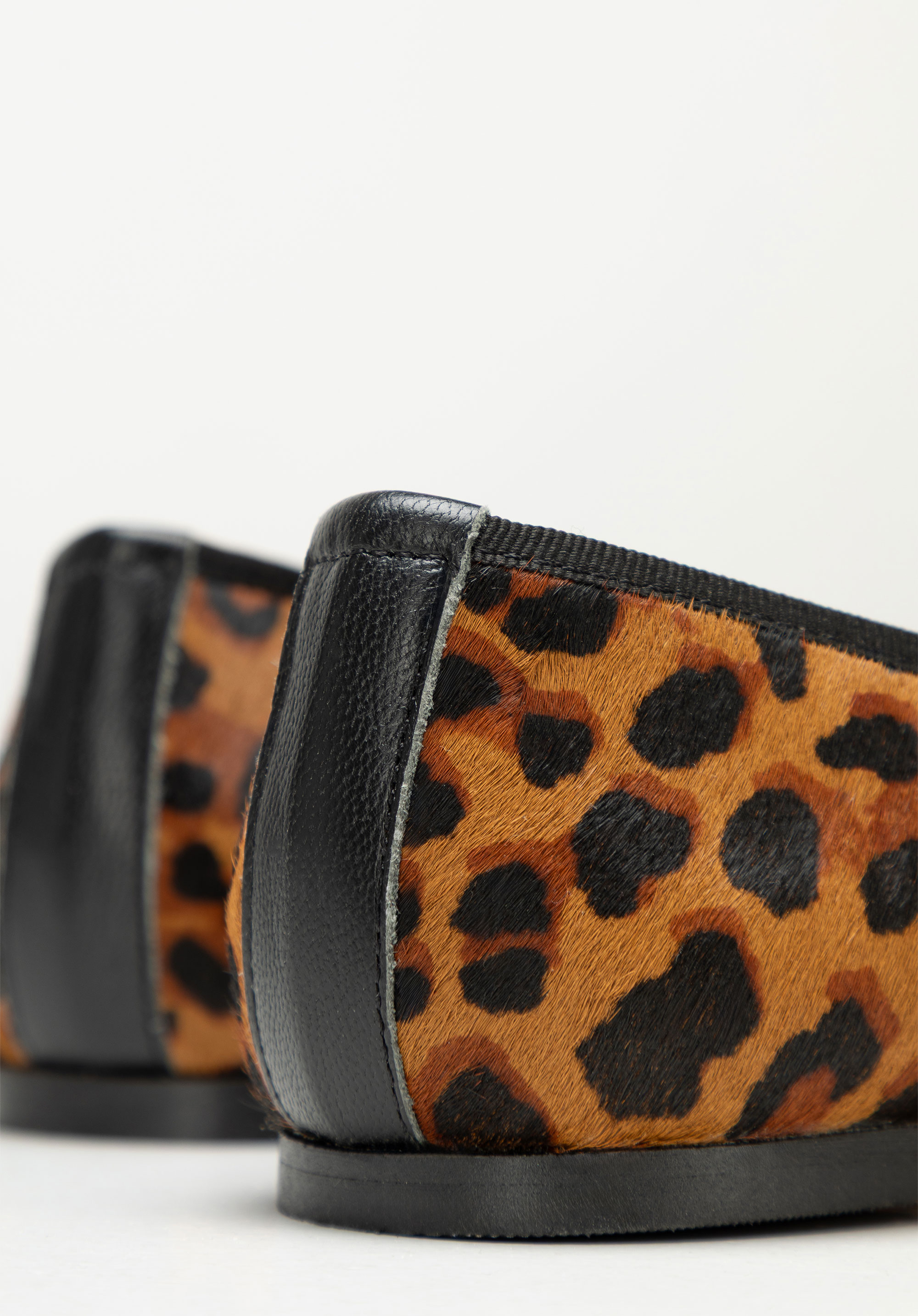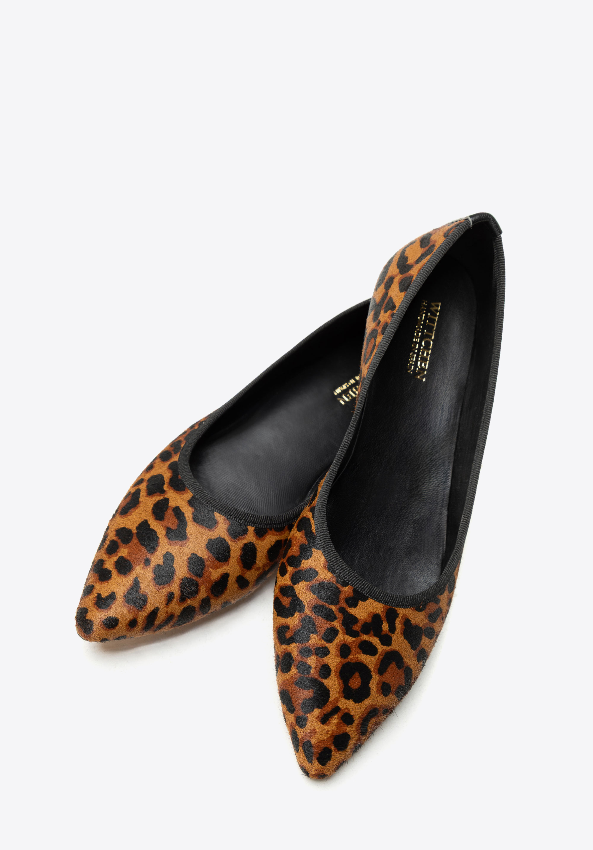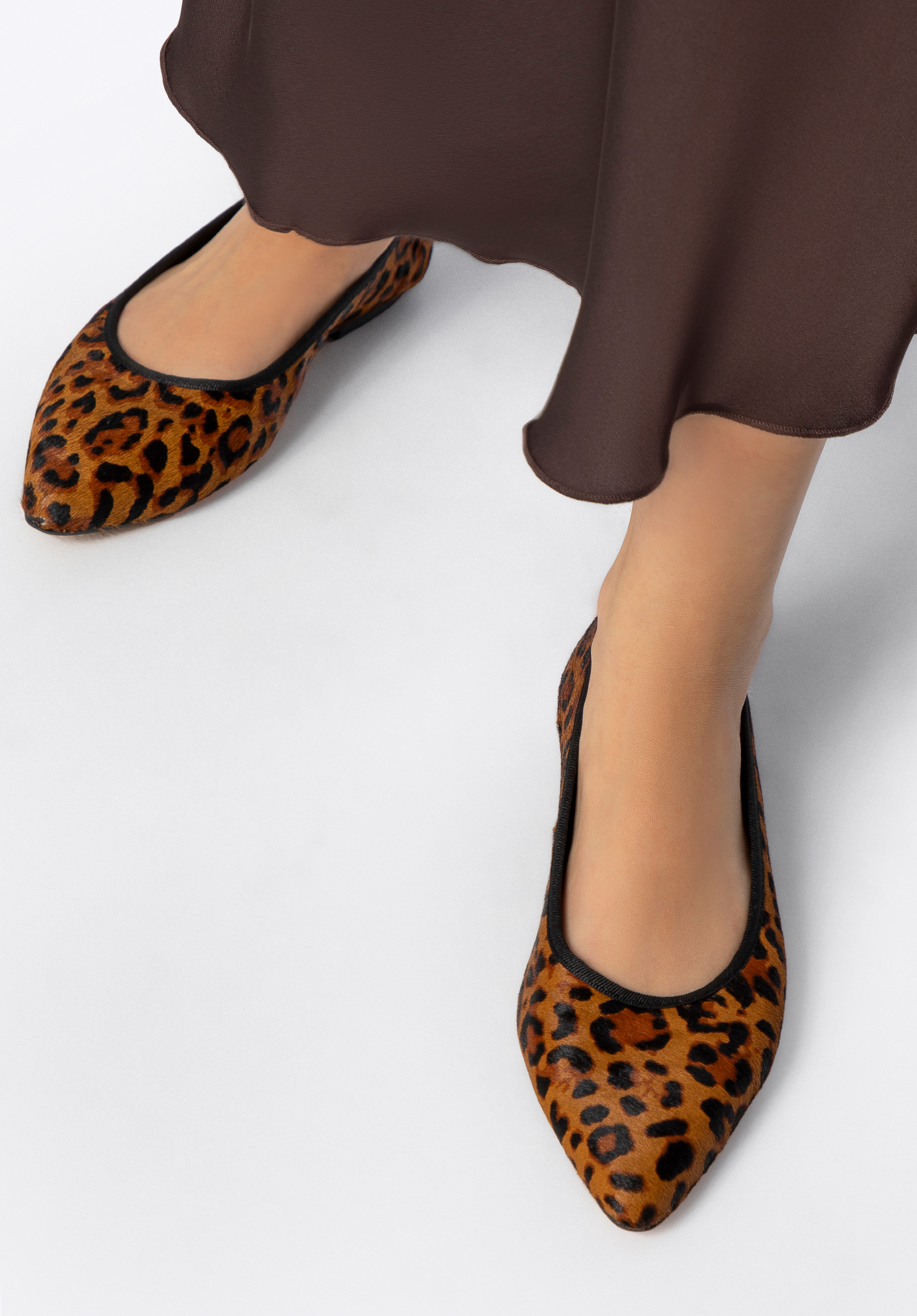 Posuňte svoj štýl na vyššiu úroveň s topánkami , ktoré kombinujú výrazný dizajn s celodenným pohodlím. Tieto balerínky sa pýšia módnou zvieracou potlačou a elegantnou špicatou špičkou , ktorá jemne predlžuje chodidlo a dodáva vašej siluete nádych jemnosti. Sú vyrobené z useň s jedinečnou textúrou, pútajú pozornosť svojou výraznou povrchovou úpravou a vyjadrujú váš individuálny štýl. Prírodná kožená stielka zaisťuje priedušnosť a mäkkosť, zatiaľ čo plochý podpätok poskytuje pohodlie počas celého dňa.