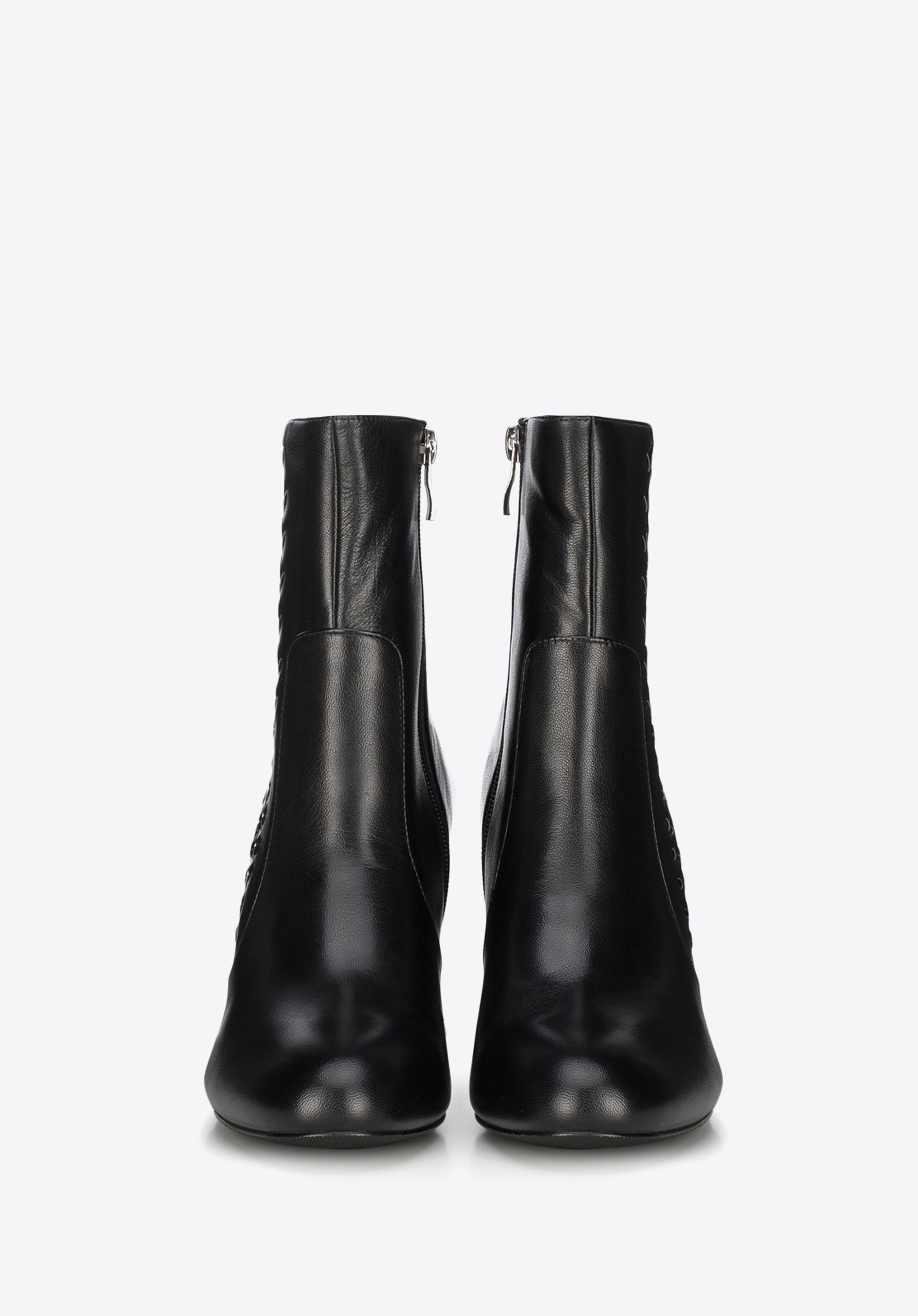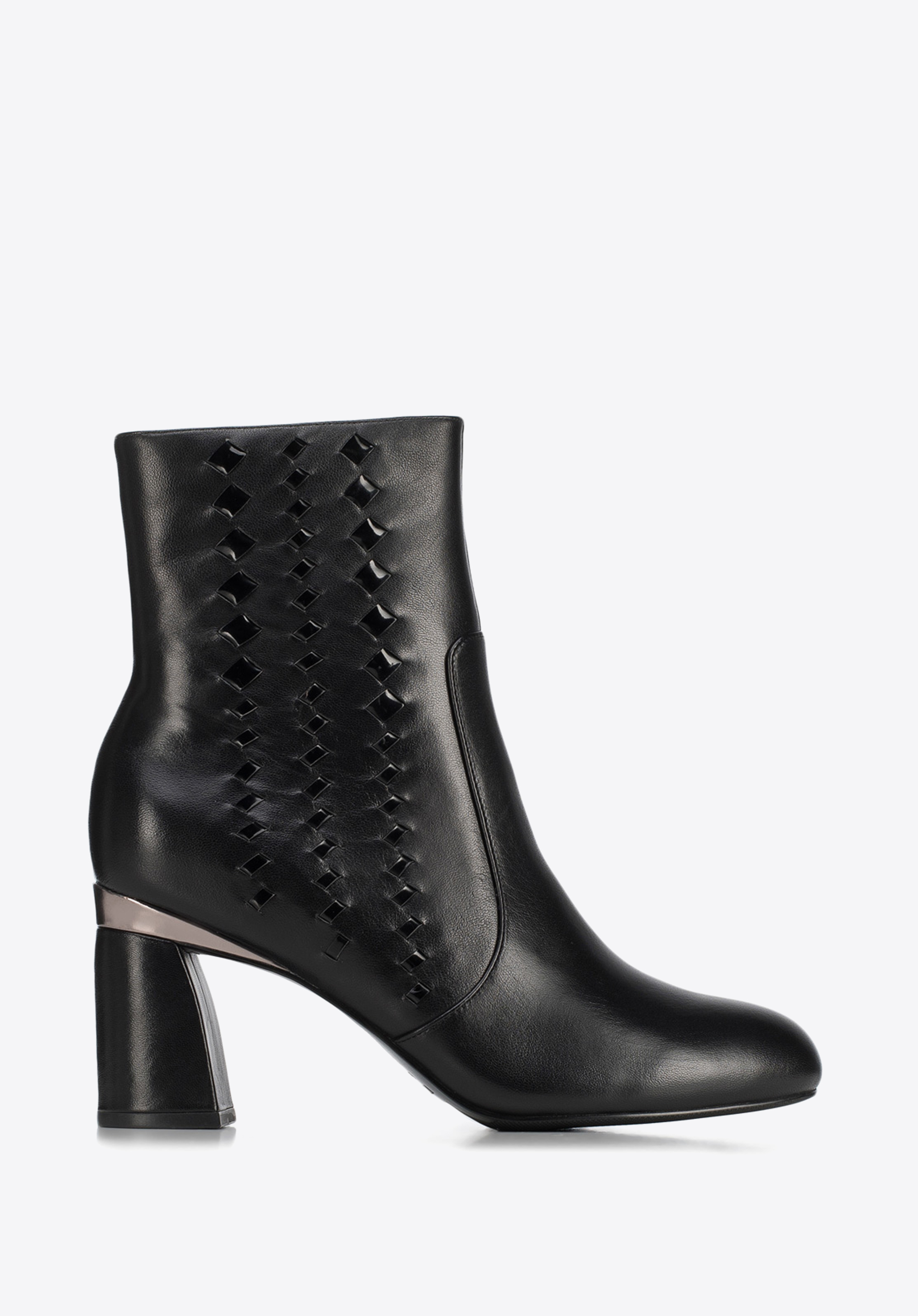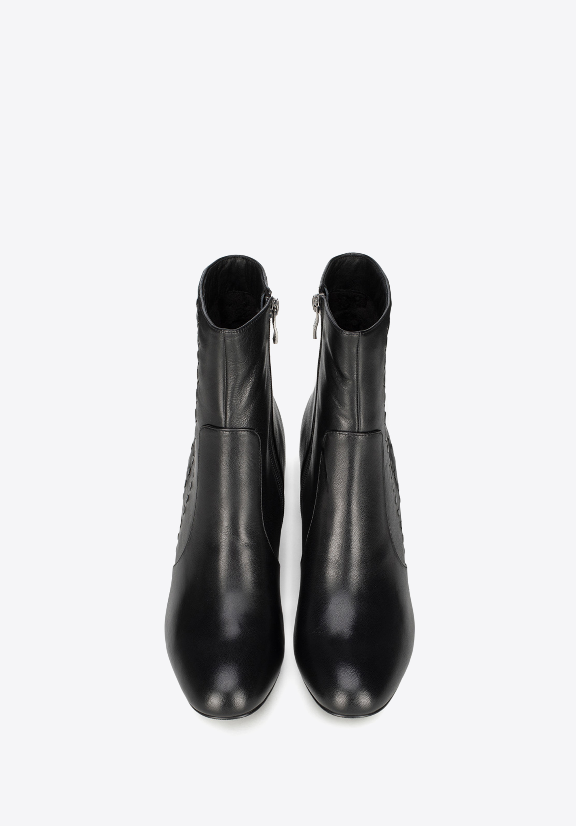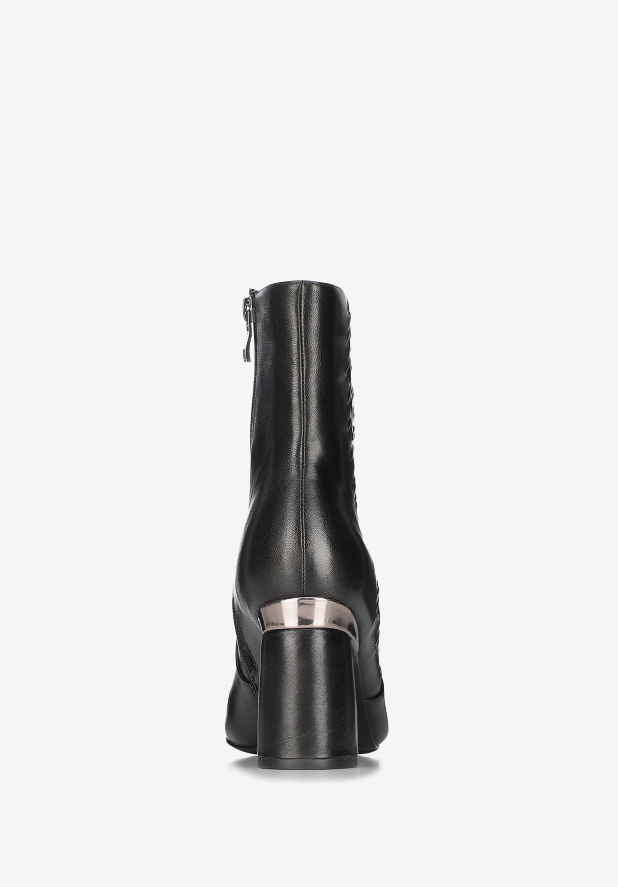 Dámske členkové čižmy na pevnom podpätku, ktorý sa smerom dole jemne rozširuje.
