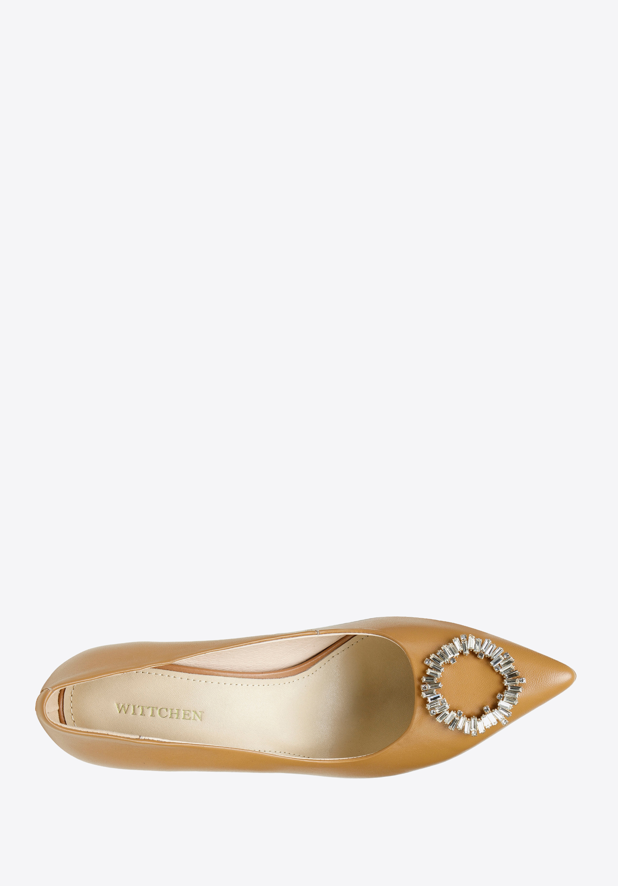 lesklou, okrúhlou prackou vyrobenou z malých kryštálov. Topánky sú vyrobené z veľmi kvalitnej