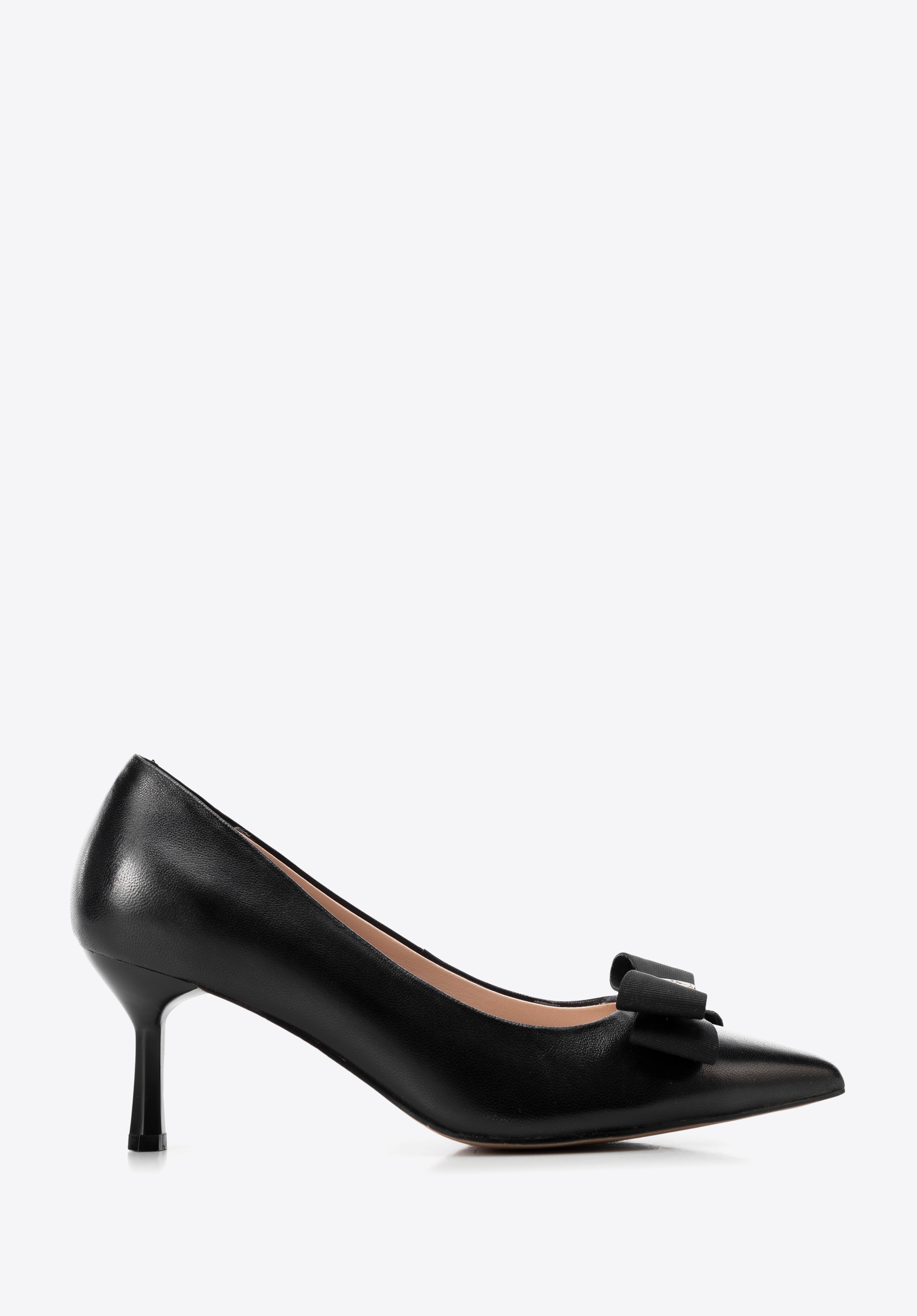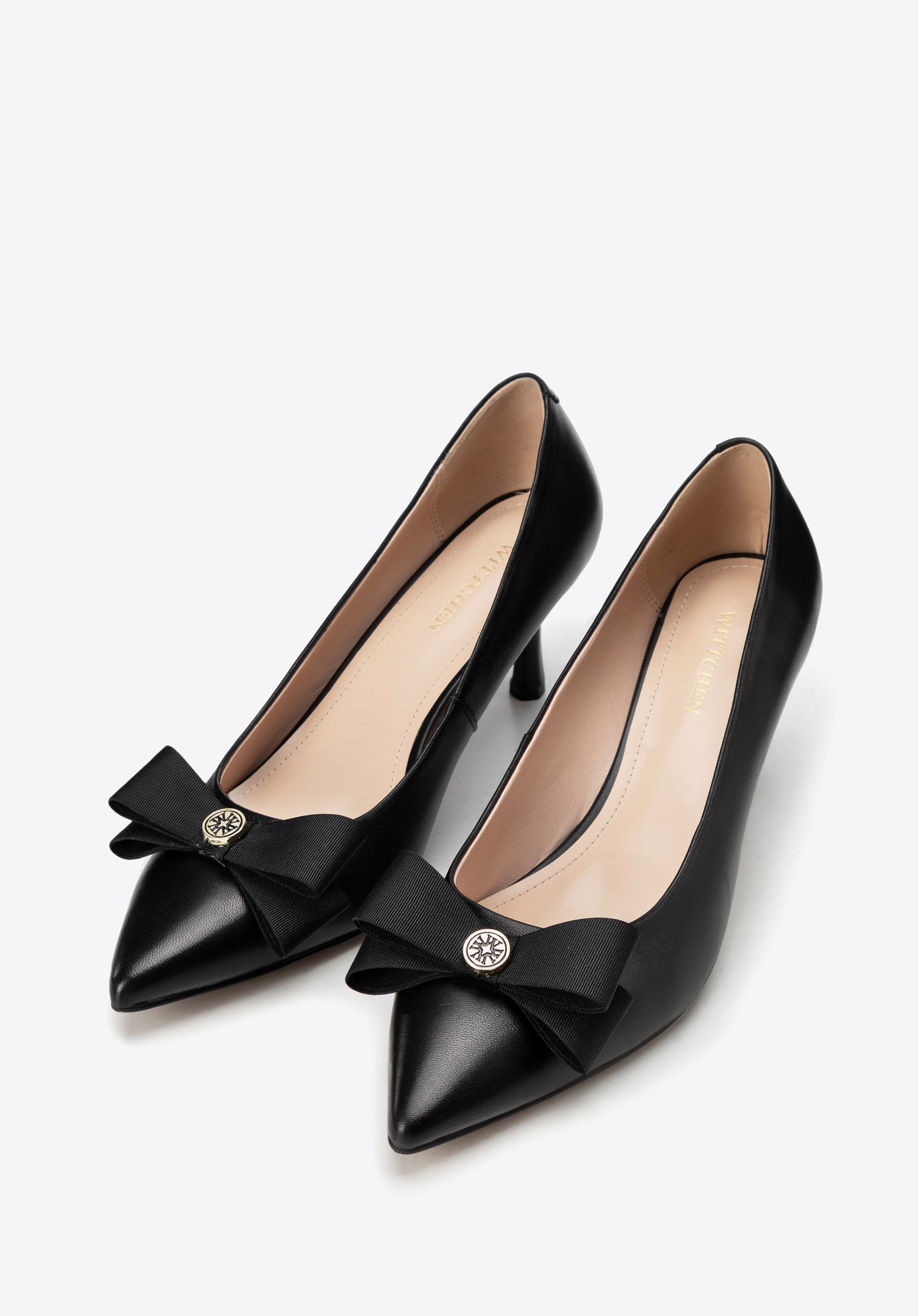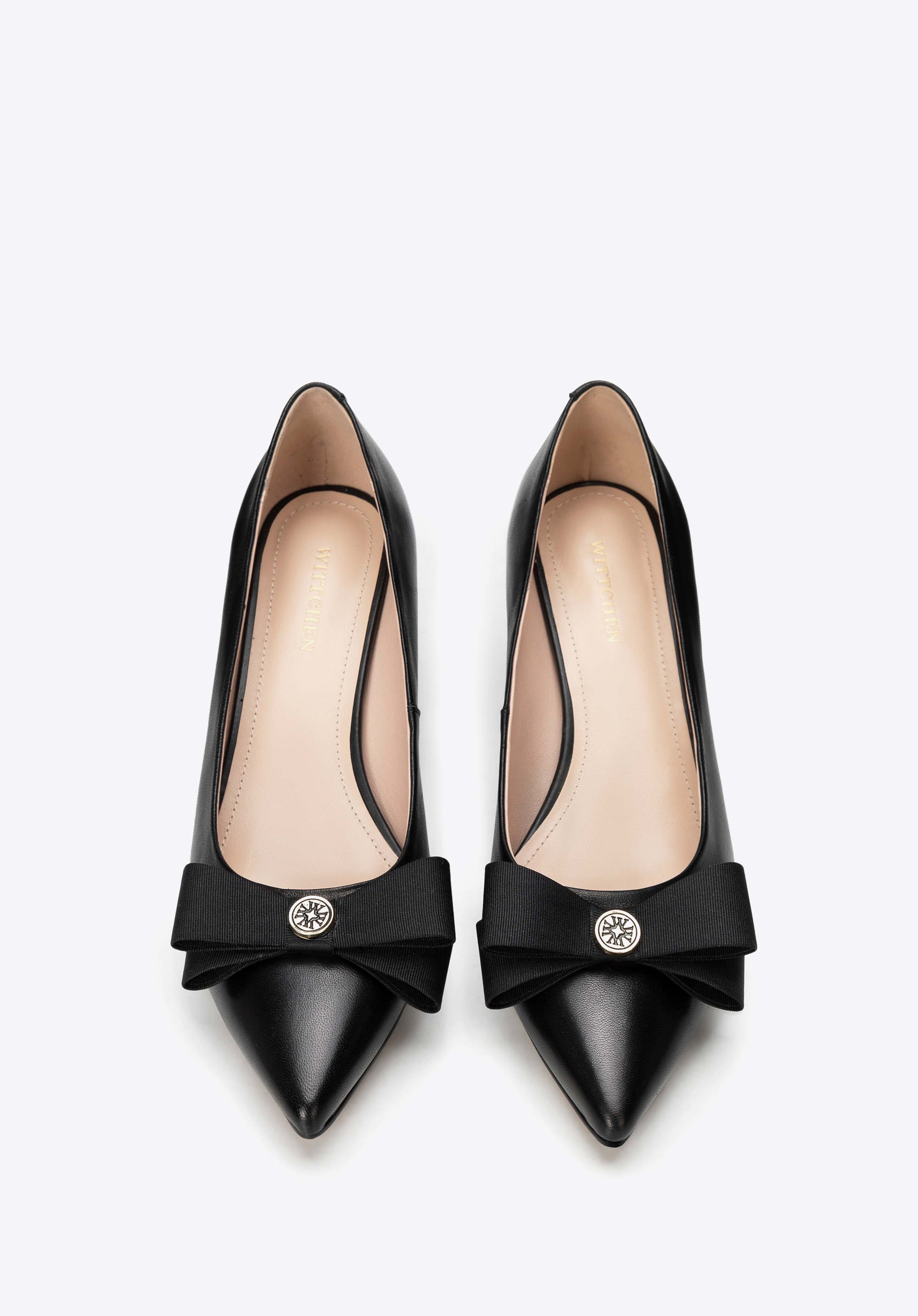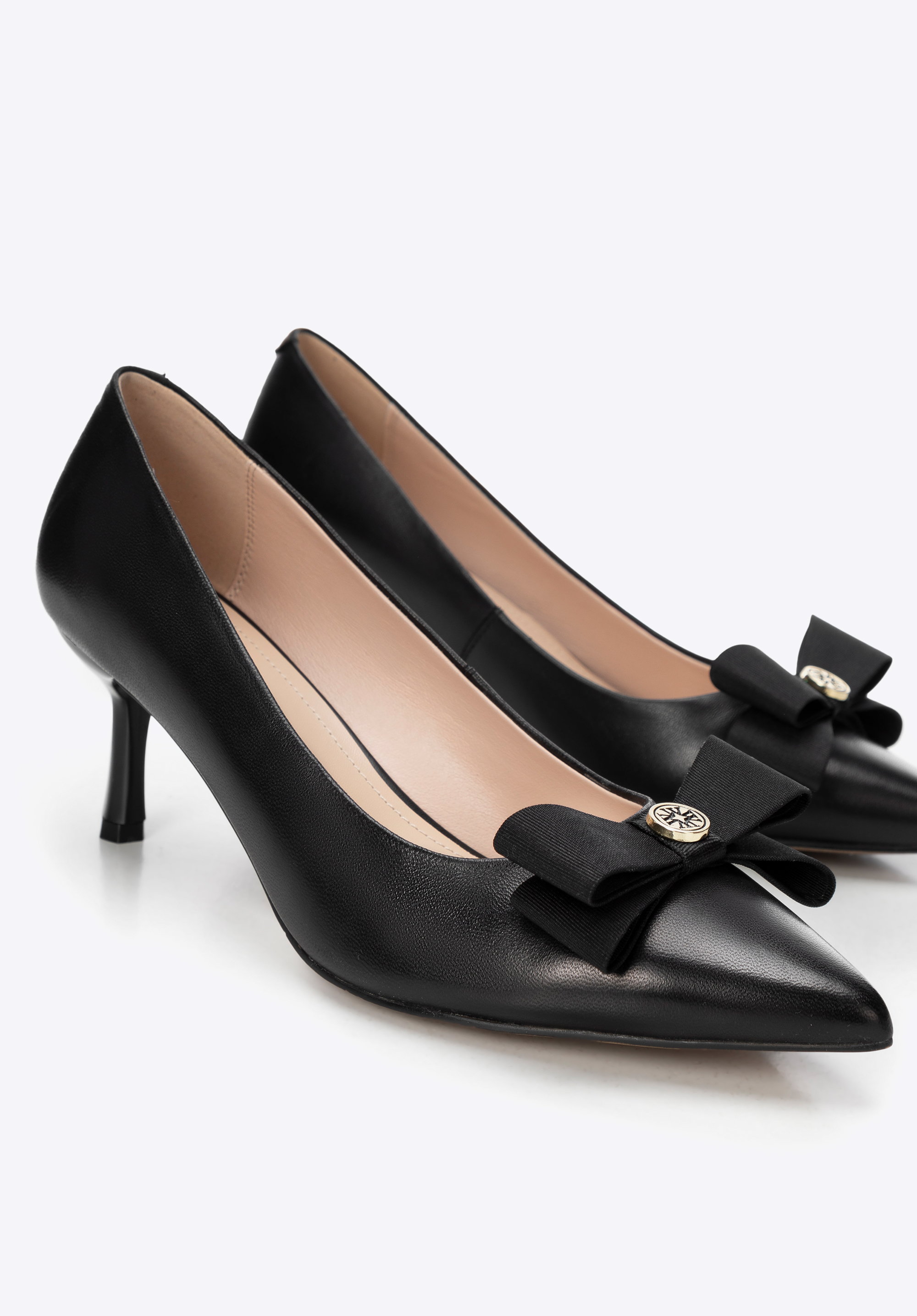 Ponúkame výnimočné kurty, v ktorých sa snúbi luxus, pohodlie a nadčasový štýl. Tieto topánky vyrobené z mäkkej prírodnej kože zaručujú vynikajúcu kvalitu a celodenné pohodlie. Lakovaná koža v kombinácii s klasickou špicatou špičkou a ihličkovým podpätkom vytvára jedinečný elegantný efekt. Elegantný nádych navyše dodáva ozdobná mašľa s kovovým detailom s logom značky .