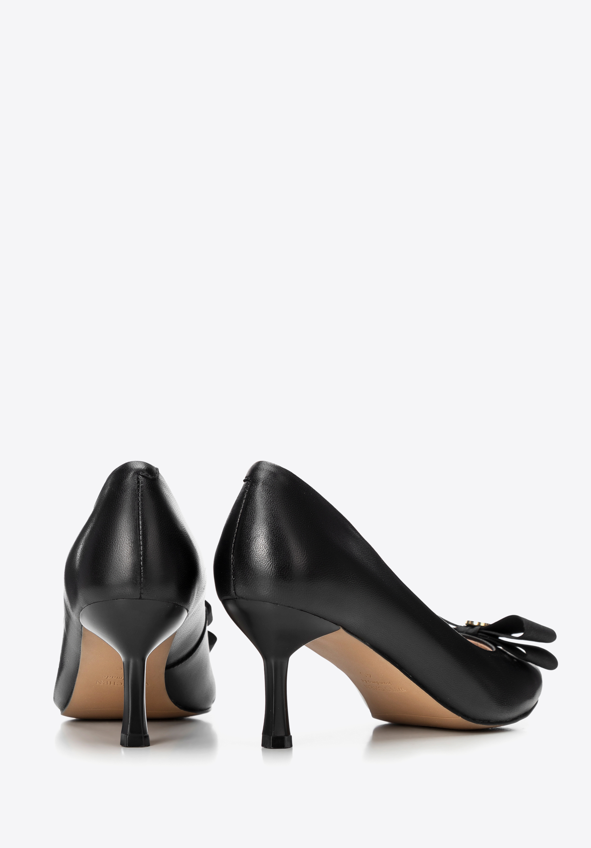 - Ozdobná mašlička s kovovým detailom s logom značky: Jemný detail, ktorý zdôrazňuje luxusný charakter topánok.