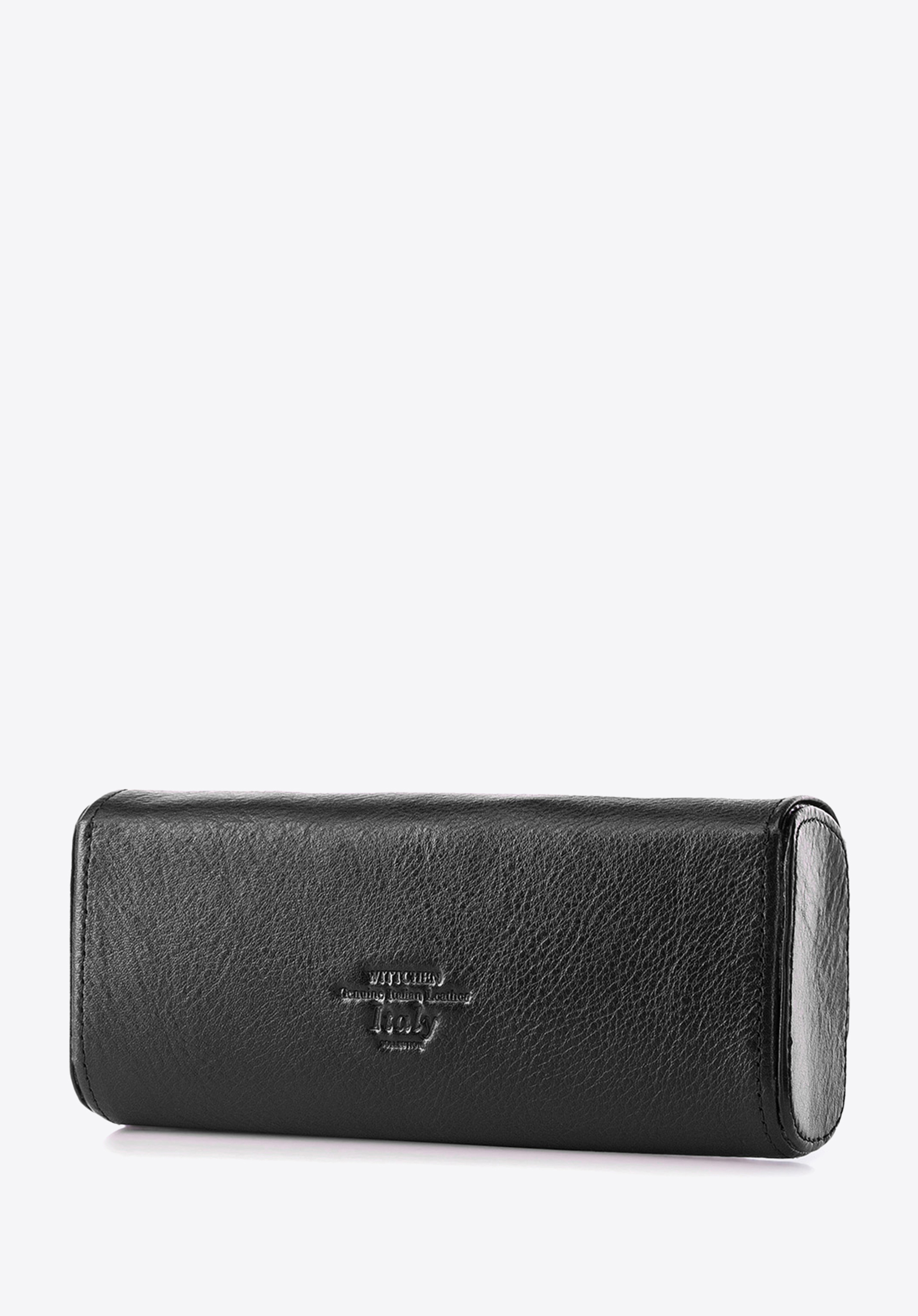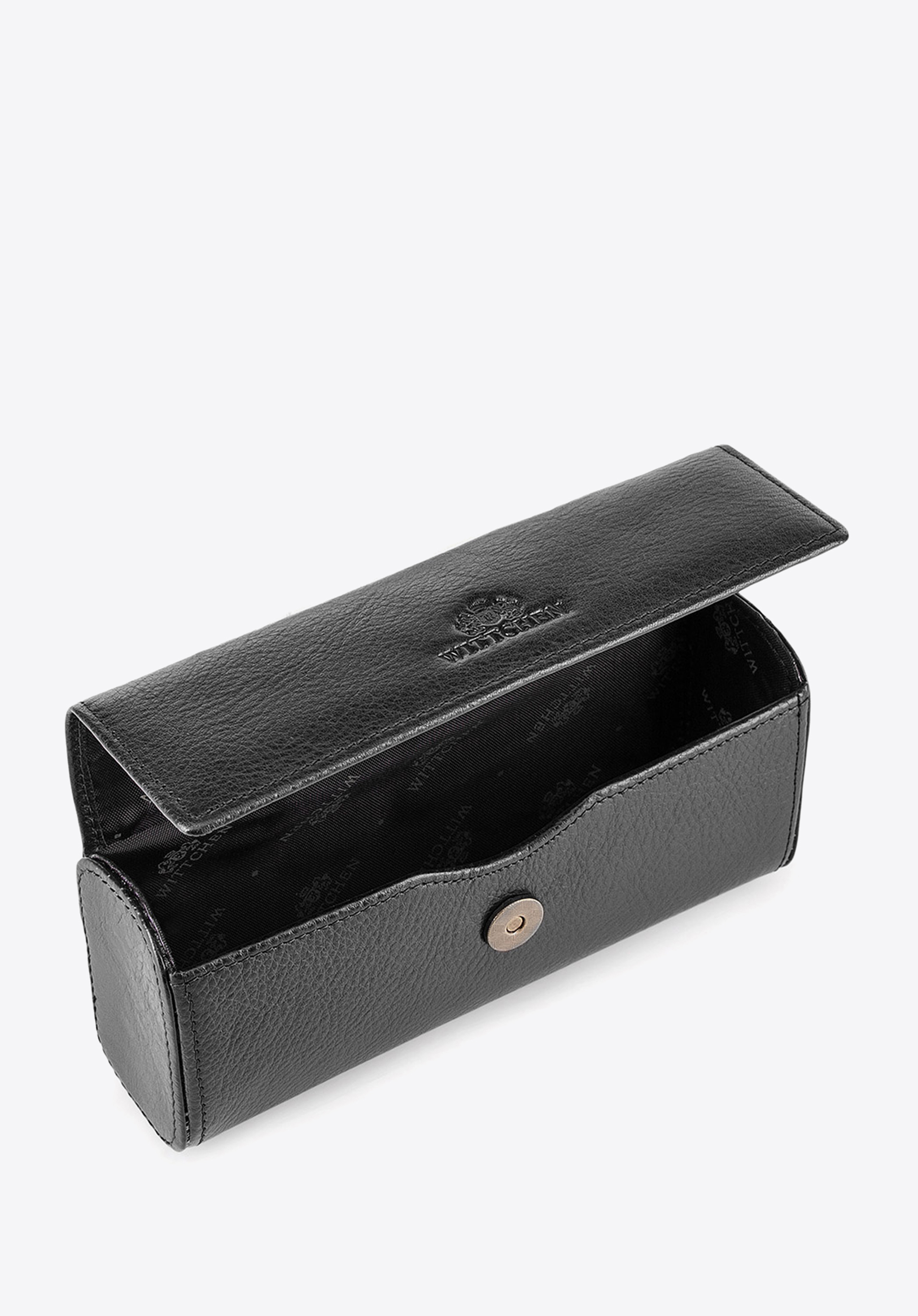 Kožené puzdro na okuliare vyrobené z najvyššej kvality teľacej kože je doplnok, ktorý určite dlho vydrží. Jeho výhodou je praktický, klasický dizajn a pohodlné magnetické zapínanie. Puzdro umožňuje pohodlné prenášanie okuliarov a vnútorná úprava z mäkkého materiálu chráni pred poškriabaním. Príslušenstvo sa dodáva v dvoch klasických farebných odtieňoch: čiernej a červenej.