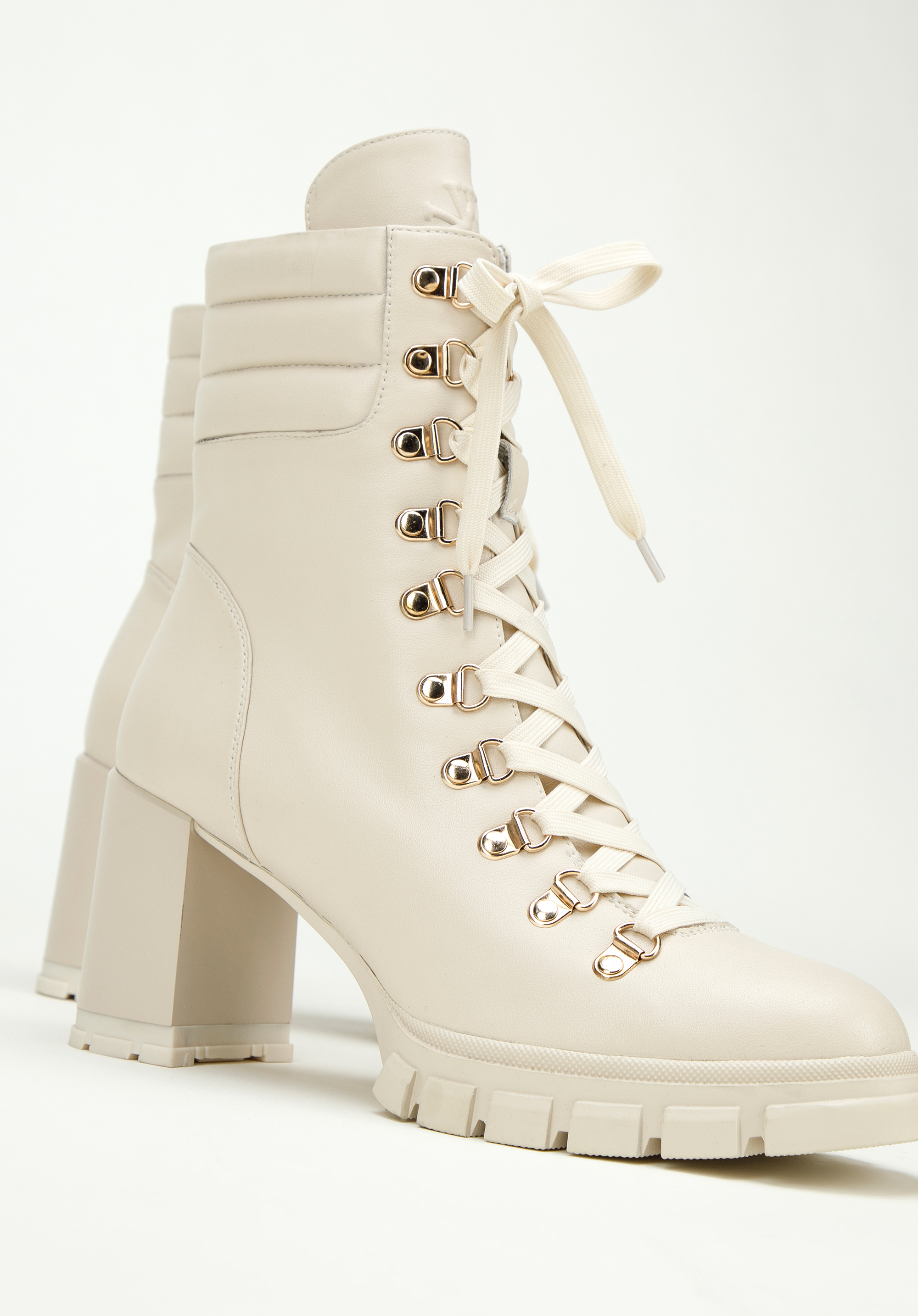Kožené členkové čižmy s prešívanou vložkou na stĺpiku sú módnym jesenným doplnkom pre každú modernú ženu.