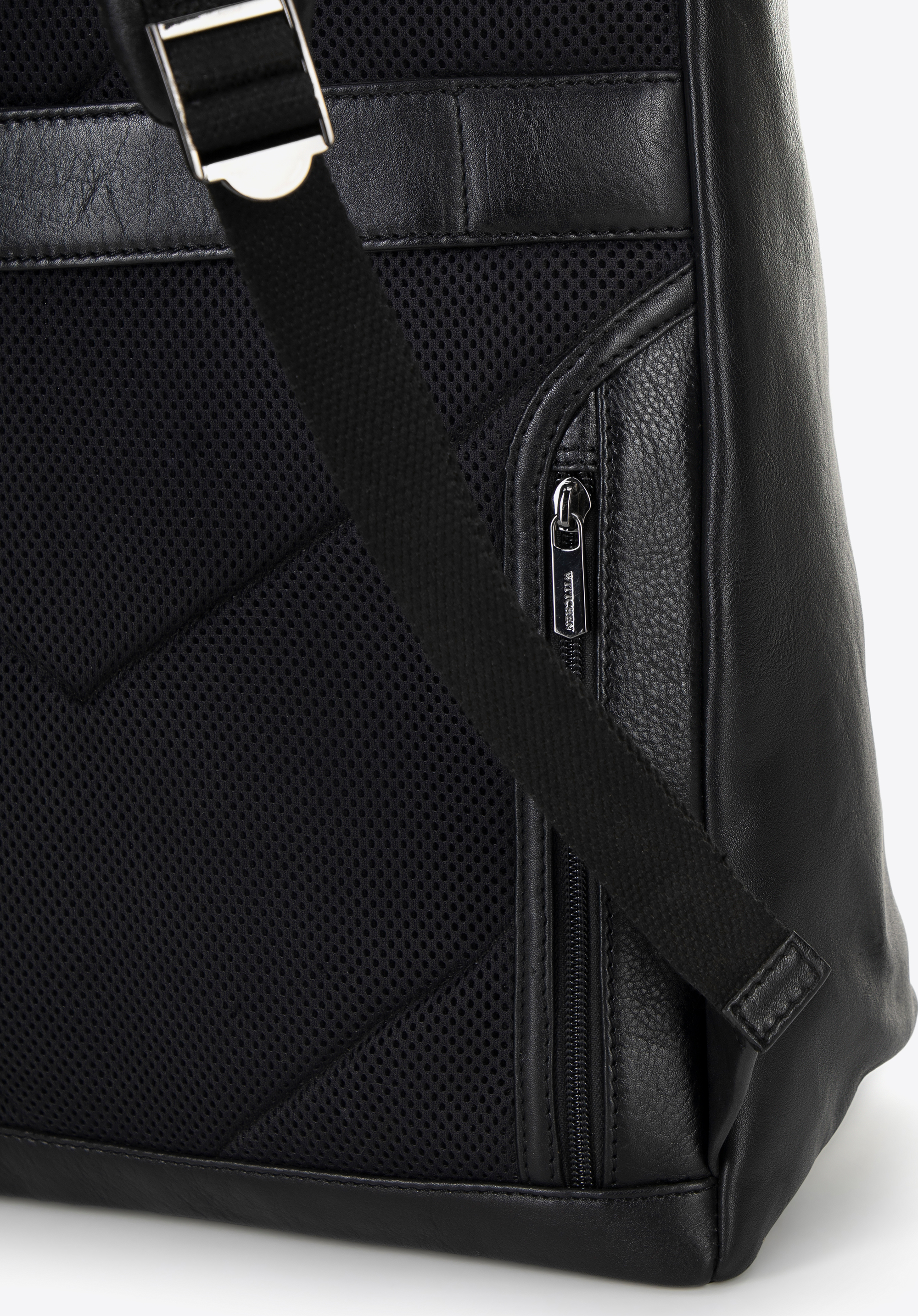 Štýlový a profesionálny – tento batoh vyrobený z prírodnej kože je perfektnou voľbou pre mužov, ktorí kombinujú eleganciu s praktickým prístupom k každodenným úlohám. Vďaka samostatnému priestoru na notebook s uhlopriečkou do 16 palcov (max. 34 × 30 cm) a praktickému držadlu na kufor je vynikajúcim spoločníkom do kancelárie aj na služobné cesty.
