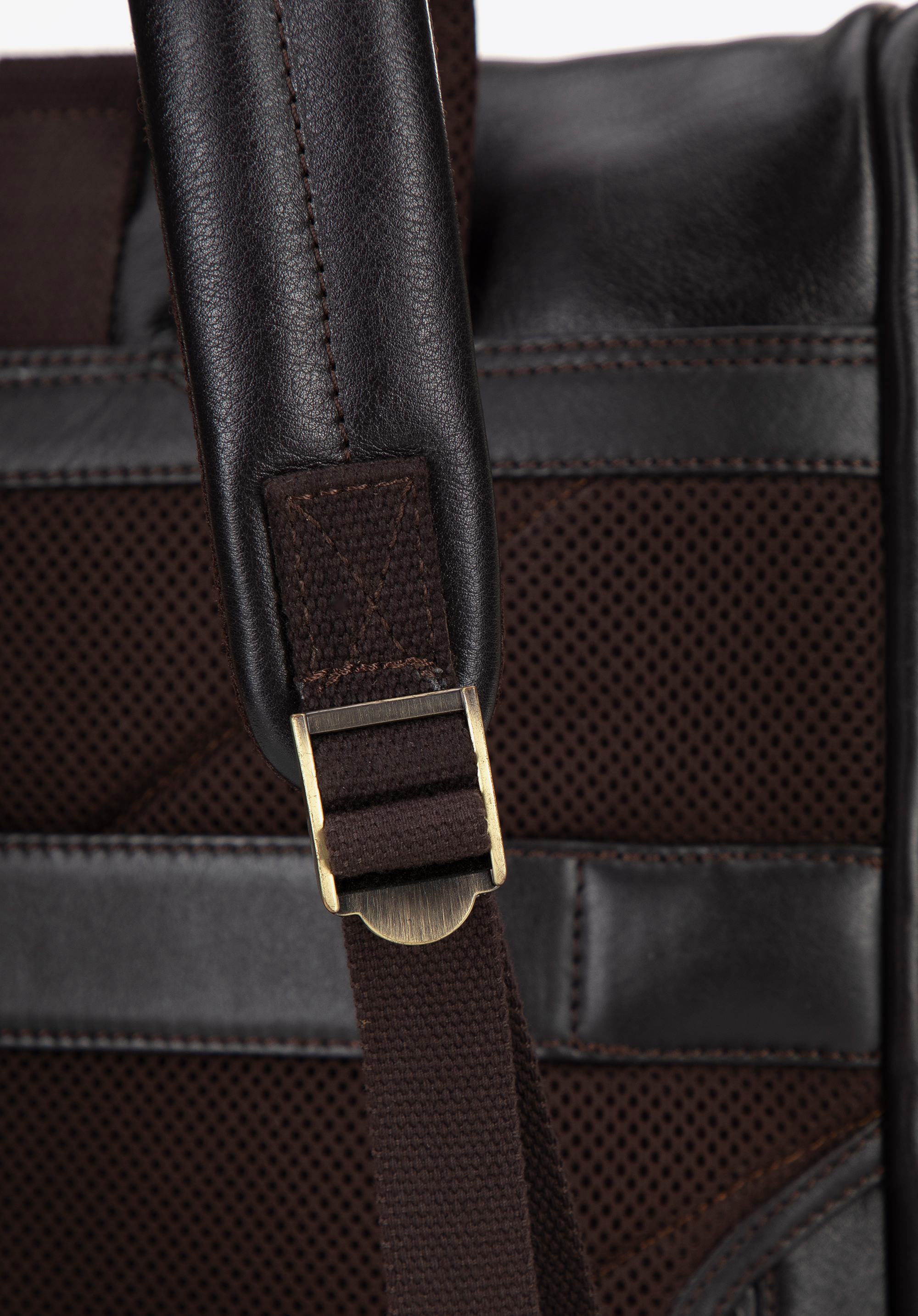 Štýlový a profesionálny – tento batoh vyrobený z prírodnej kože je perfektnou voľbou pre mužov, ktorí kombinujú eleganciu s praktickým prístupom k každodenným úlohám. Vďaka samostatnému priestoru na notebook s uhlopriečkou do 16 palcov (max. 34 × 30 cm) a praktickému držadlu na kufor je vynikajúcim spoločníkom do kancelárie aj na služobné cesty.