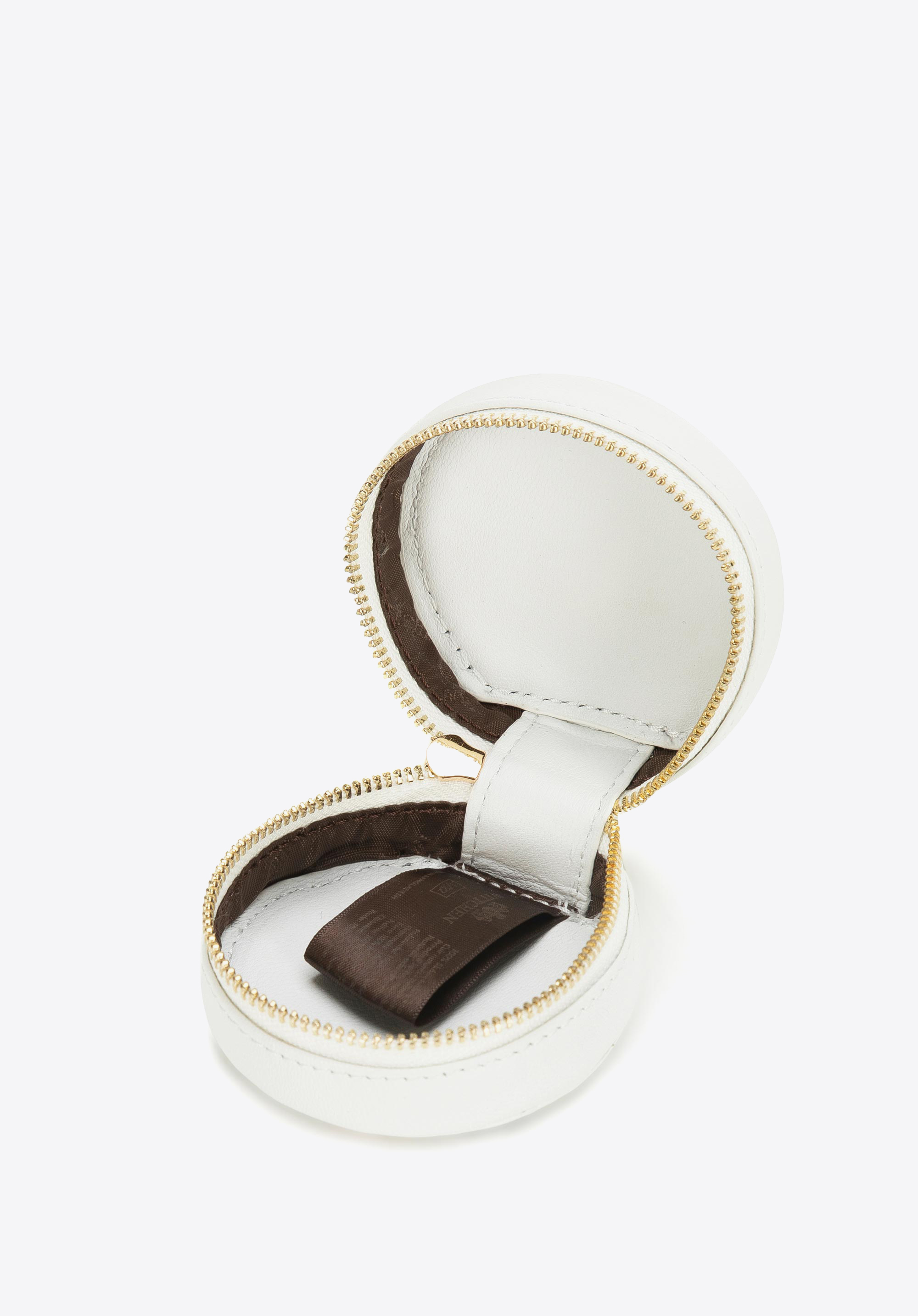 zlatým kovaním. Do tohto malého doplnku sa zmestí napríklad drobná kozmetika, šperky alebo drobnosti. Vďaka tomu ich môžete bezpečne uložiť počas cestovania alebo v kabelke. Kožený prívesok z puzdrom je praktický a elegantný doplnok, ktorý vás bude tešiť dlhé roky.