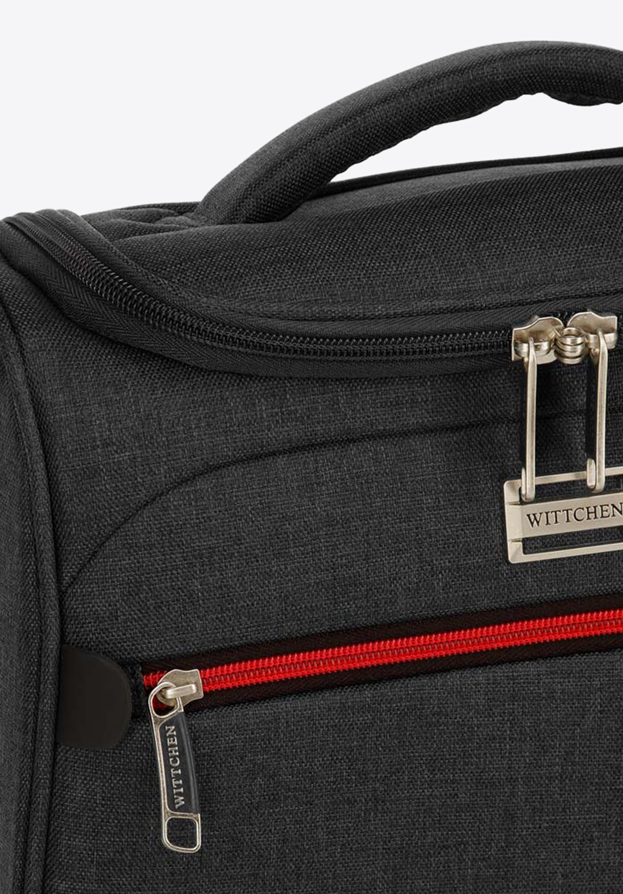 Univerzálny model kozmetickej tašky, ktorý si môžete vziať so sebou na mnohé cesty. Má vystužené dno a bočné steny, takže aj v nepríjemných podmienkach zostanú vaše veci nepoškodené. Je vyrobená z hrubej, odolnej tkaniny, ktorá sa navyše vyznačuje bezproblémovým čistením. Jeho ozdobou je farebný zips. Vo vnútri nájdete vrecko na zips a odnímateľné zrkadlo. Aby sa vám pohodlne nosila, môžete ju nasadiť na rukoväť kufra alebo si ju prehodiť cez rameno na pripevniteľnom popruhu. Kozmetická taška s farebným zipsom je nepostrádateľným doplnkom, či už idete lietadlom alebo autom – vezmite si ju so sebou.