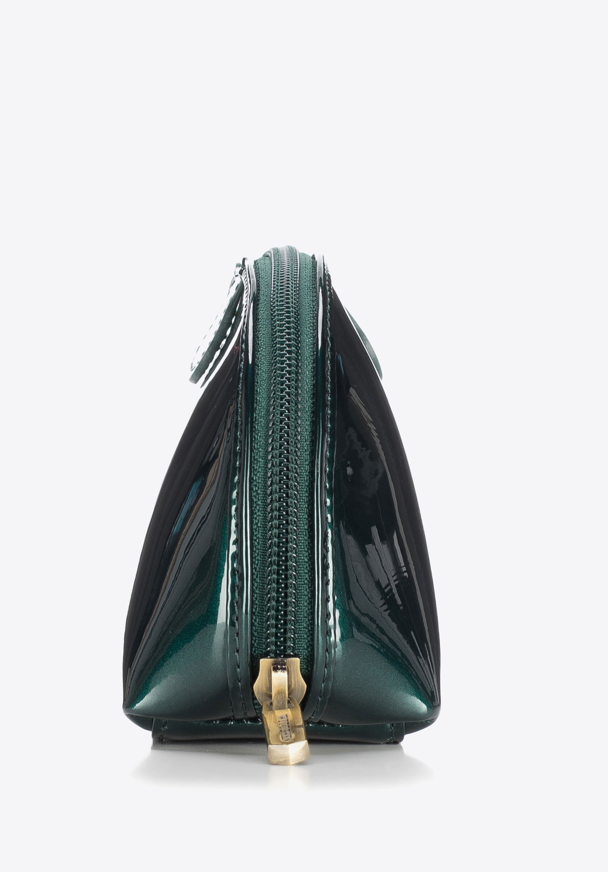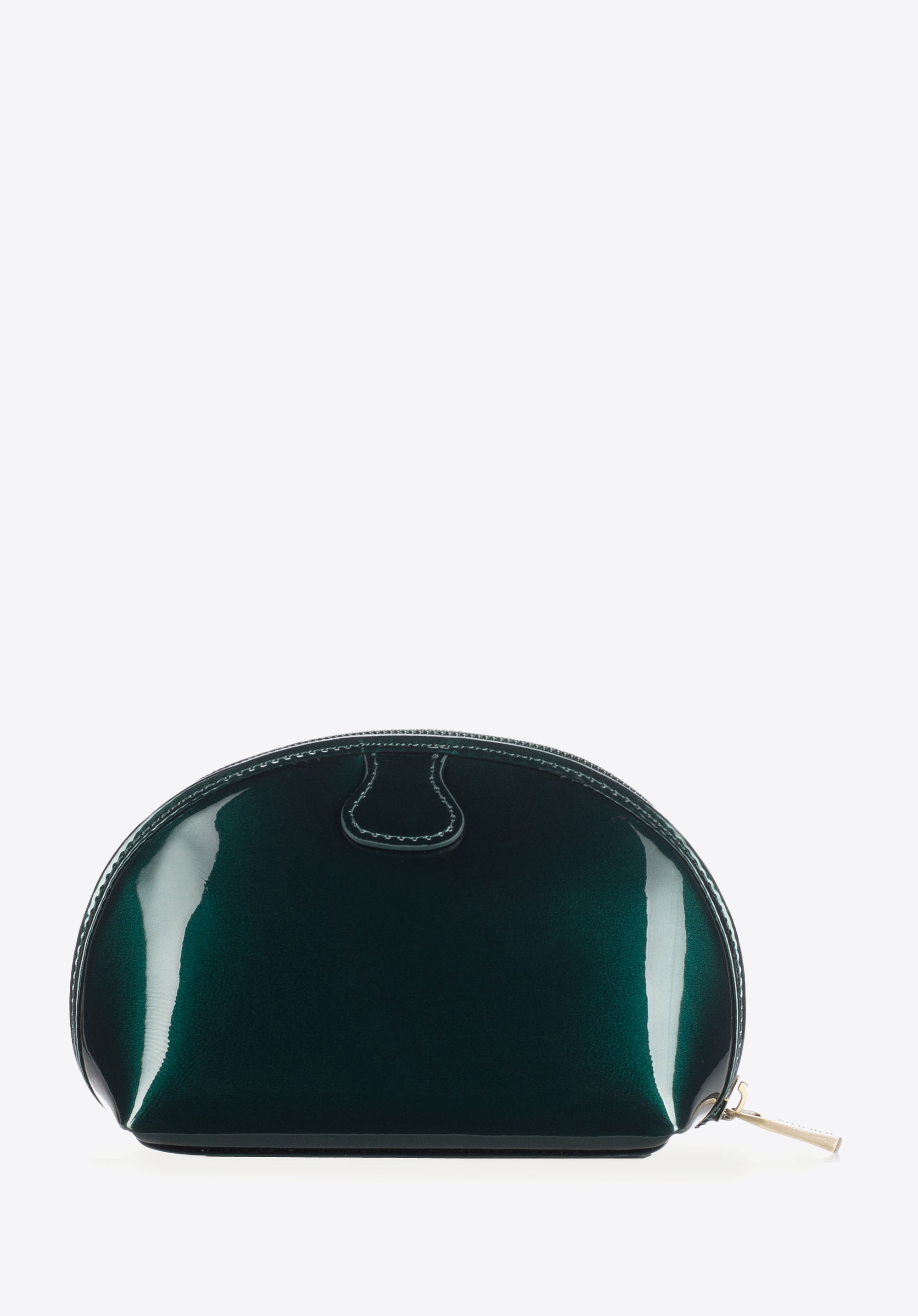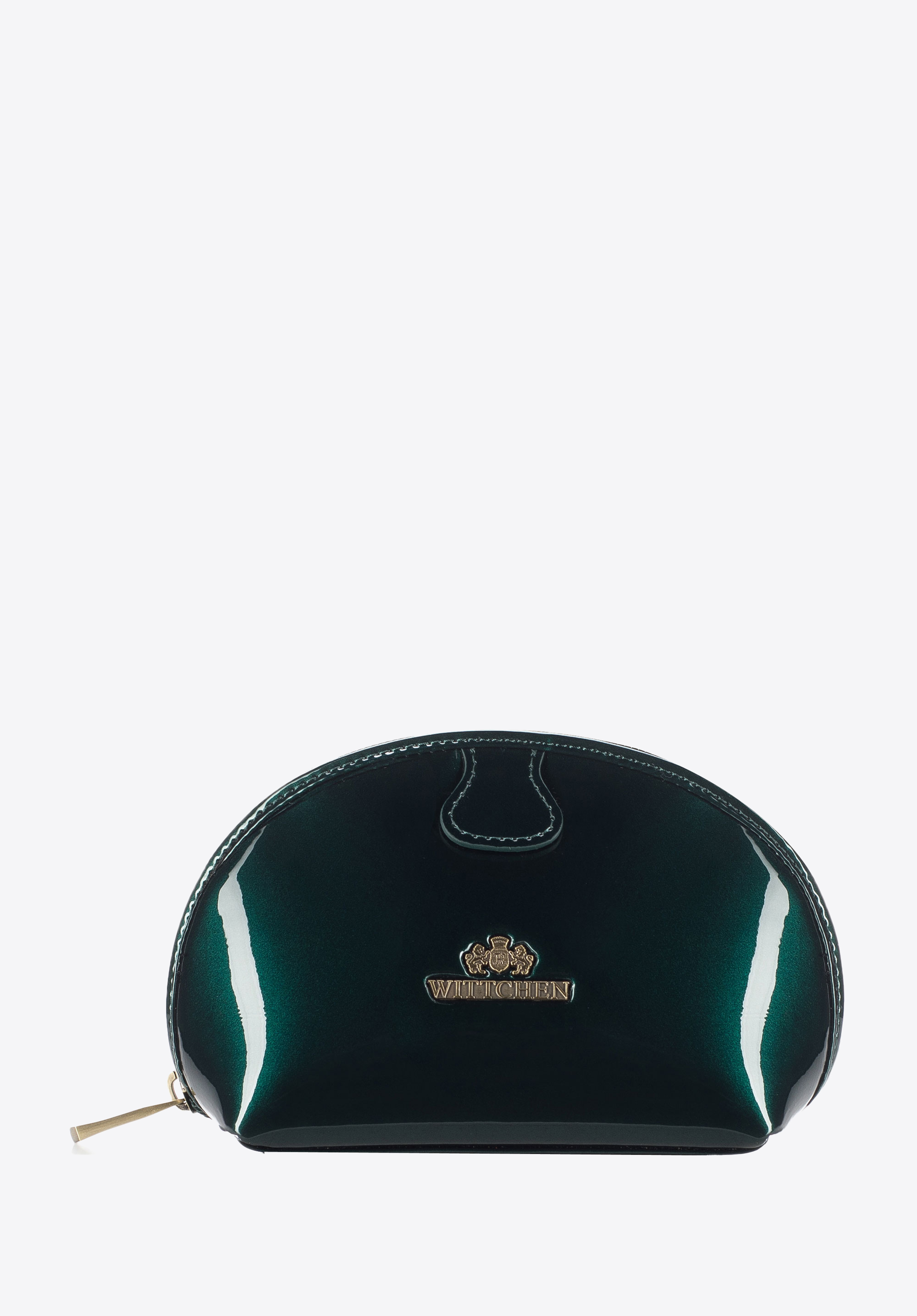 Malá kozmetická taška z lakovanej kože je doplnkom, ktorého jedinečný dizajn okamžite upúta pozornosť. Pohodlný tvar a praktické zapínanie na zips sú ďalšími výhodami tohto modelu.
