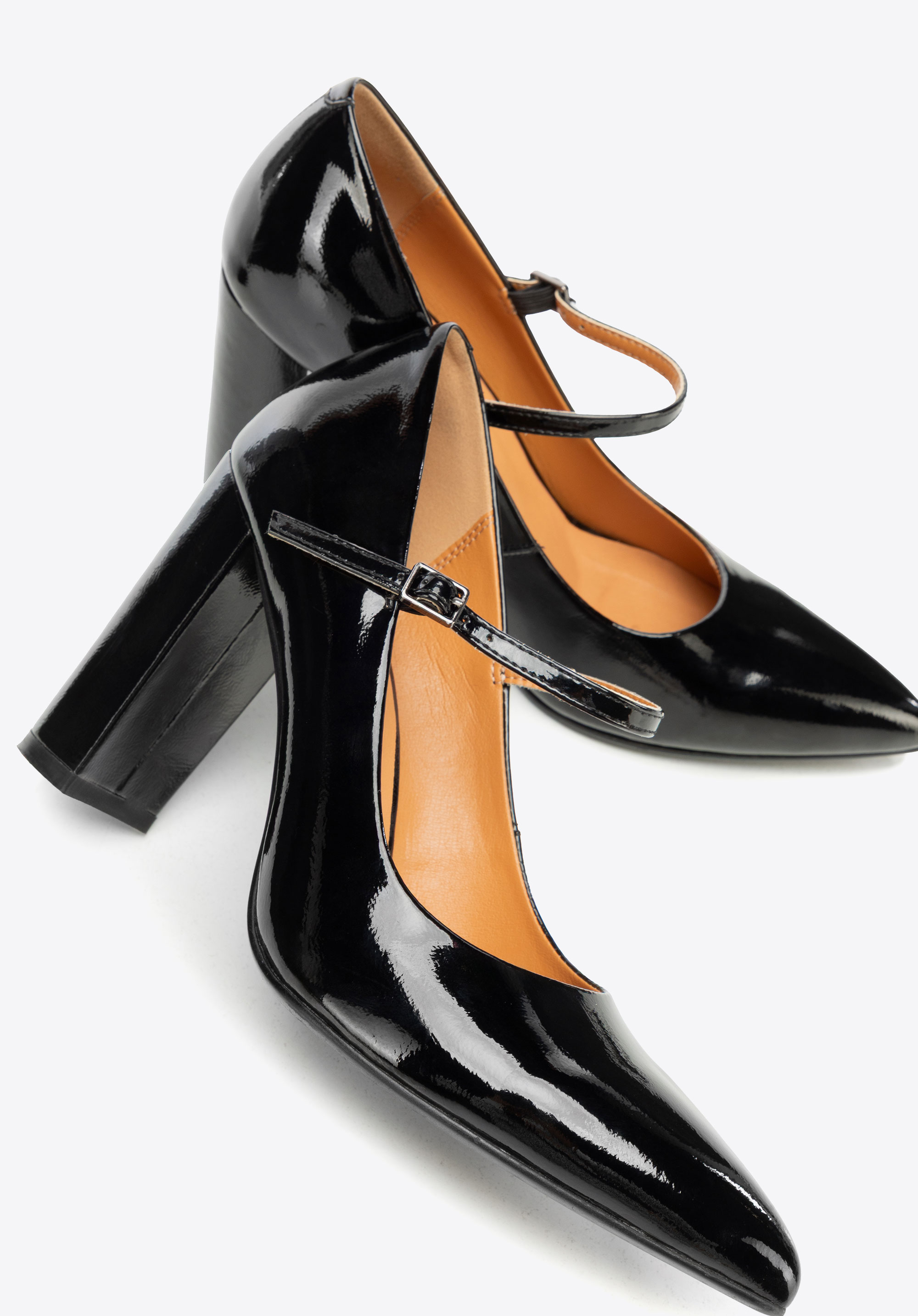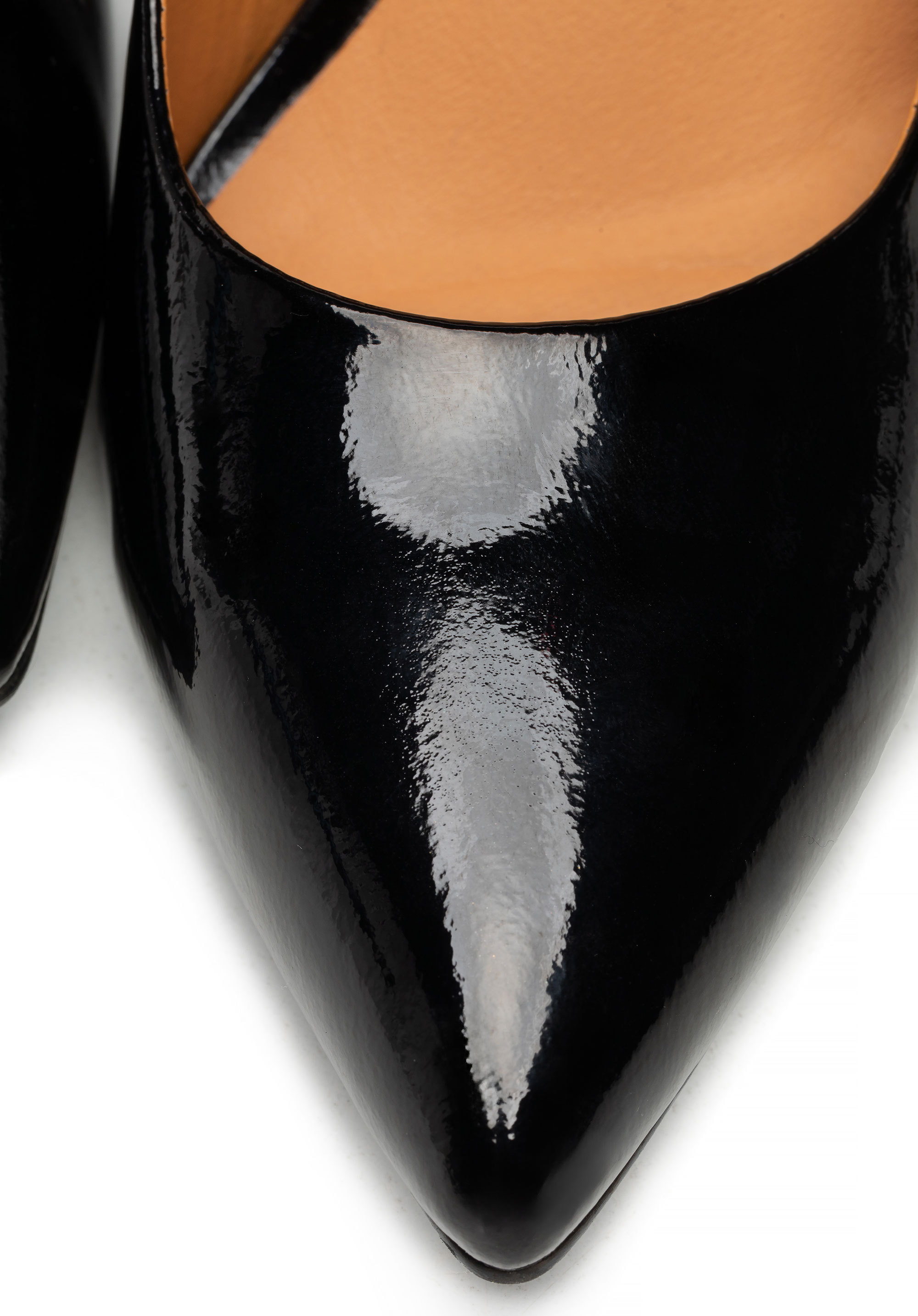 Tieto lodičky vyrobené z lakovanej kože kombinujú elegantný dizajn s pohodlným nosením. Vysoký podpätok poskytuje stabilitu a istotu pri každom kroku, zatiaľ čo jeden predný remienok jemne prispôsobuje topánku chodidlu a zaisťuje pohodlie a oporu počas celého dňa. Špicatá špička predlžuje chodidlo, dodáva siluete ľahkosť a klasický štýl. Perfektná voľba pre ženy, ktoré si cenia eleganciu a praktické pohodlie v jednom.