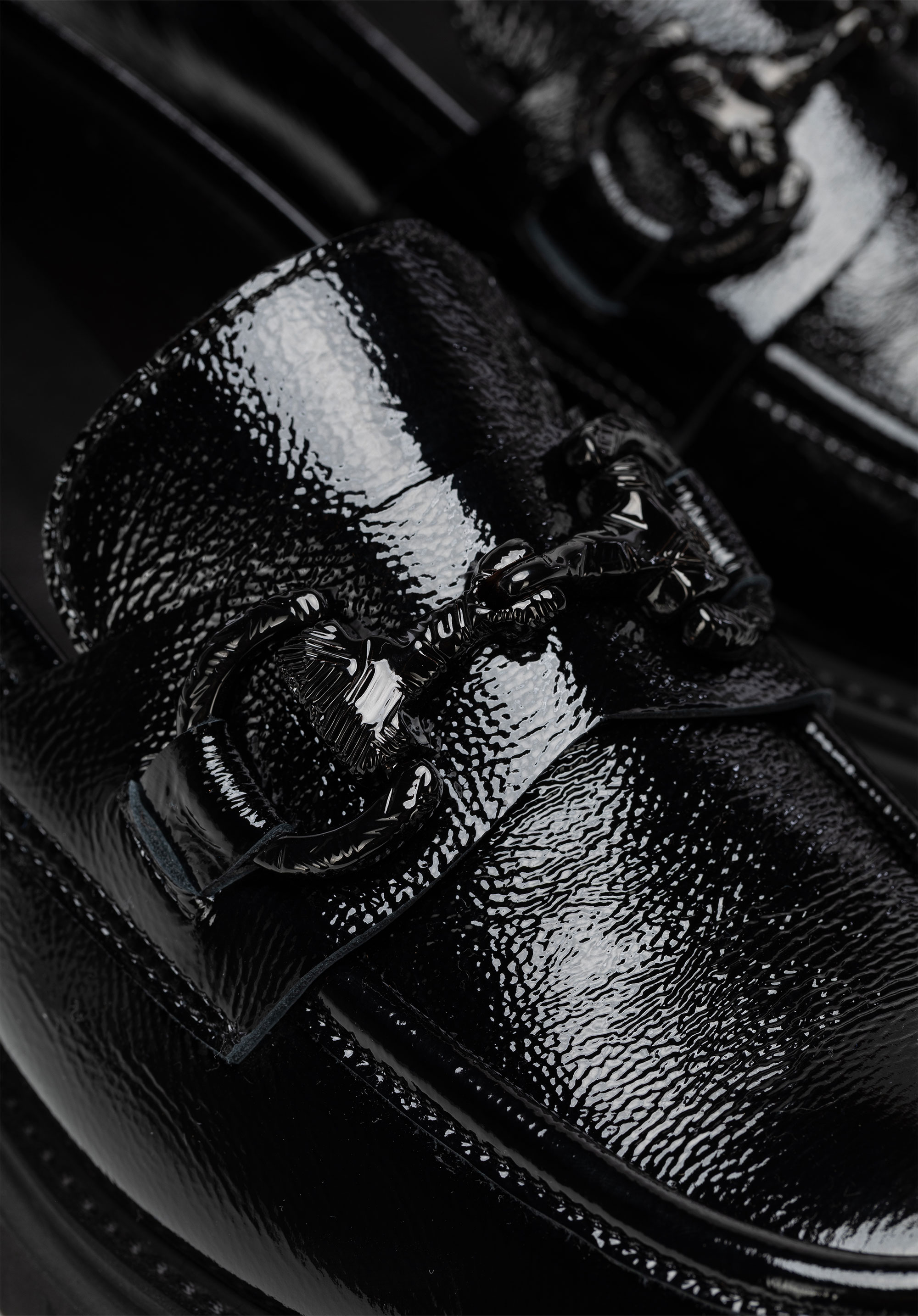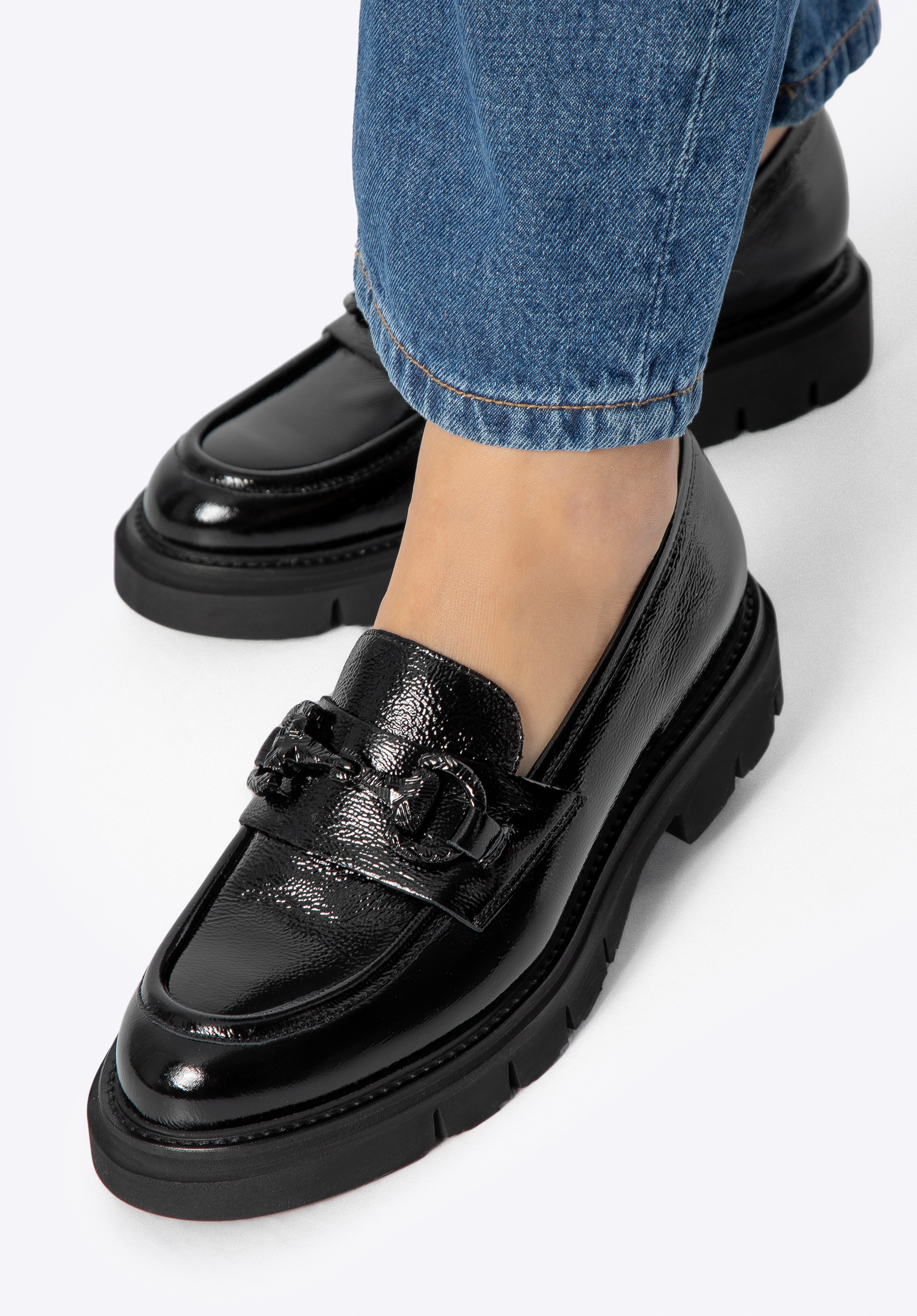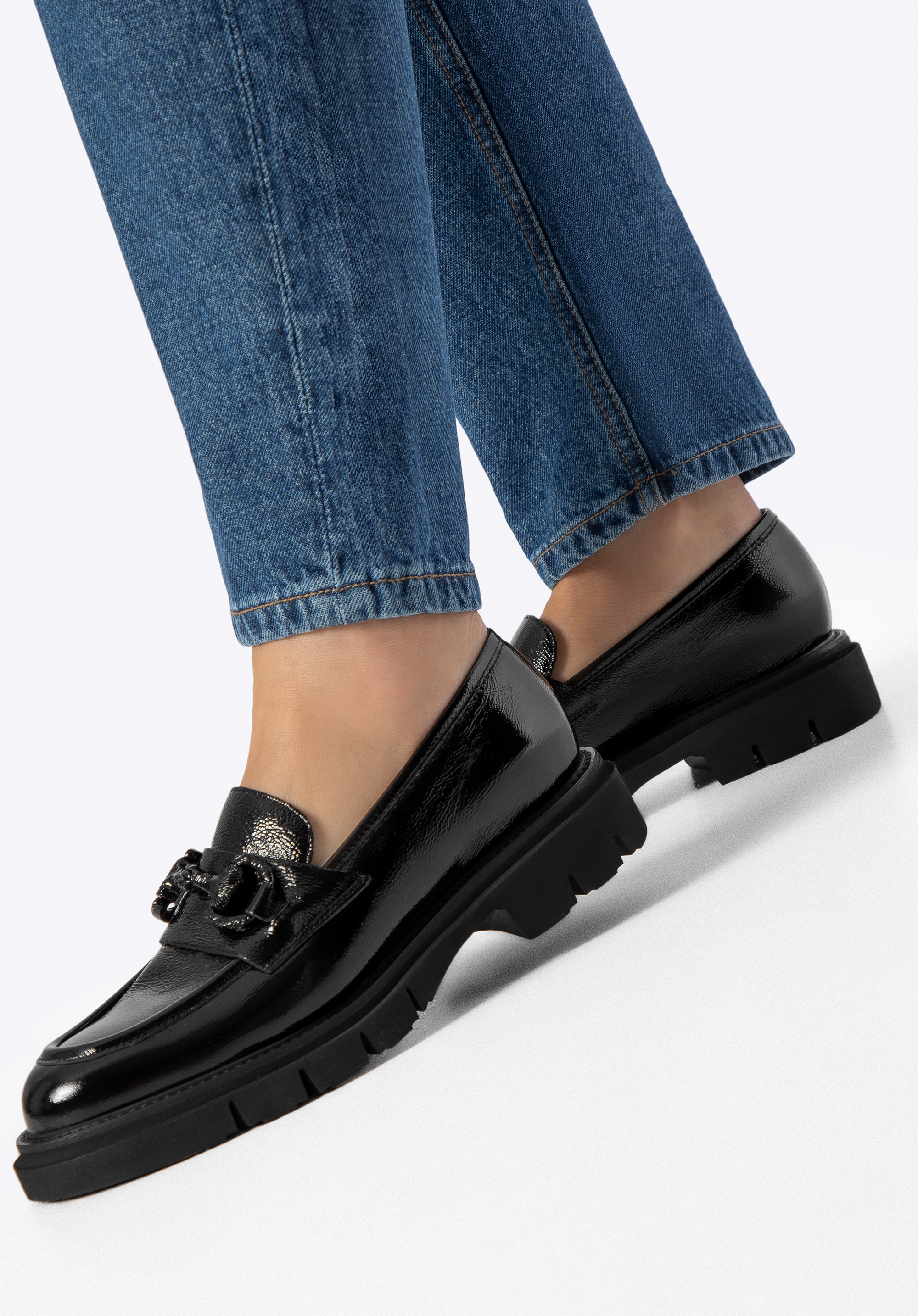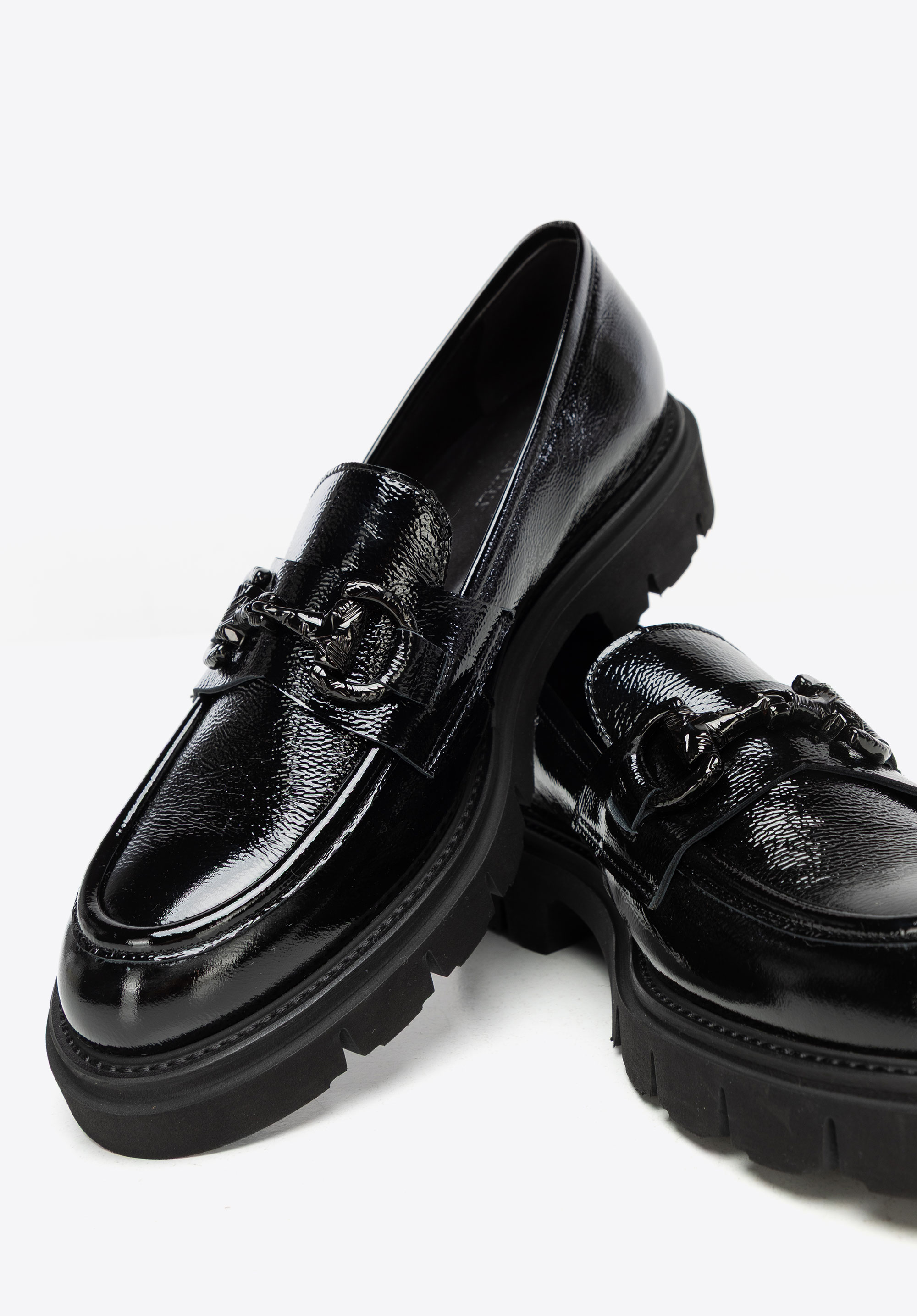 Elegancia s talianskym nádychom. Tieto mokasíny sú moderným poňatím nadčasovej klasiky – určené pre ženy, ktoré chcú vyzerať bez námahy šik bez kompromisov v pohodlí. Vyrobené z vysoko kvalitnej lakovanej kože , zaujmú jemným leskom a bezchybným povrchom. Ozdobná pracka vpredu dodáva rafinovaný akcent, zatiaľ čo mandľovitý tvar špičky opticky predlžuje chodidlo. Hrubšia, robustná podrážka jemne zvýrazňuje vašu siluetu a ponúka ľahkosť aj stabilitu.