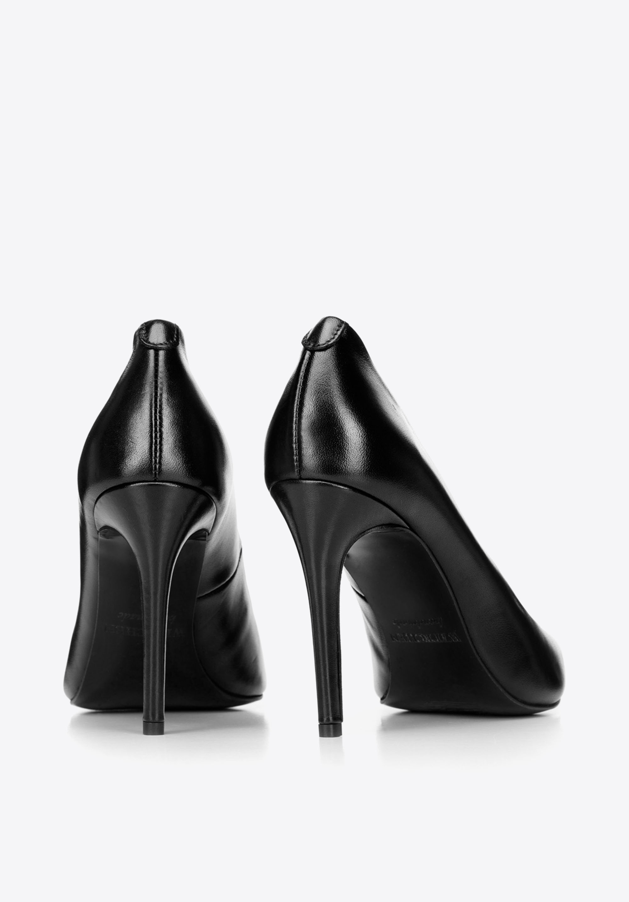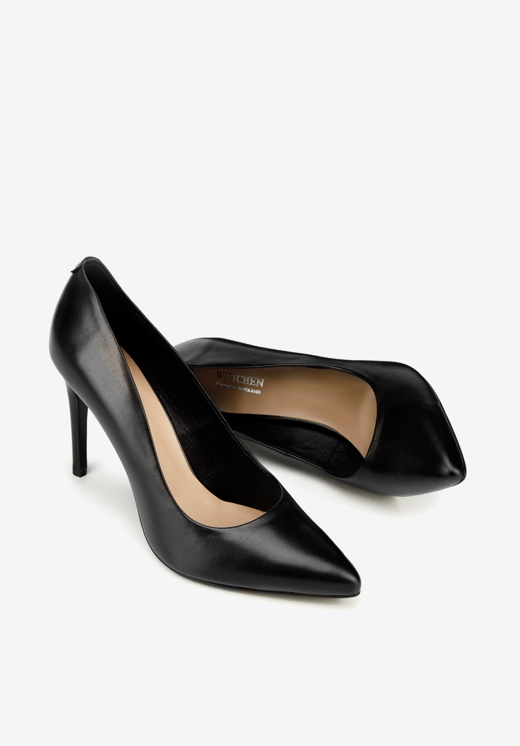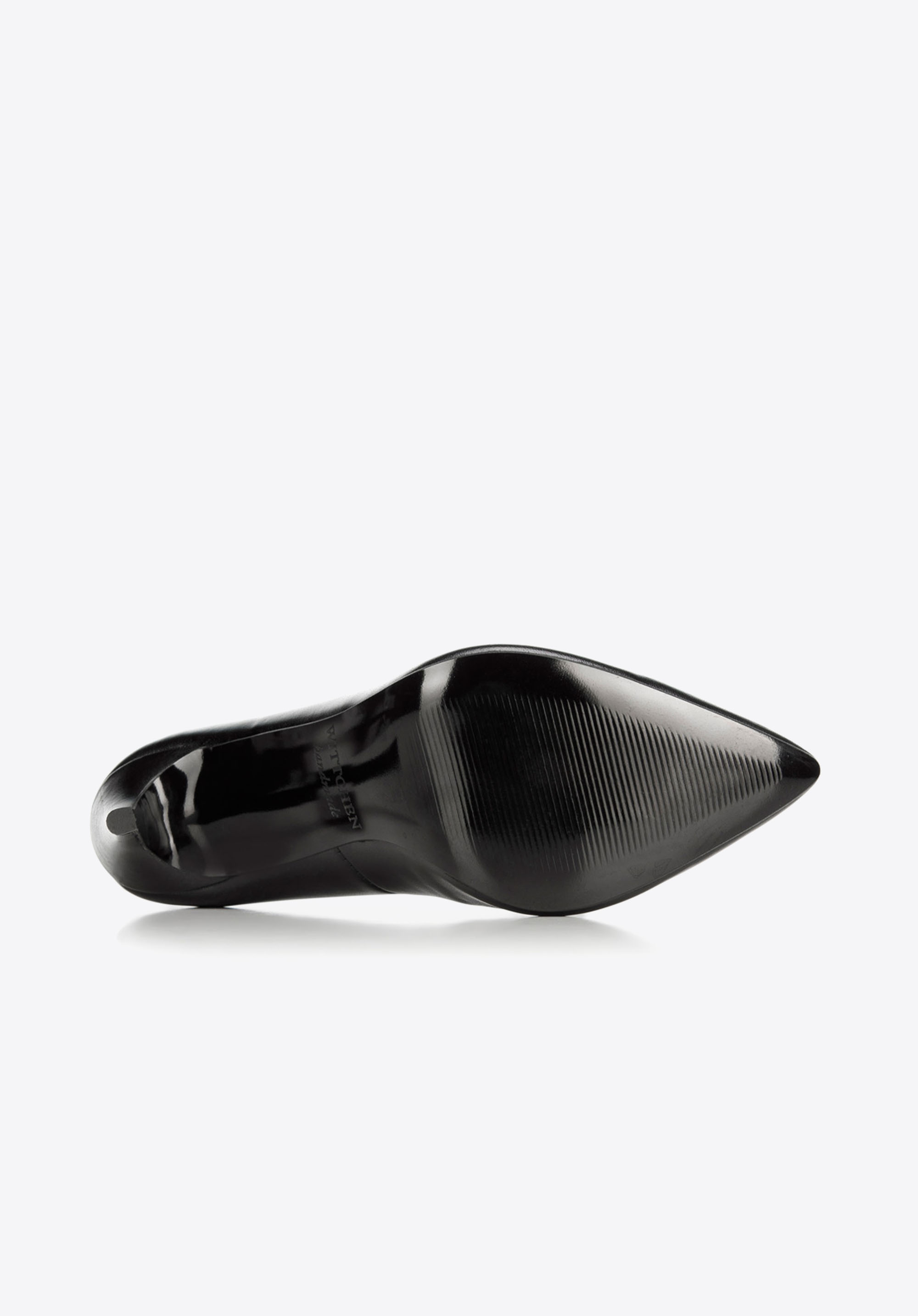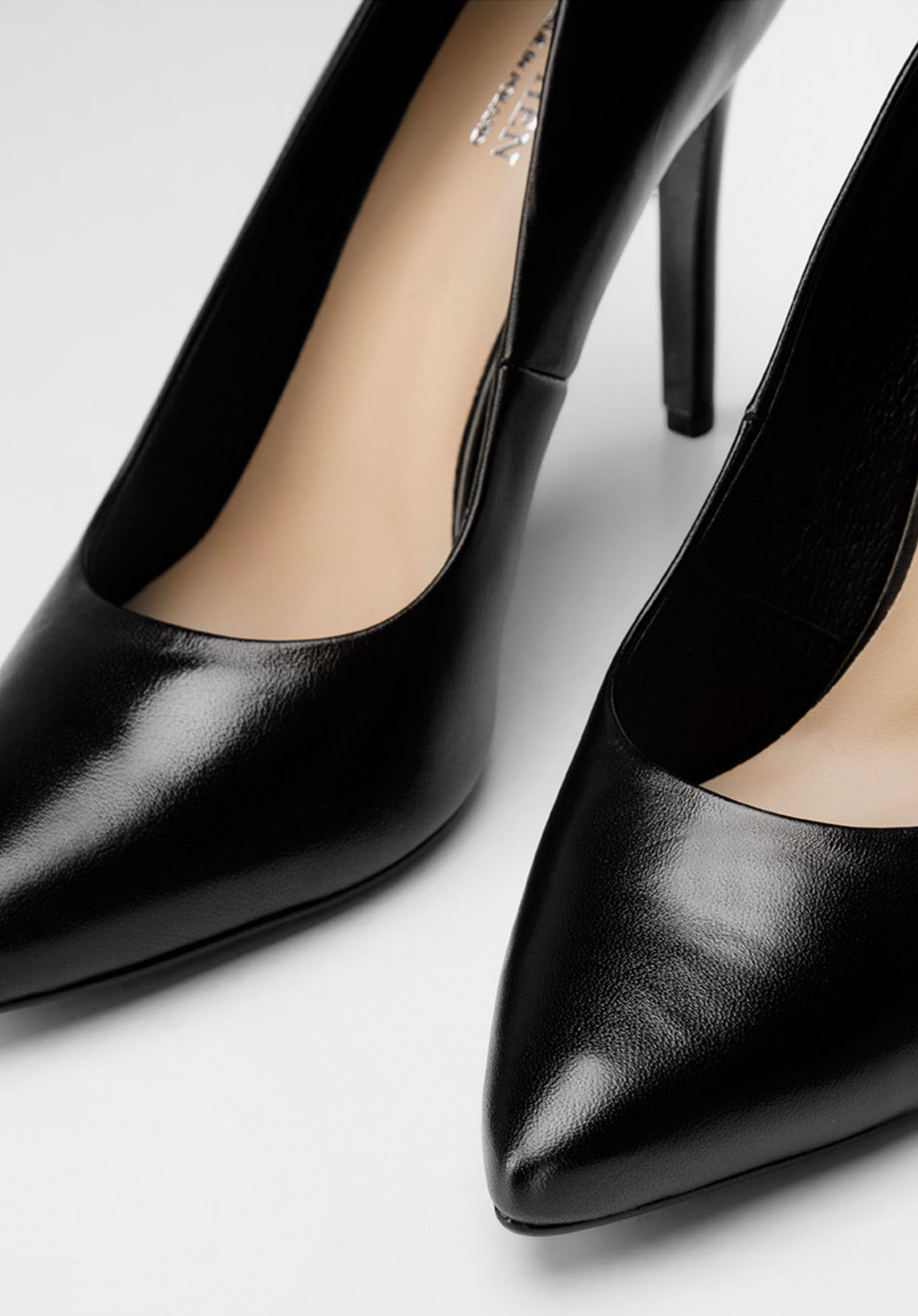 Tieto topánky na ihličkovom podpätku sú vyrobené z najkvalitnejšej prírodnej kože. Vďaka špicatej špičke, ktorá predlžuje chodidlo, sedia na nadčasovom ihličkovom podpätku s výškou 10,5 cm. Stielka je vyrobená z prírodnej kozej kože pre maximálne pohodlie pri nosení. Tieto elegantné topánky na vysokom podpätku sú perfektné ako svadobné topánky a dodajú vášmu vzhľadu posledný šmrnc. K dispozícii v klasických farbách, budú sa hodiť k mnohým kúskom z vášho šatníka.