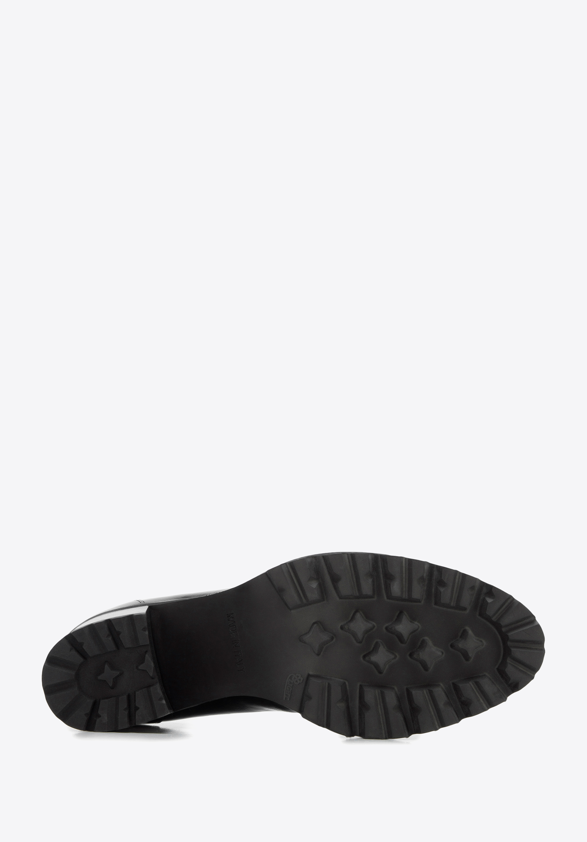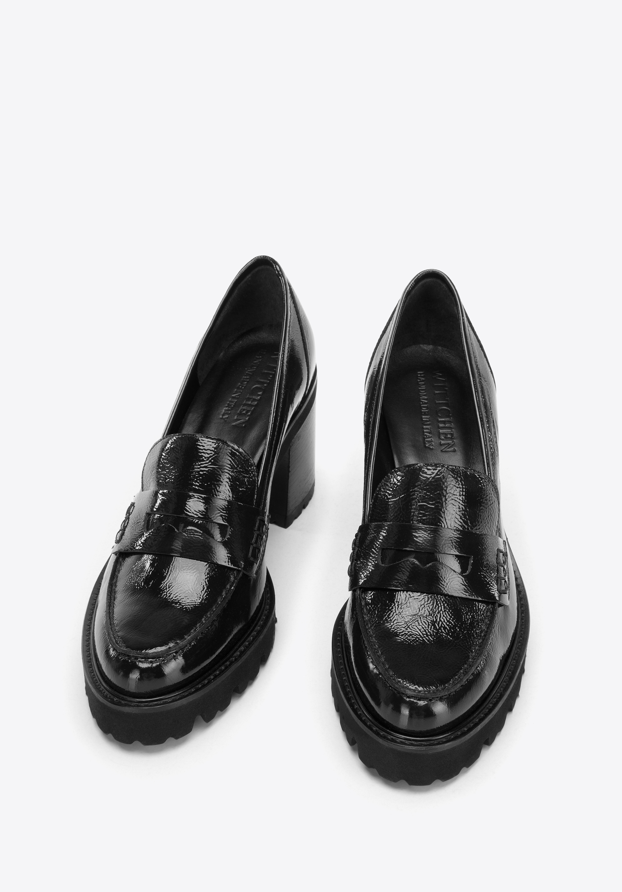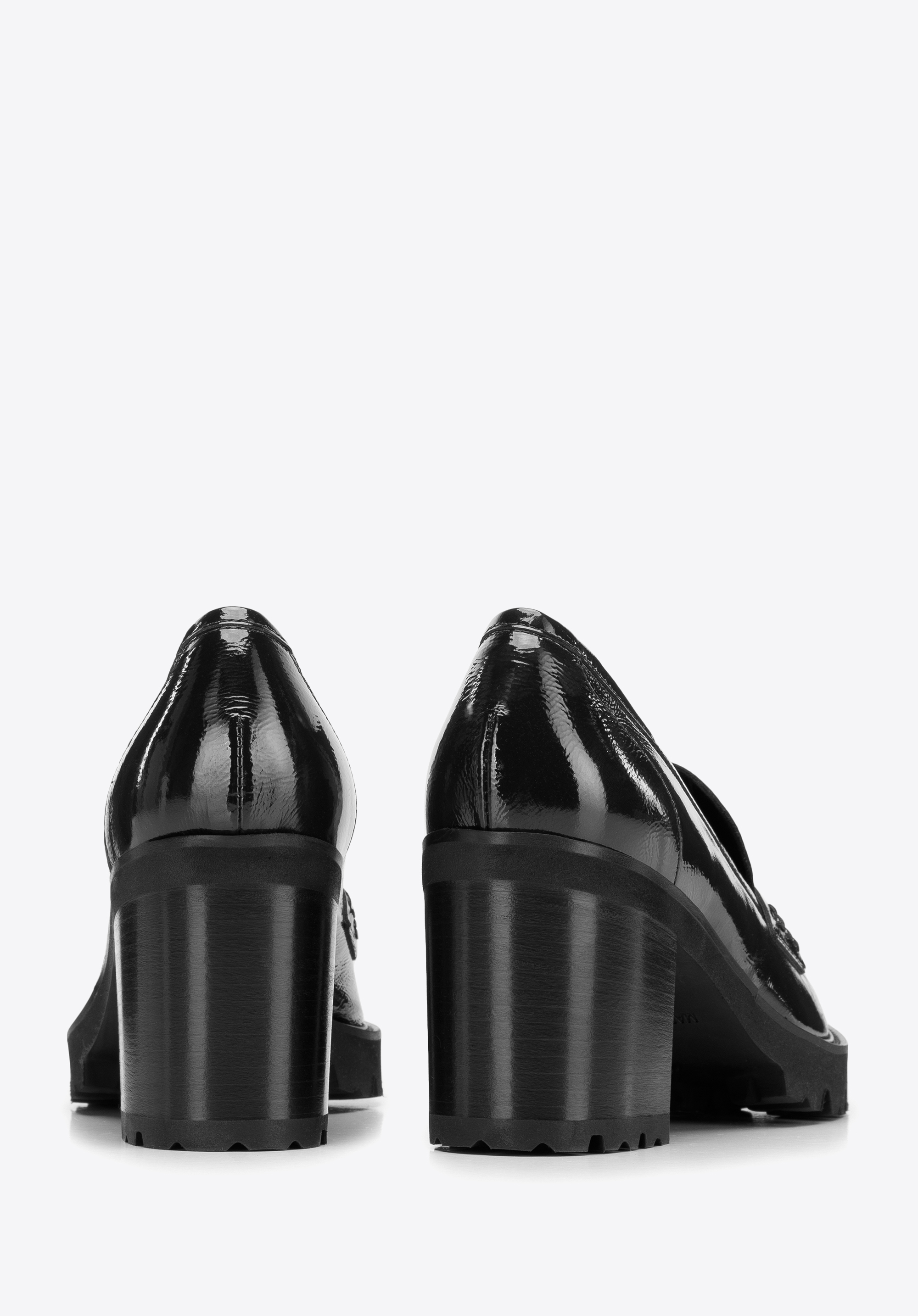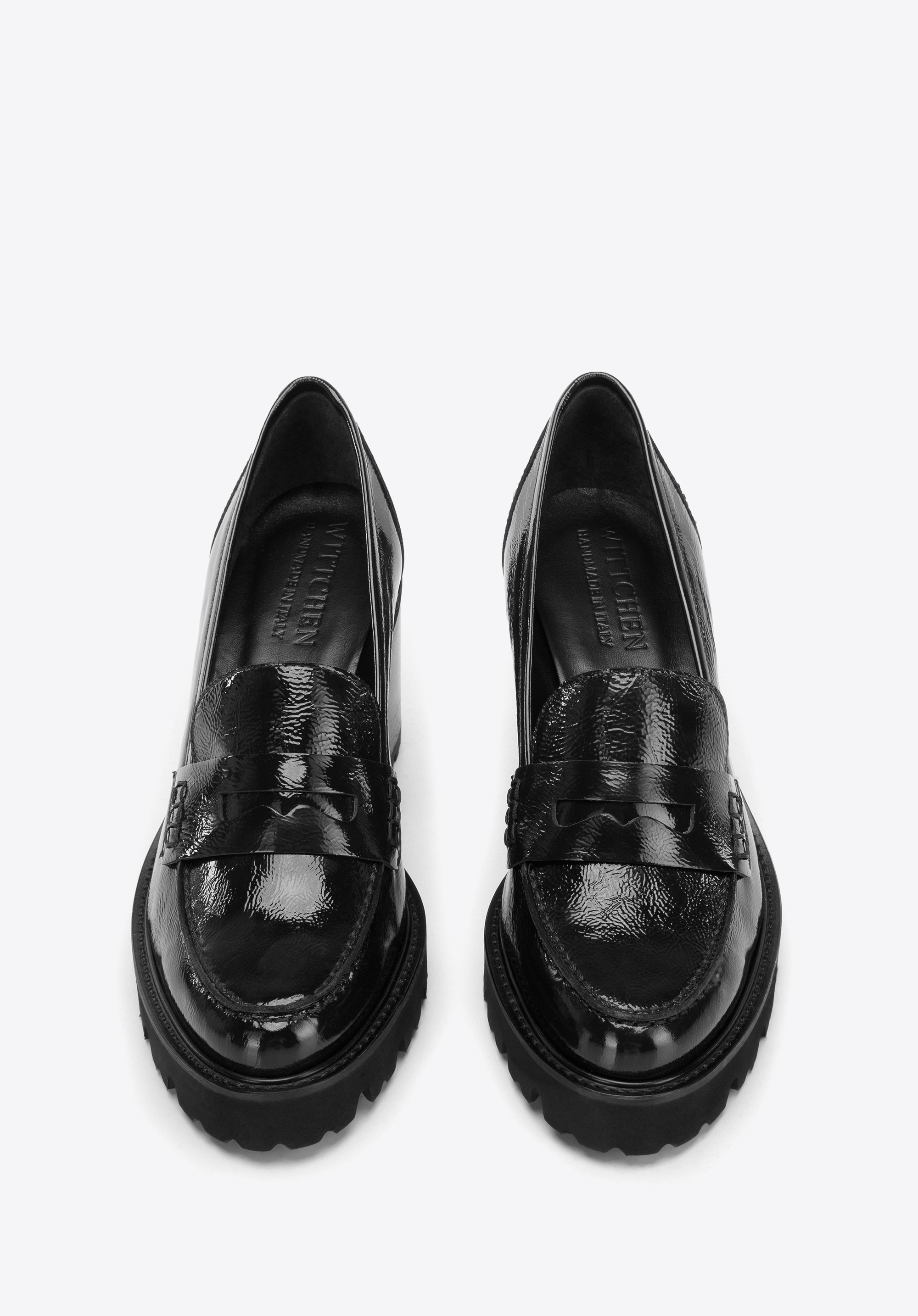 Lodičky z lakovanej kožena platforme sú módnym doplnkom, v ktorom môžete chodiť každý deň.