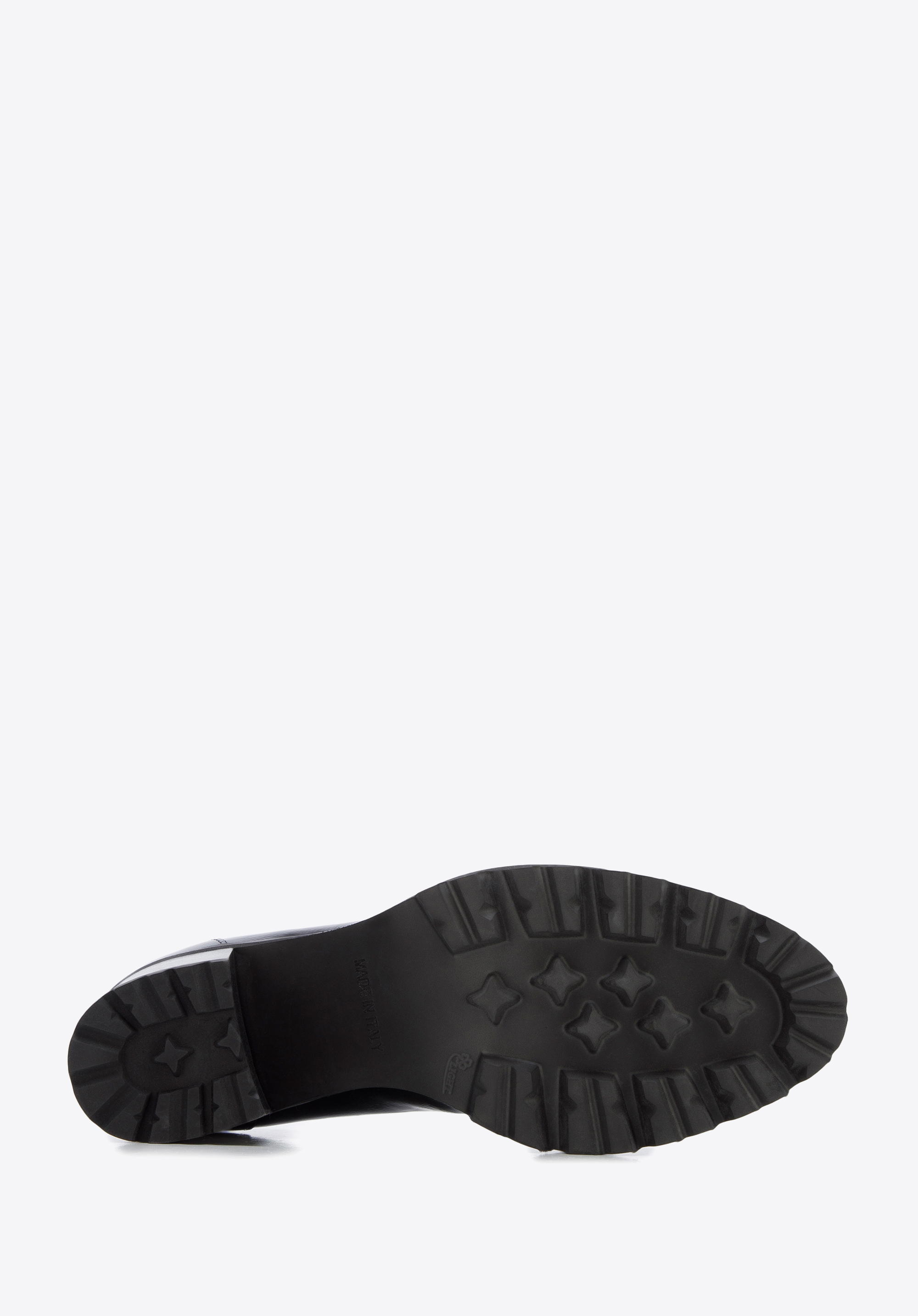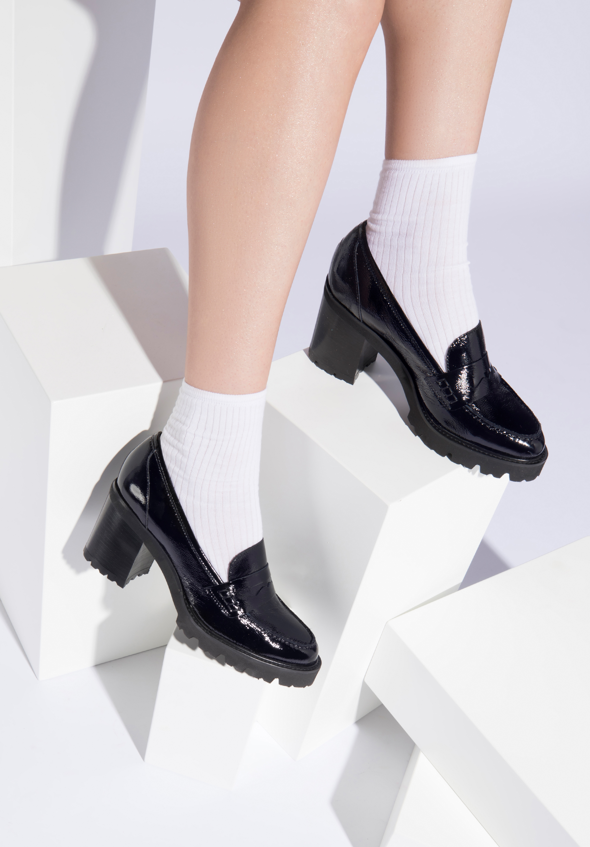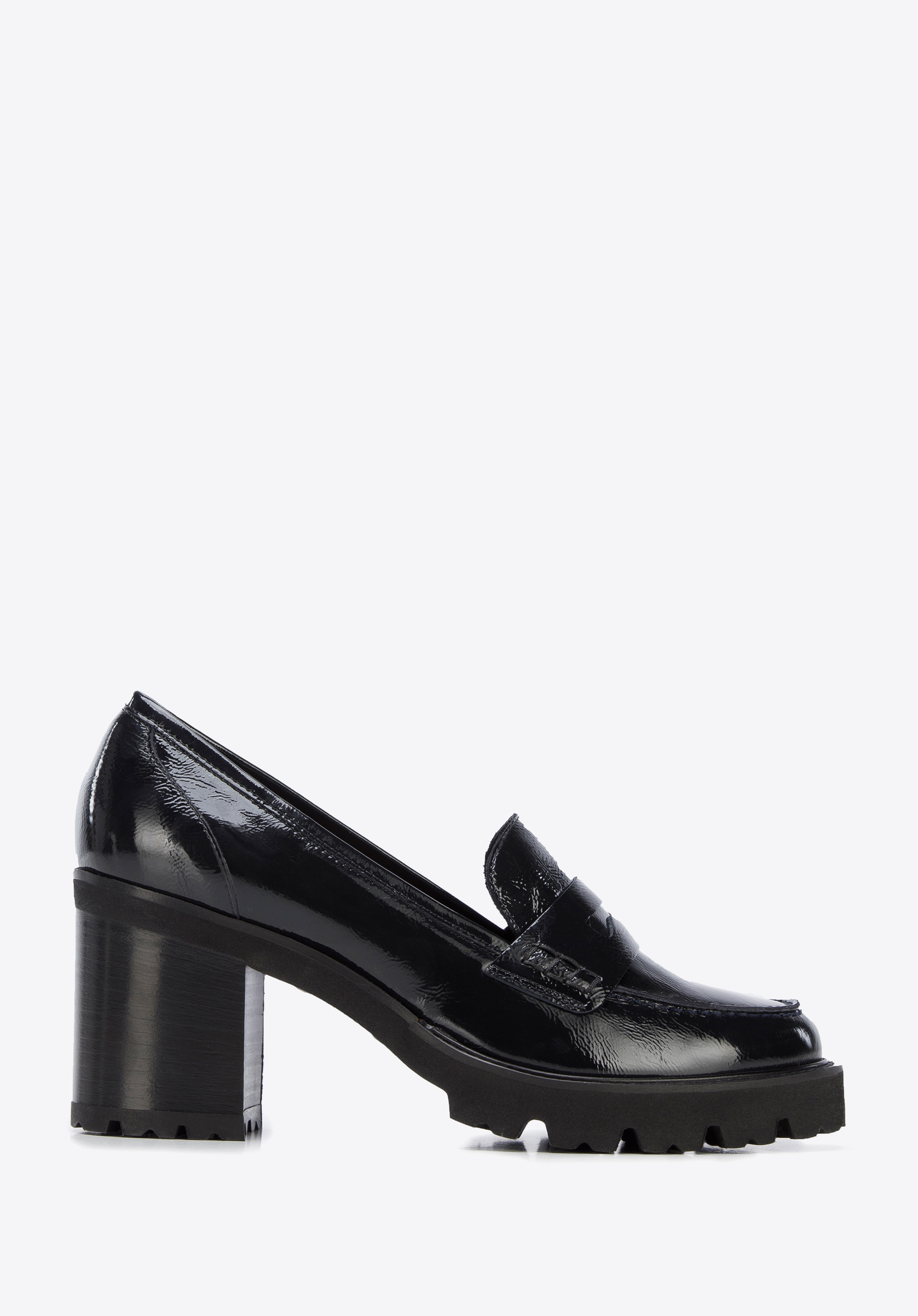 Lodičky z lakovanej kožena platforme sú módnym doplnkom, v ktorom môžete chodiť každý deň.