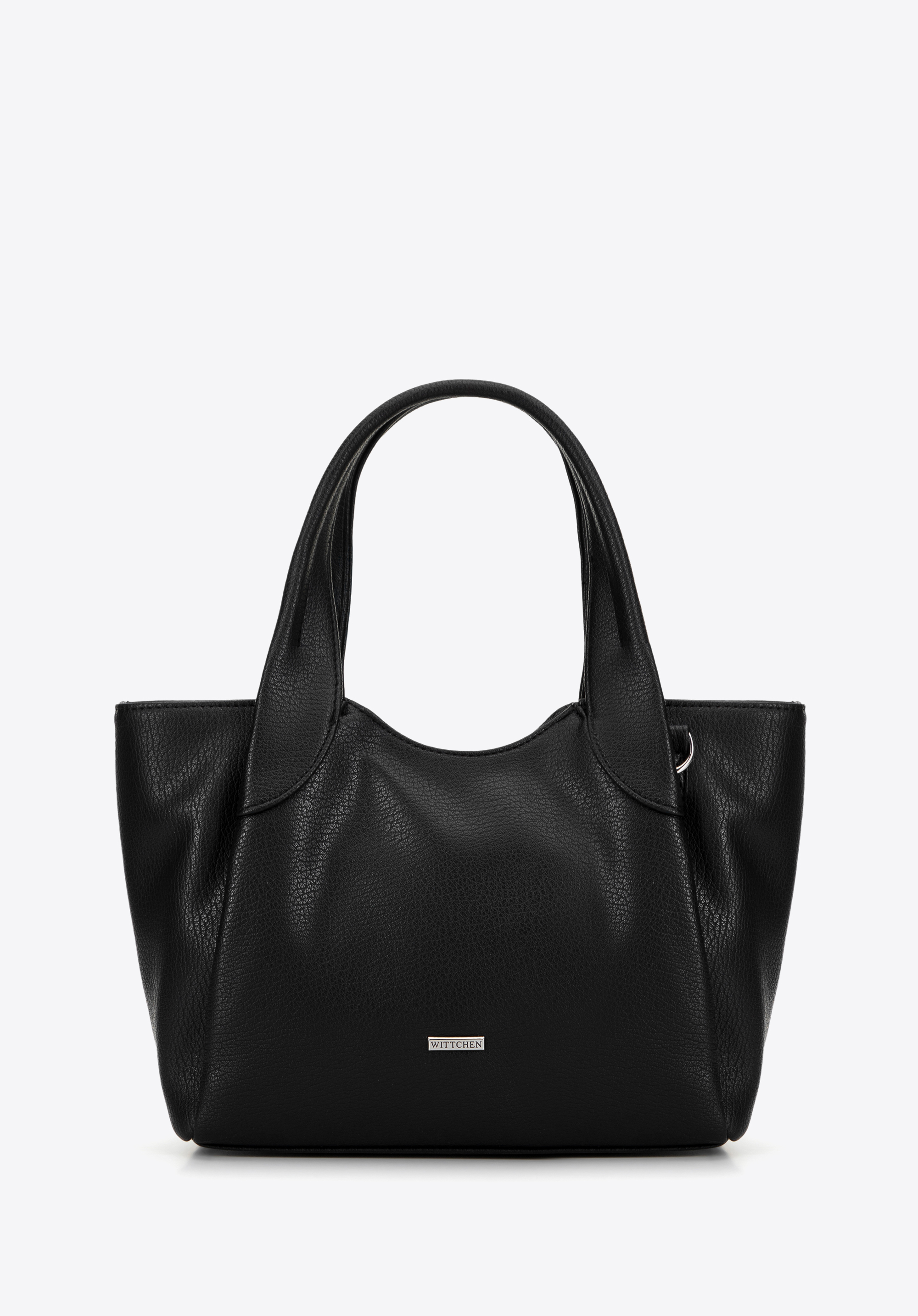 Elegancia uzavretá v malej veľkosti – táto kabelka z umelej kože spája štýl a funkčnosť. Vďaka svojim kompaktným rozmerom je dokonalým doplnkom, ktorý doplní váš každodenný vzhľad a zároveň pojme všetky dôležité veci. Jej klasický dizajn a starostlivé remeselné spracovanie z nej robí kabelku , ktorá sa ľahko prispôsobí rôznym príležitostiam. Dve rúčky a odnímateľný nastaviteľný popruh umožňujú pohodlné nosenie – v ruke aj cez rameno.