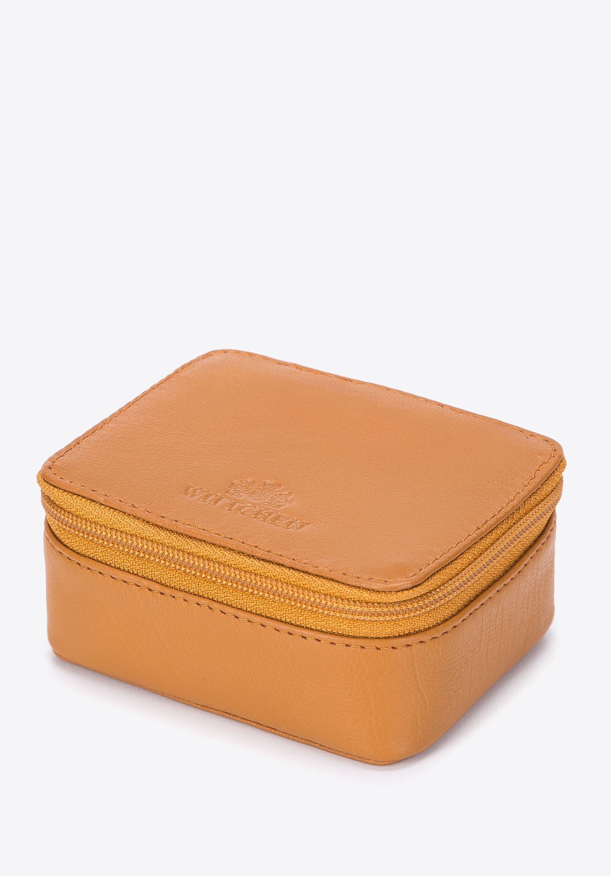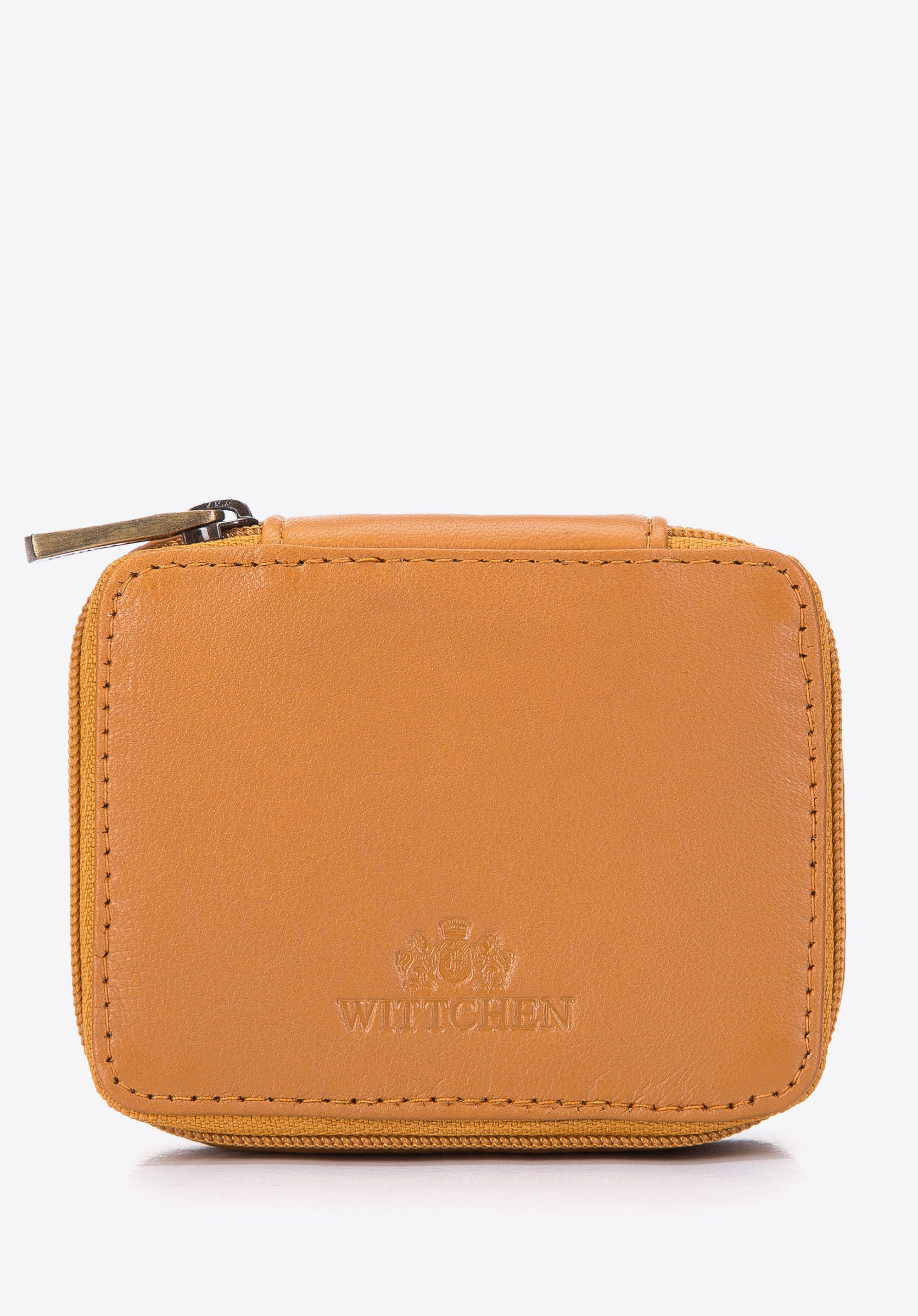 Malá kožená kozmetická taška v škatuľkovom tvare oranžová