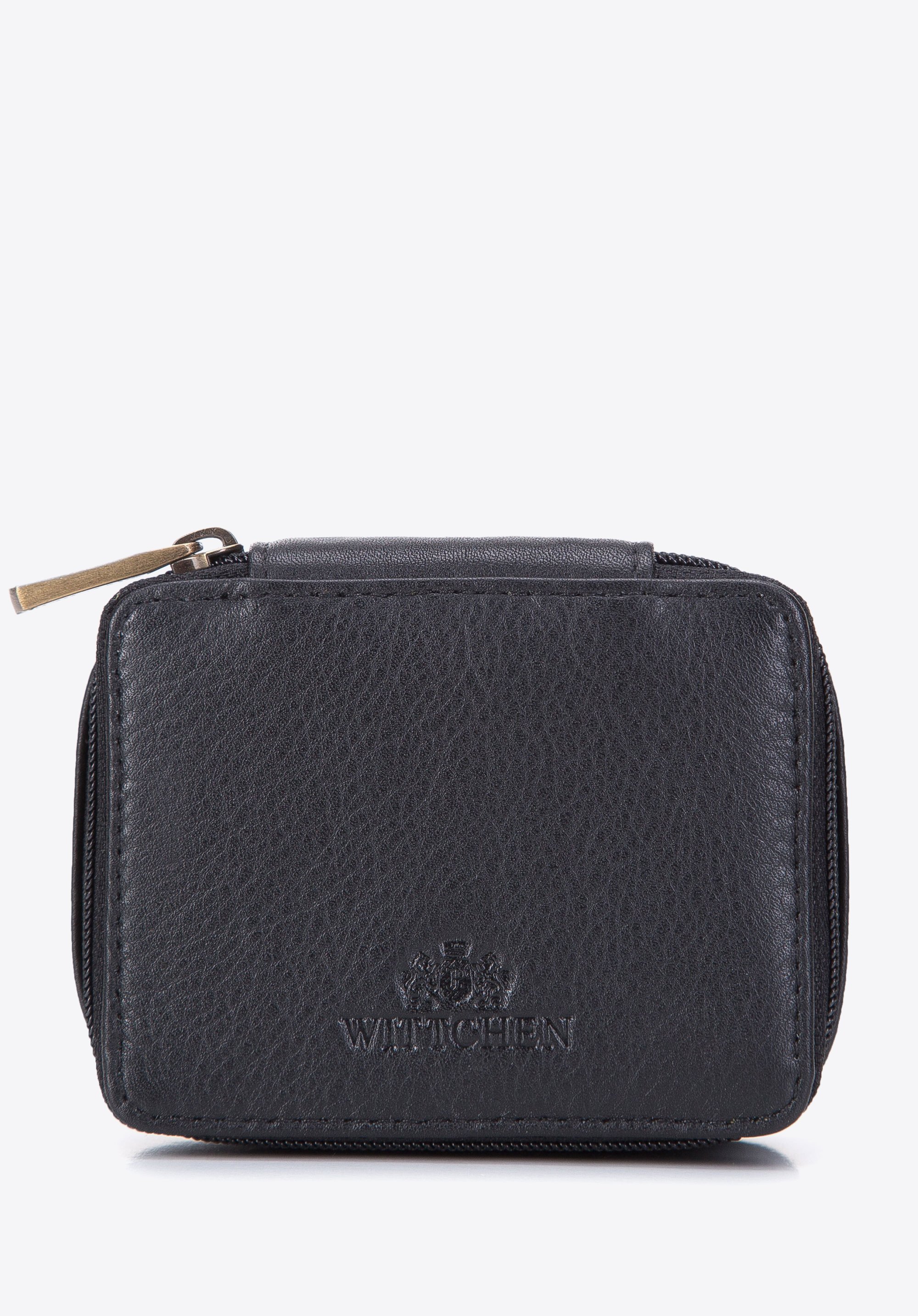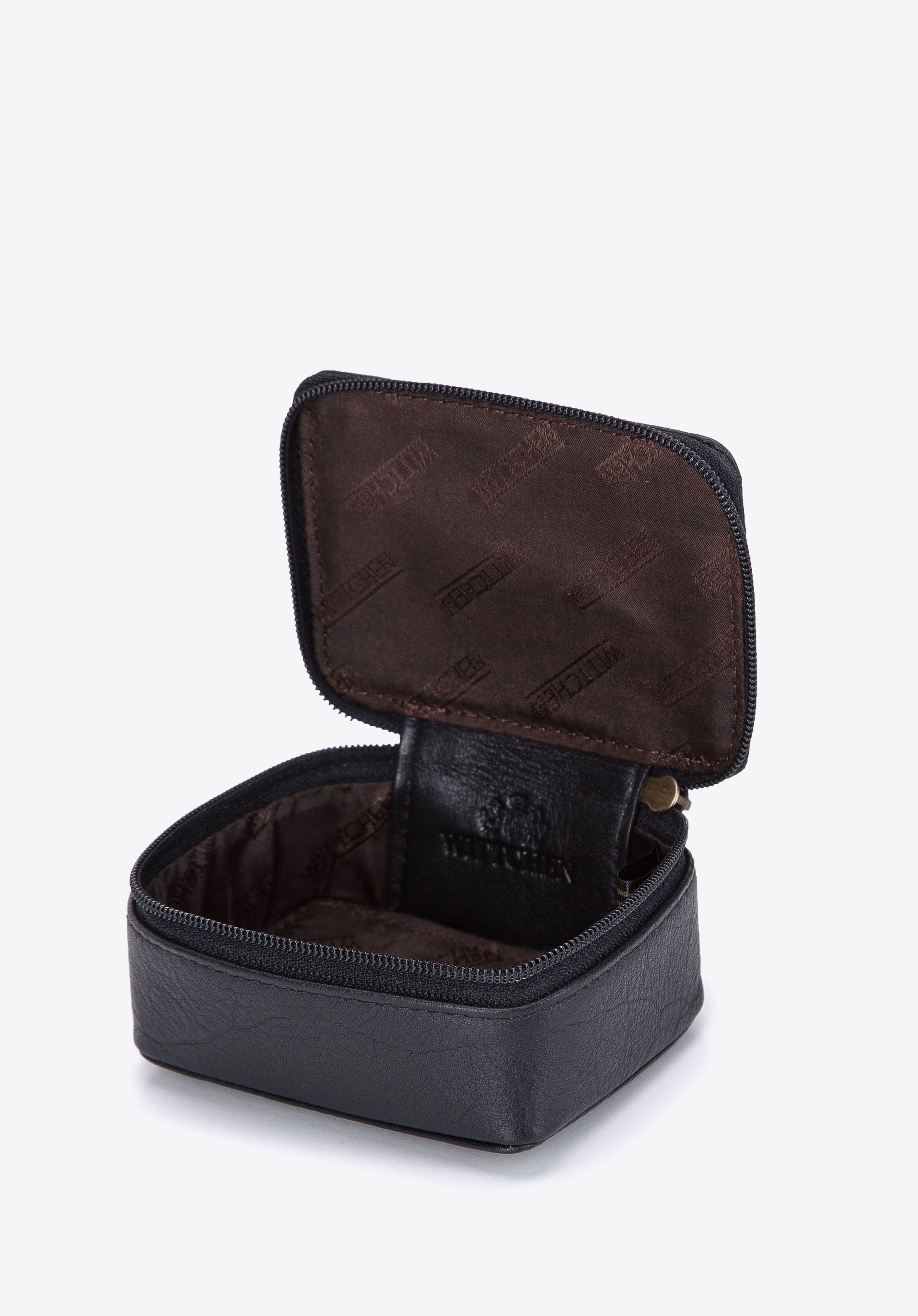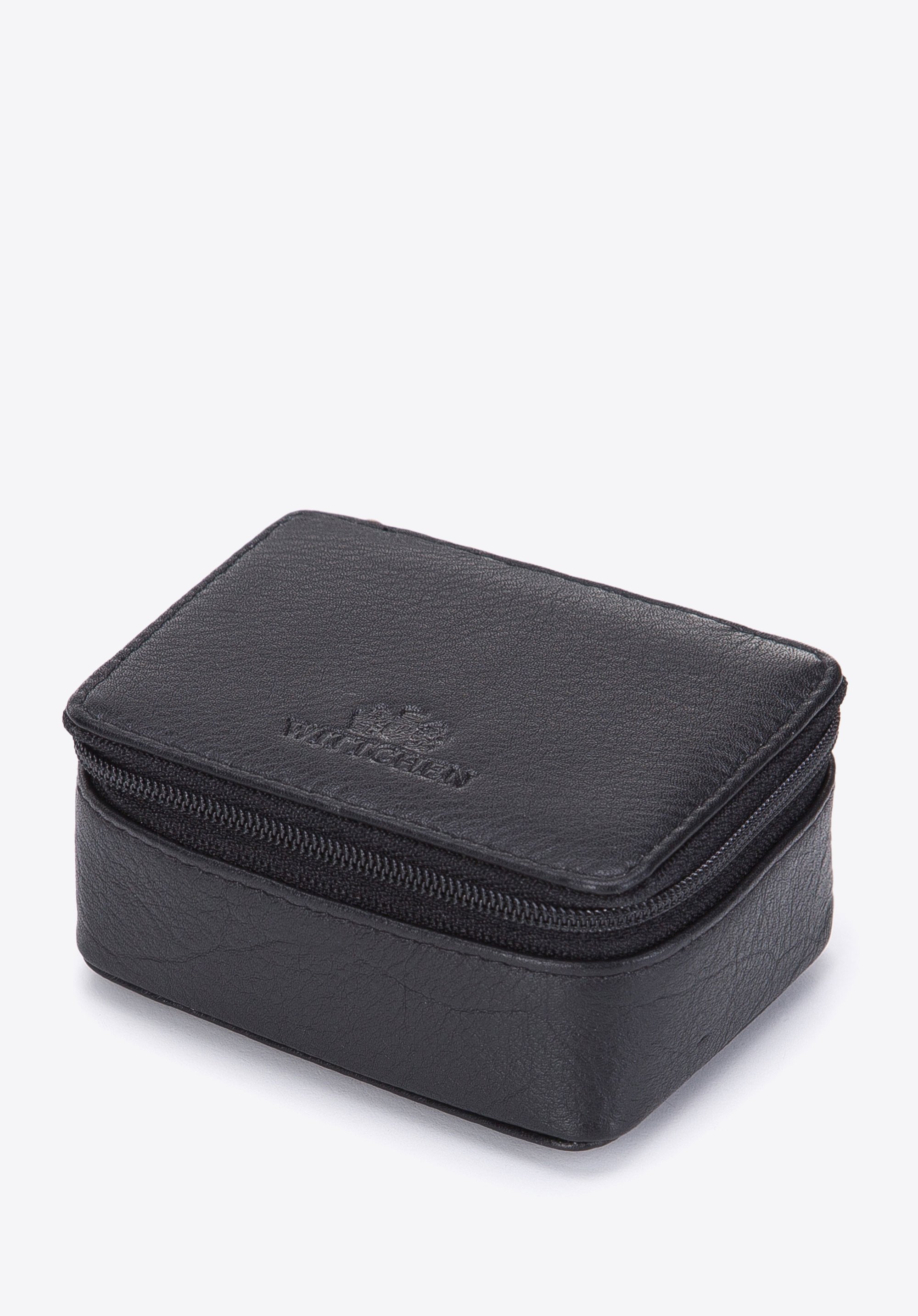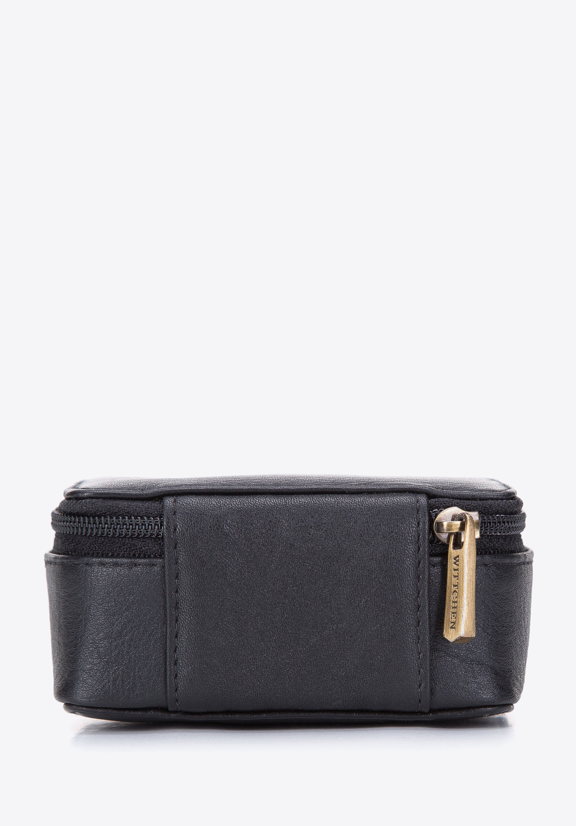 zapínaniu na zips bezpečne uskladní obsah. Môžete si ju vziať na cestu alebo ho schovať do príručnej tašky buď batohu. Malá kožená kozmetická taška so škatuľkovým tvarom je nadčasovým doplnkom na mnoho sezón.