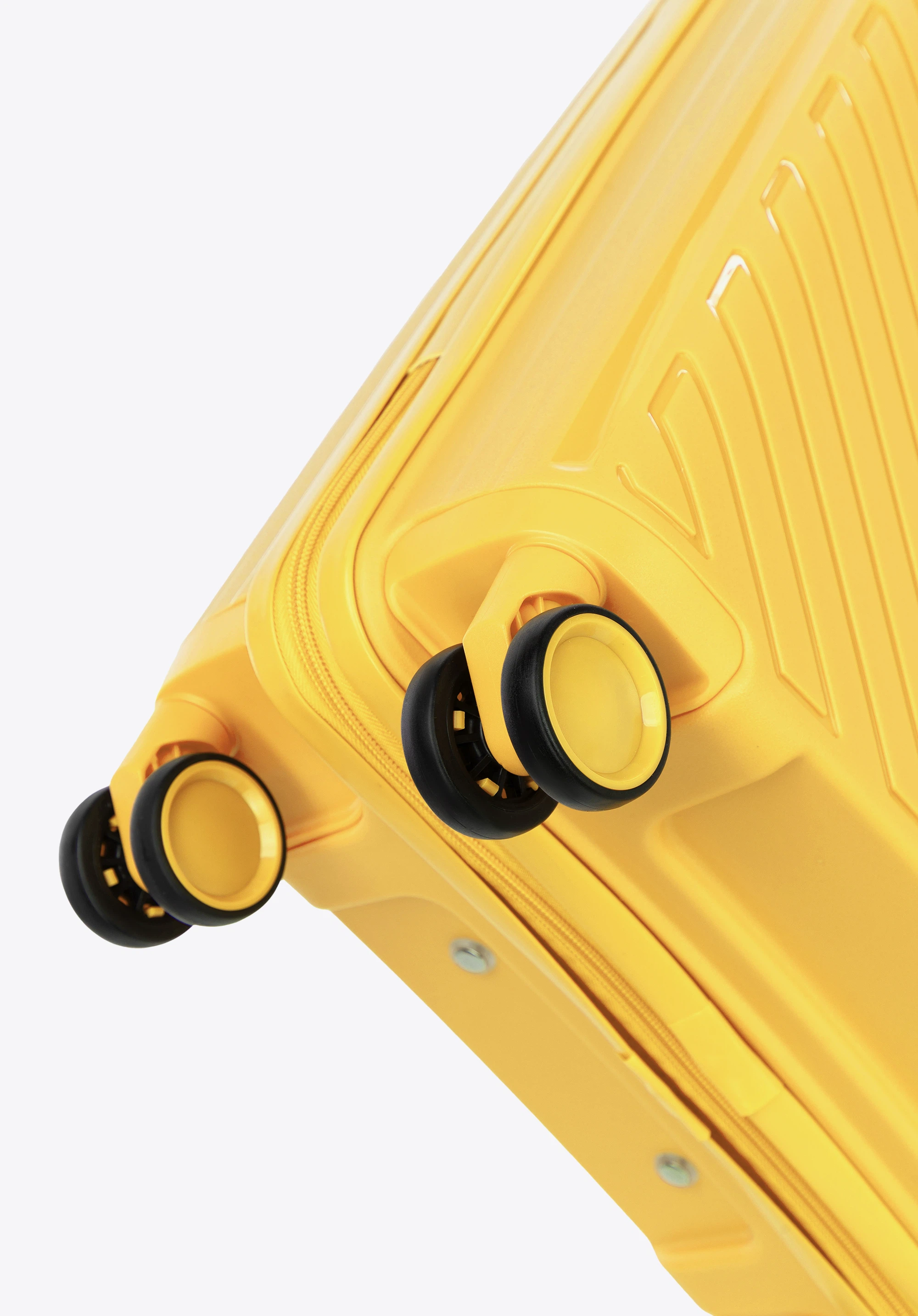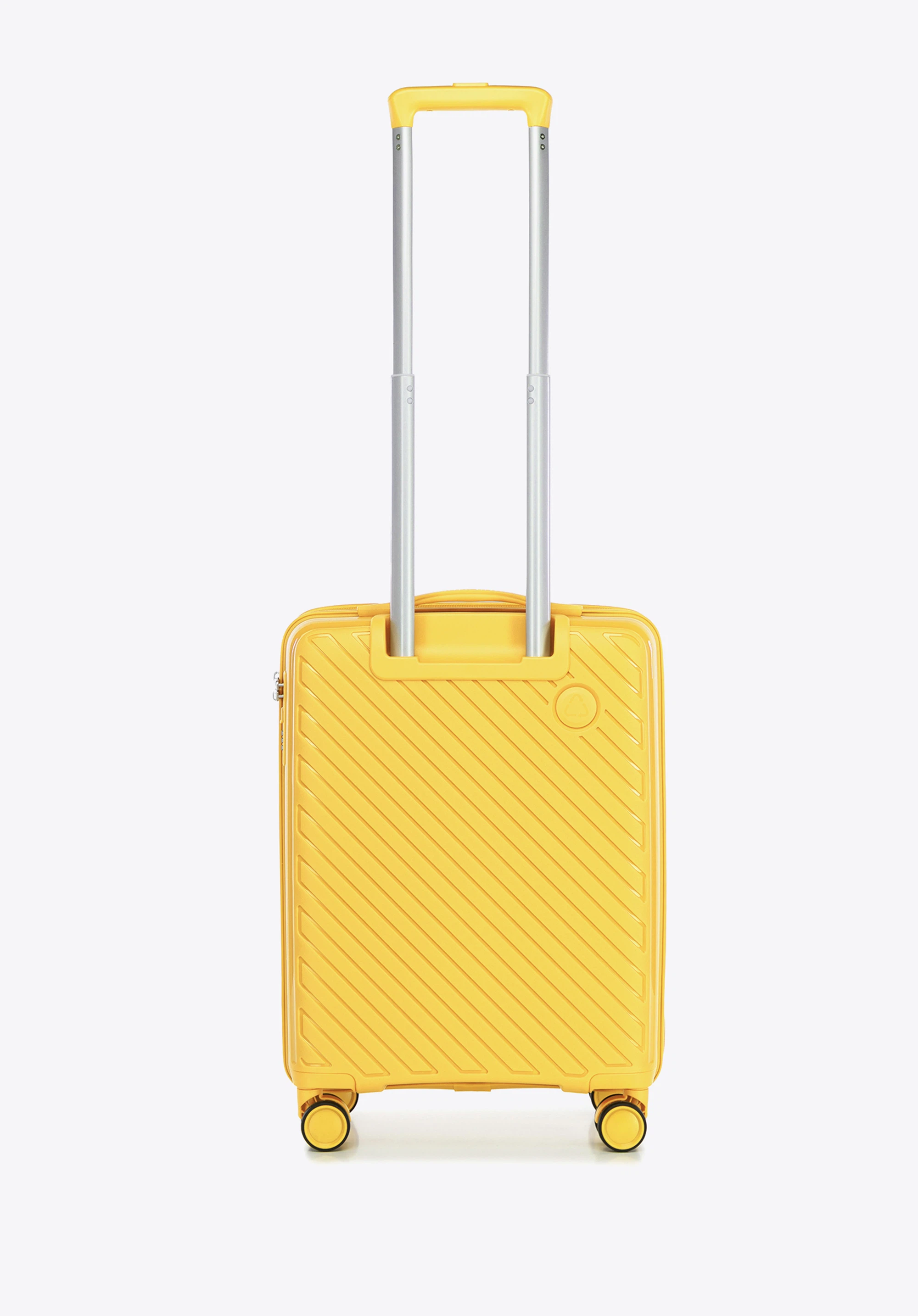 Malý kufor z polypropylénu s lisovanými pruhmi, žltý