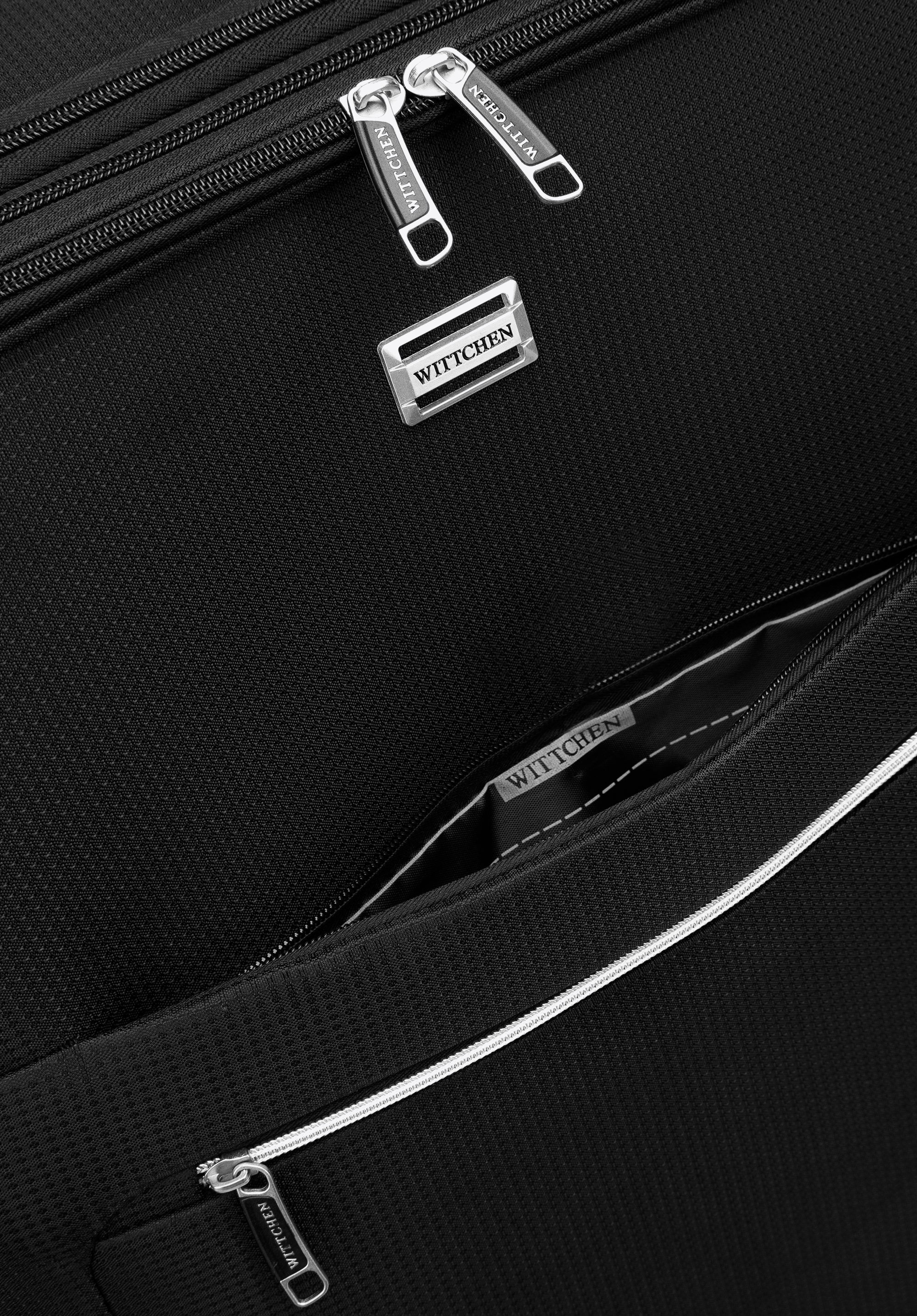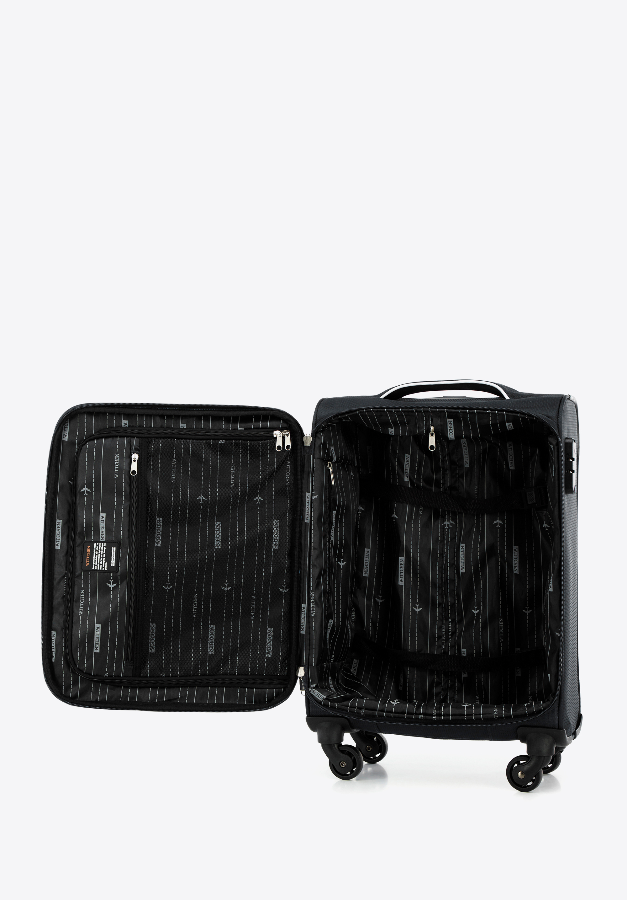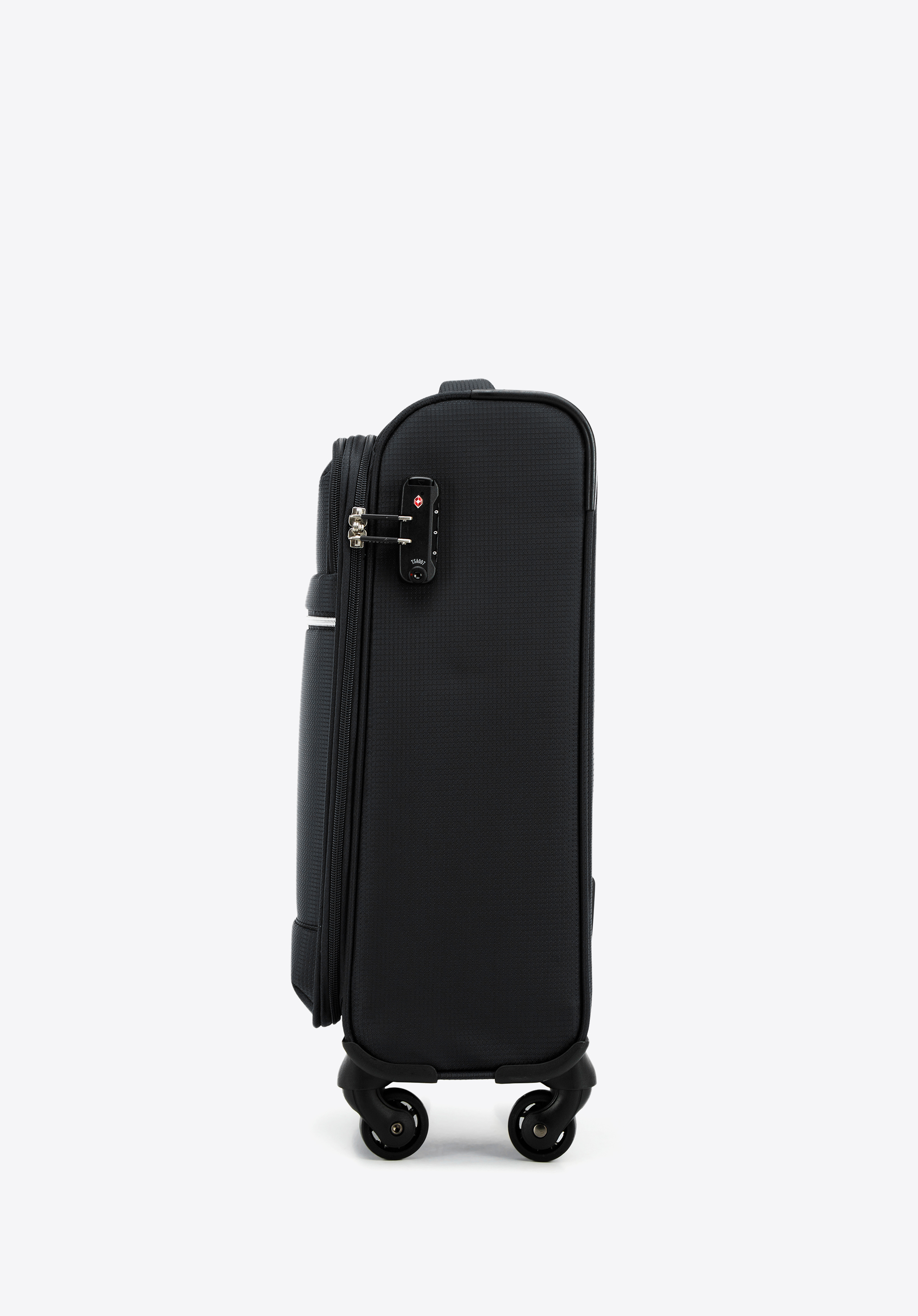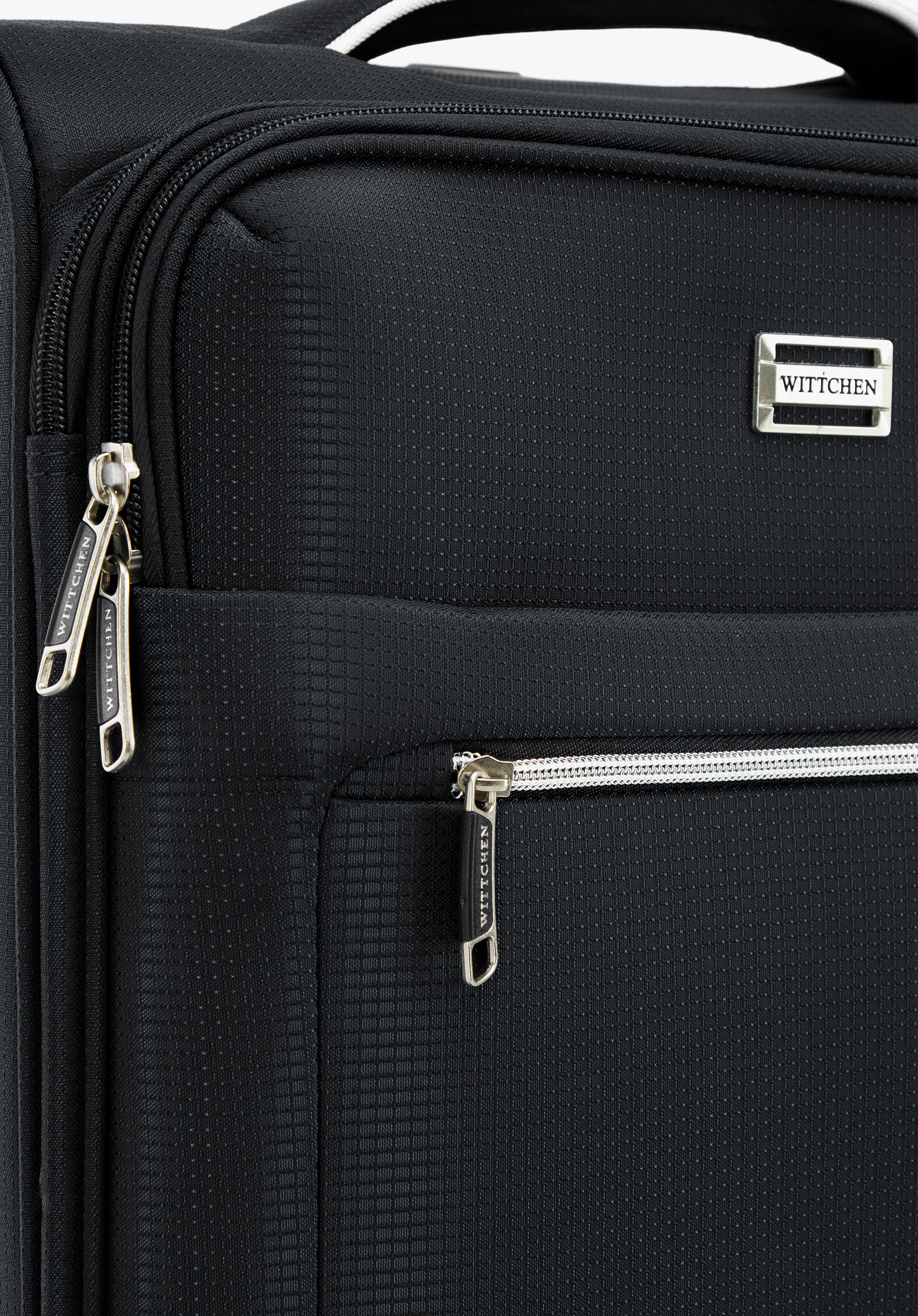 štyrom jednoduchým kolieskam sa bude pohodlne riadiť. Malý mäkký kufor s lesklým zipsom vpredu je skvelou voľbou na víkendový výlet alebo služobnú cestu.