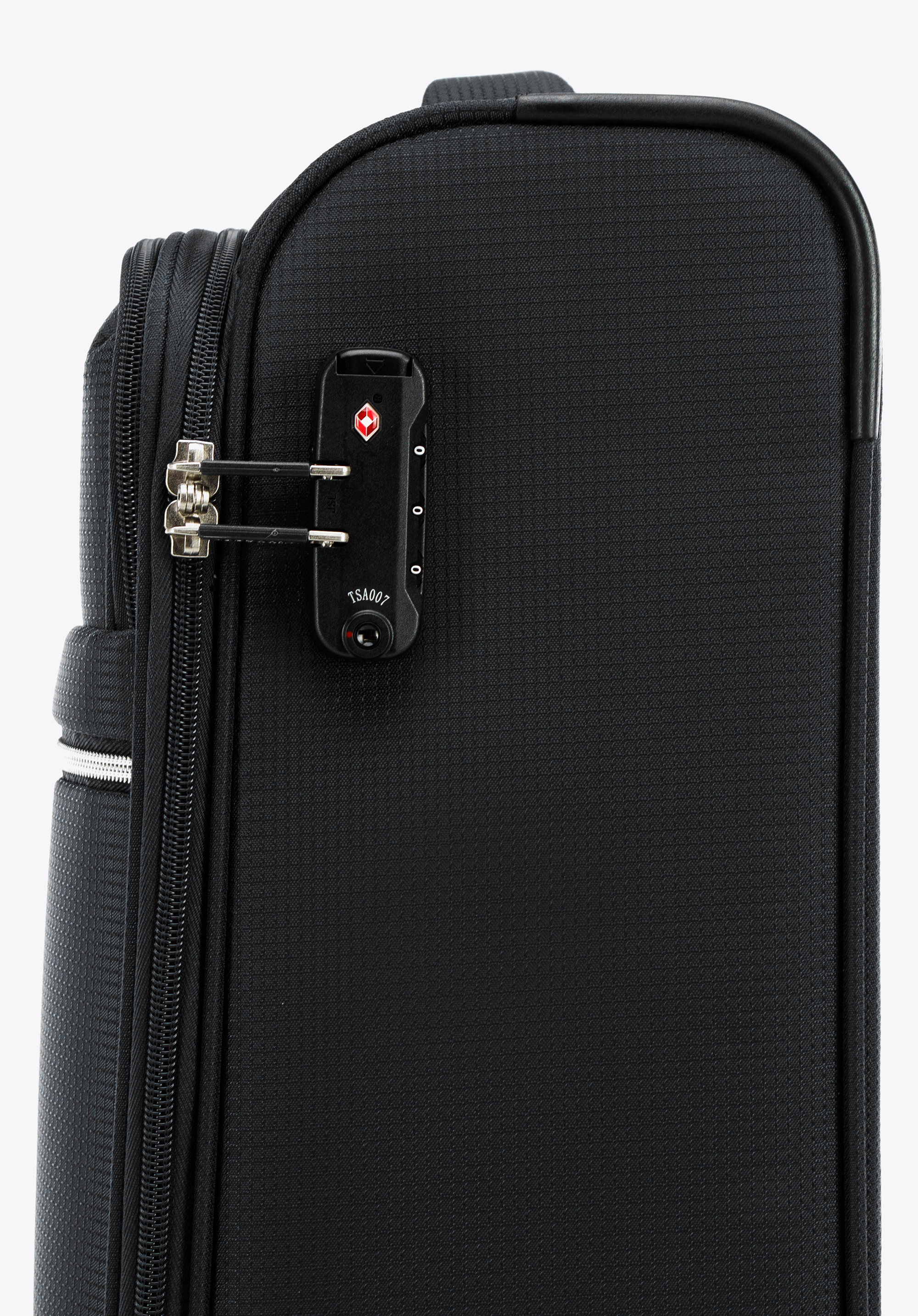 - zámok s TSA kódom – veľmi užitočný v prípade prehľadávania batožiny colnými úradmi – zaručuje neinvazívne otvorenie kufra a jeho opätovné zapečatenie, bez poškodenia zámku;