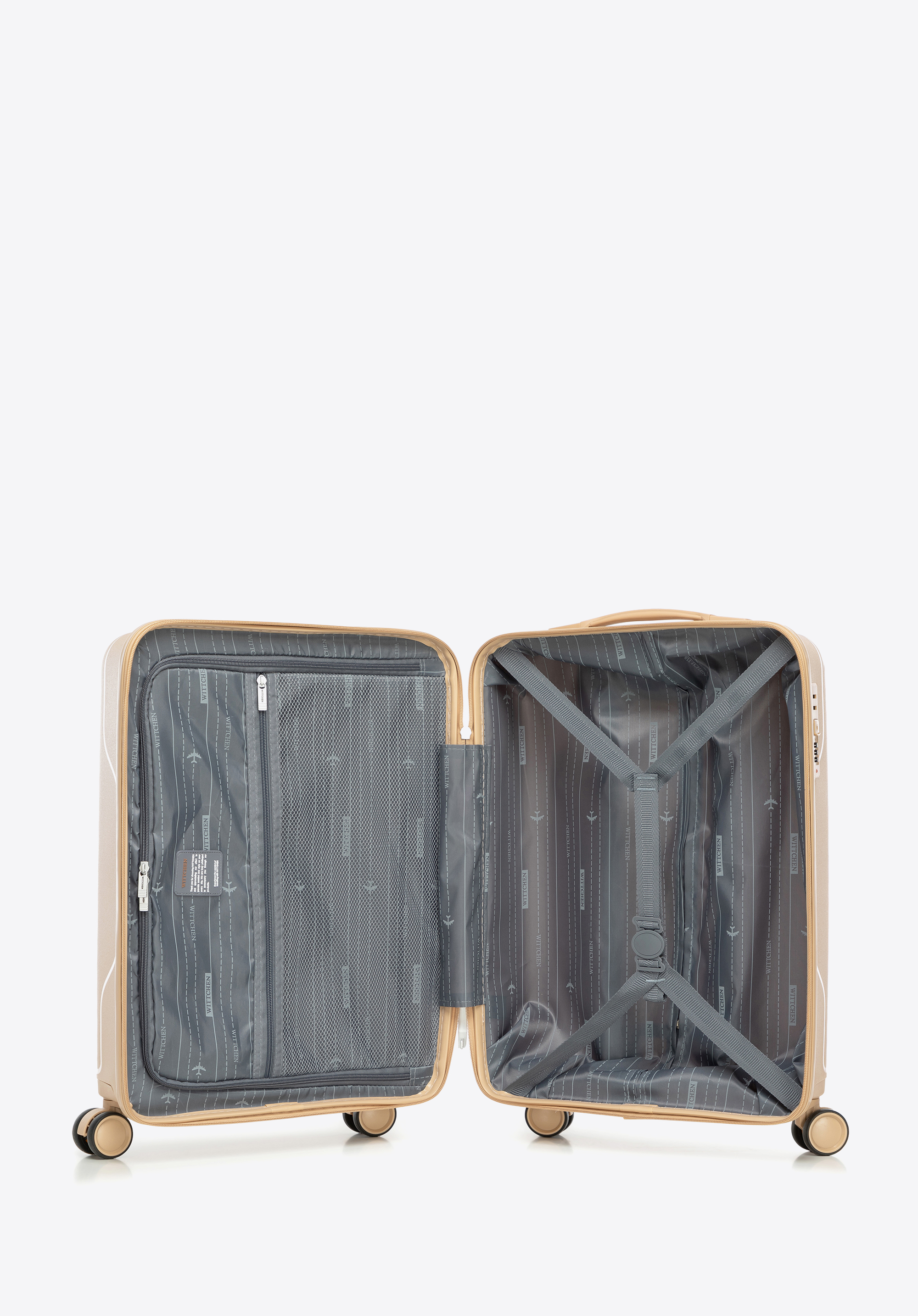 Malý polypropylénový kufor s diagonálnym vzorom - béžový