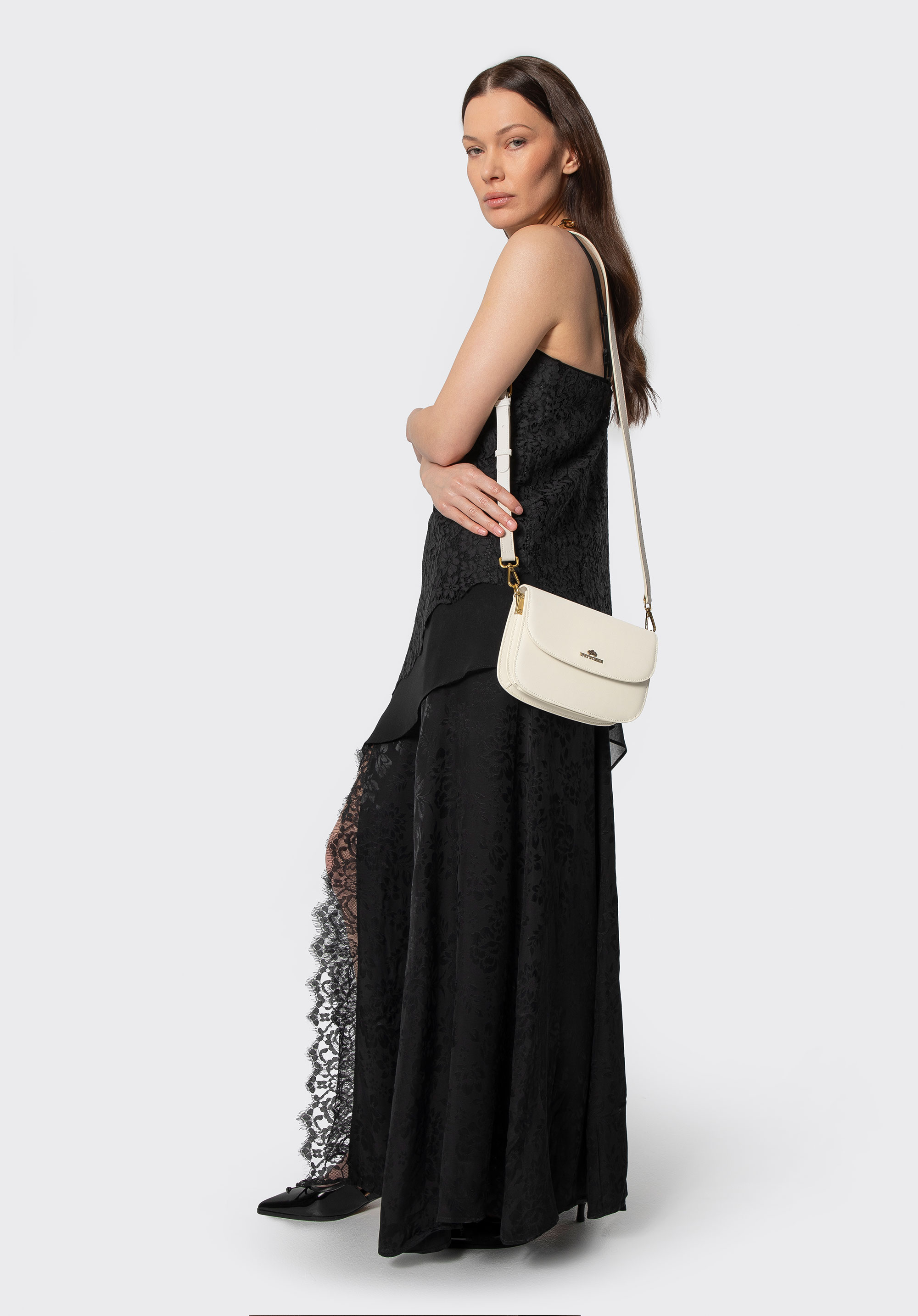 Elegantná crossbody kabelka so zaoblenou chlopňou a odnímateľným popruhom