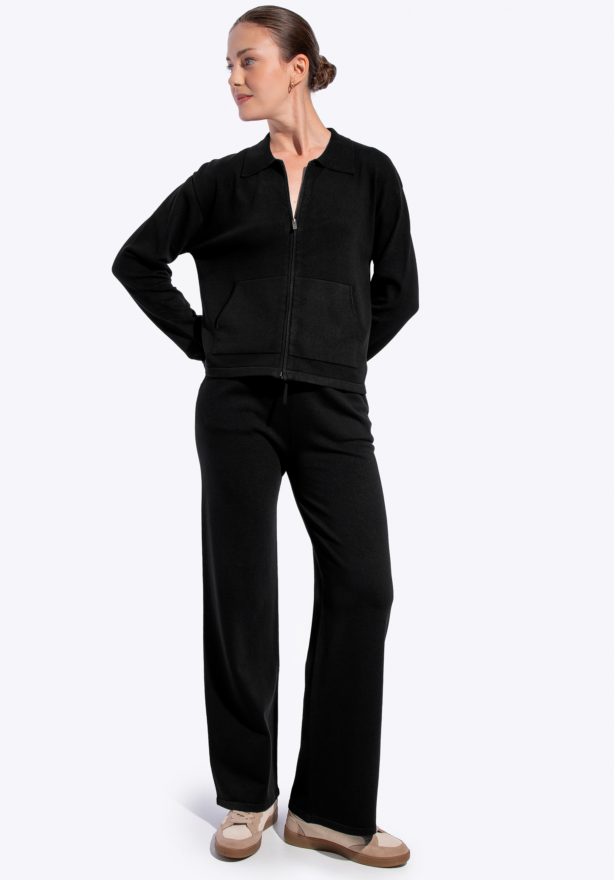 Náš tip: Noste ich s vaším obľúbeným tričkom, svetrom alebo ľahkou mikinou a vytvorte vzhľad, ktorý vyžaruje ležérne pohodlie a mestskú ľahkosť – ideálne na každodenné nosenie, stretnutia s priateľmi alebo víkendové výlety v jesenno-zimnom období. Pre zladený outfit ich skombinujte s ležérnou pletenou mikinou pre extra teplo a štýl v chladných dňoch.