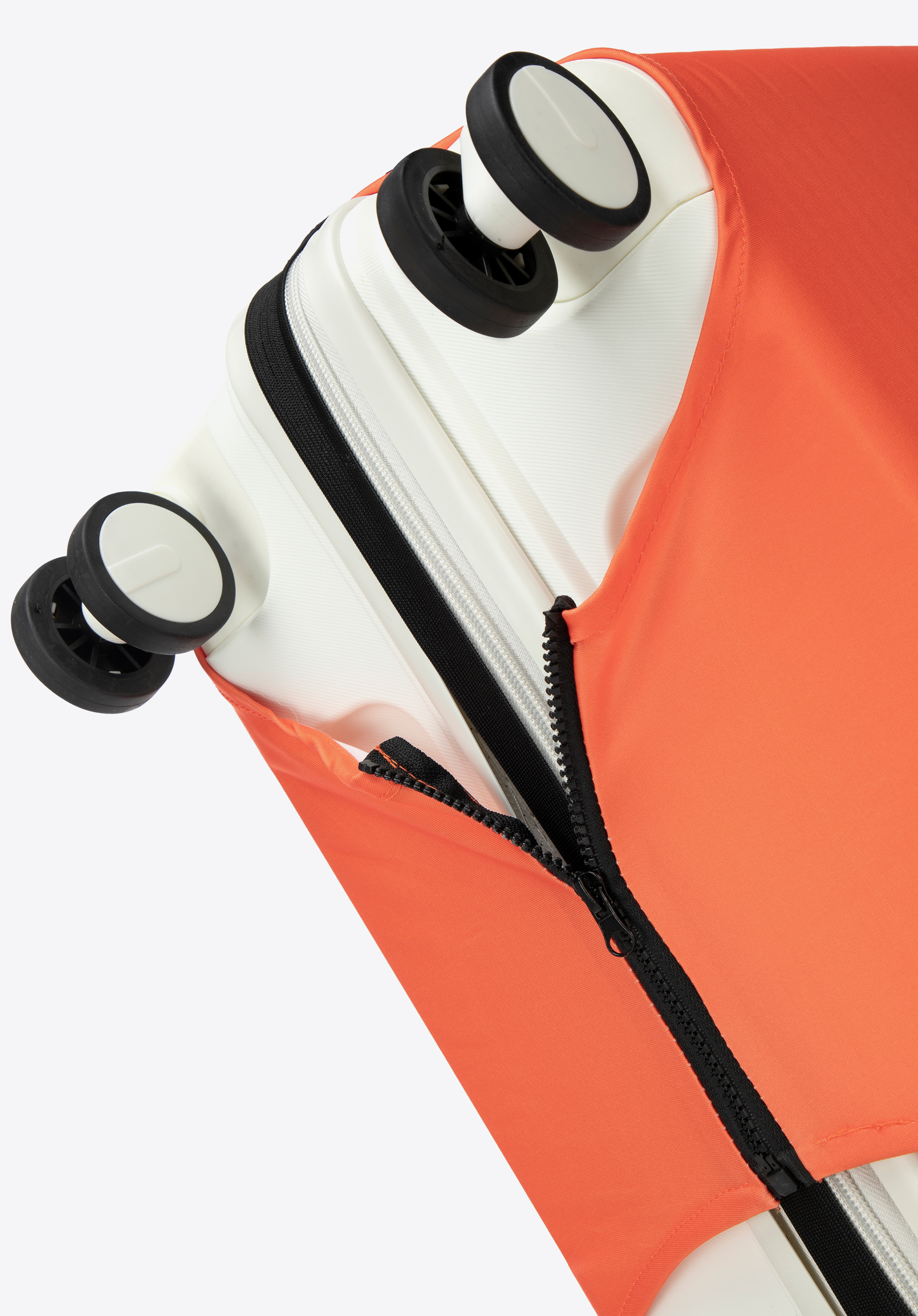 Postarajte sa o váš stredne veľký kufor s naším elegantným obalom. Kombinácia odolného polyesteru a pružného spandexu robí obal perfektne priľnavým k batožine a chráni ju pred poškriabaním a znečistením. Vrchná časť obalu má pohodlný otvor pre teleskopickú rukoväť, čo uľahčuje prenášanie kufra, zatiaľ čo logo WITTCHEN dodáva eleganciu a svedčí o vysokej kvalite výrobku. Praktický zips na spodnej strane umožňuje rýchle nasadenie a vyzlečenie obalu, zatiaľ čo vnútorný elastický popruh zabezpečuje, že poťah zostane na svojom mieste. Je nepostrádateľným doplnkom pre každého cestujúceho, ktorý chce dodať svojmu kufru štýl a uľahčiť jeho identifikáciu na letisku.