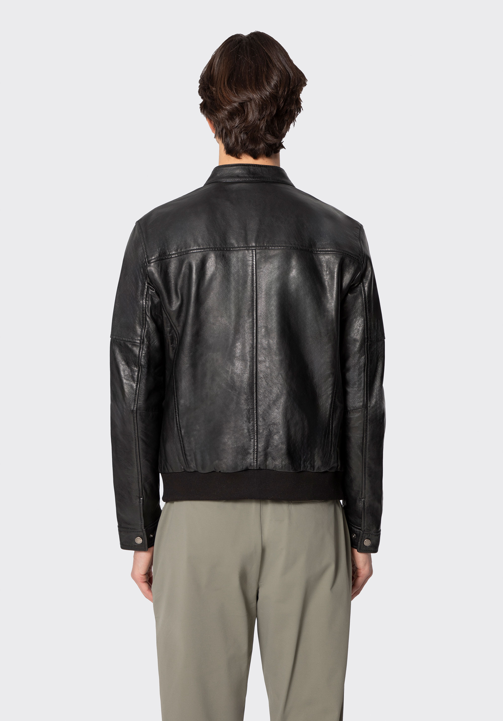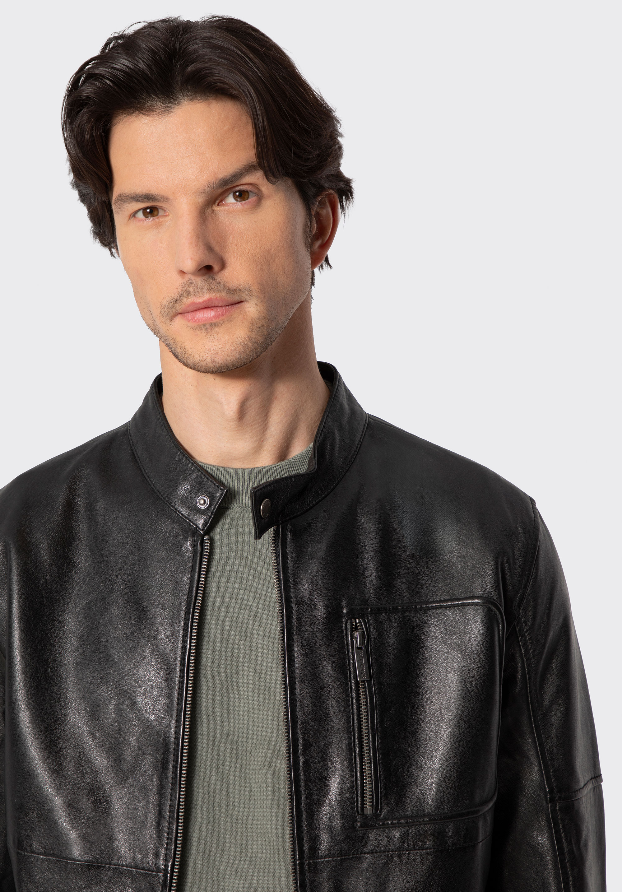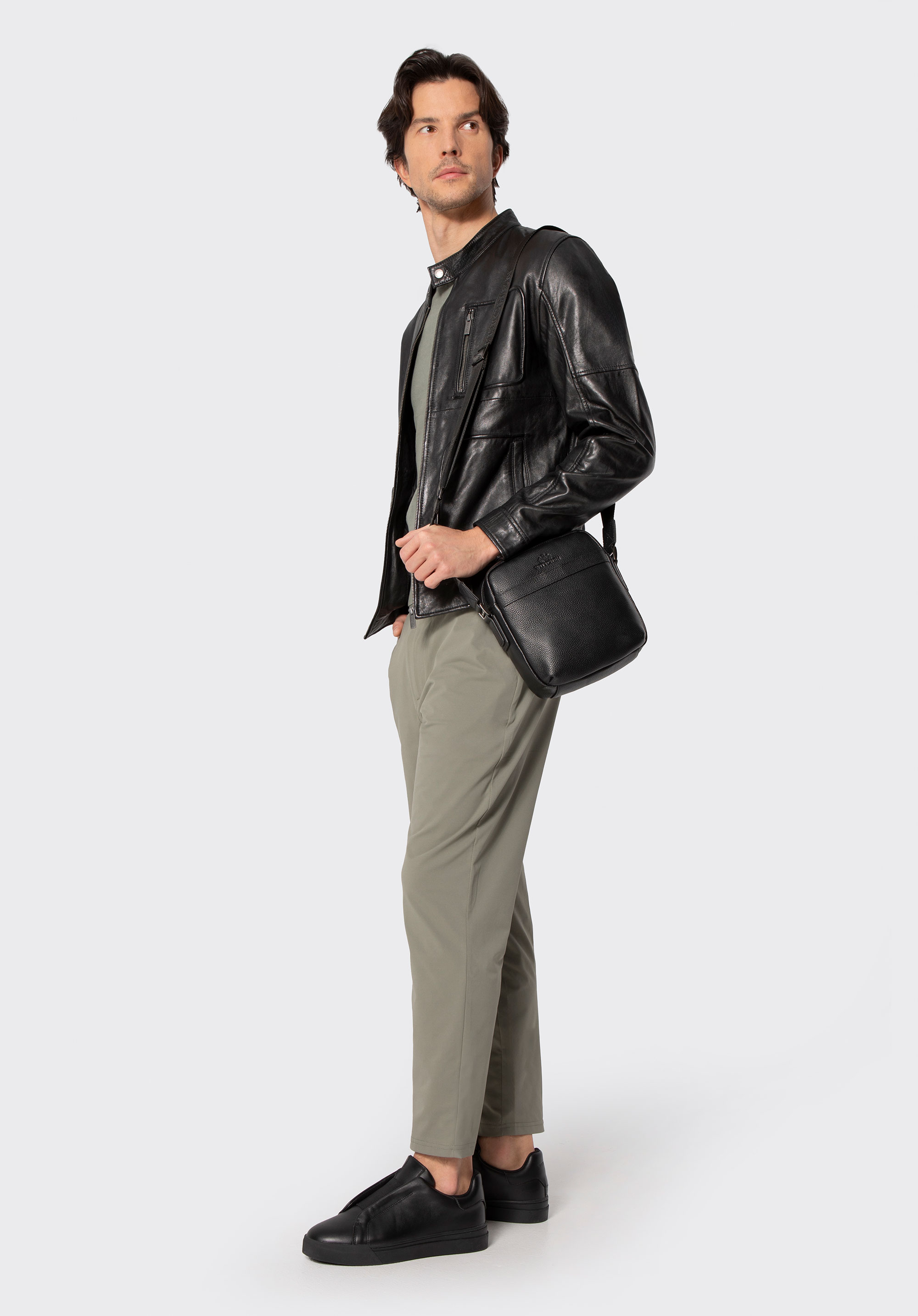 Klasický kúsok pánskeho šatníka v modernom prevedení. Táto kožená bunda vyrobená z prírodnej ovčej kože kombinuje prémiové materiály s dokonalým remeselným spracovaním. Mäkká, ale odolná koža zaisťuje nielen pohodlie, ale vytvára aj jedinečný vzhľad, ktorý časom získava charakter. Kovové detaily – logo značky na boku a značkové zipsy – zvýrazňujú exkluzivitu tohto dizajnu, zatiaľ čo elastický lem zaručuje dokonalé padnutie.