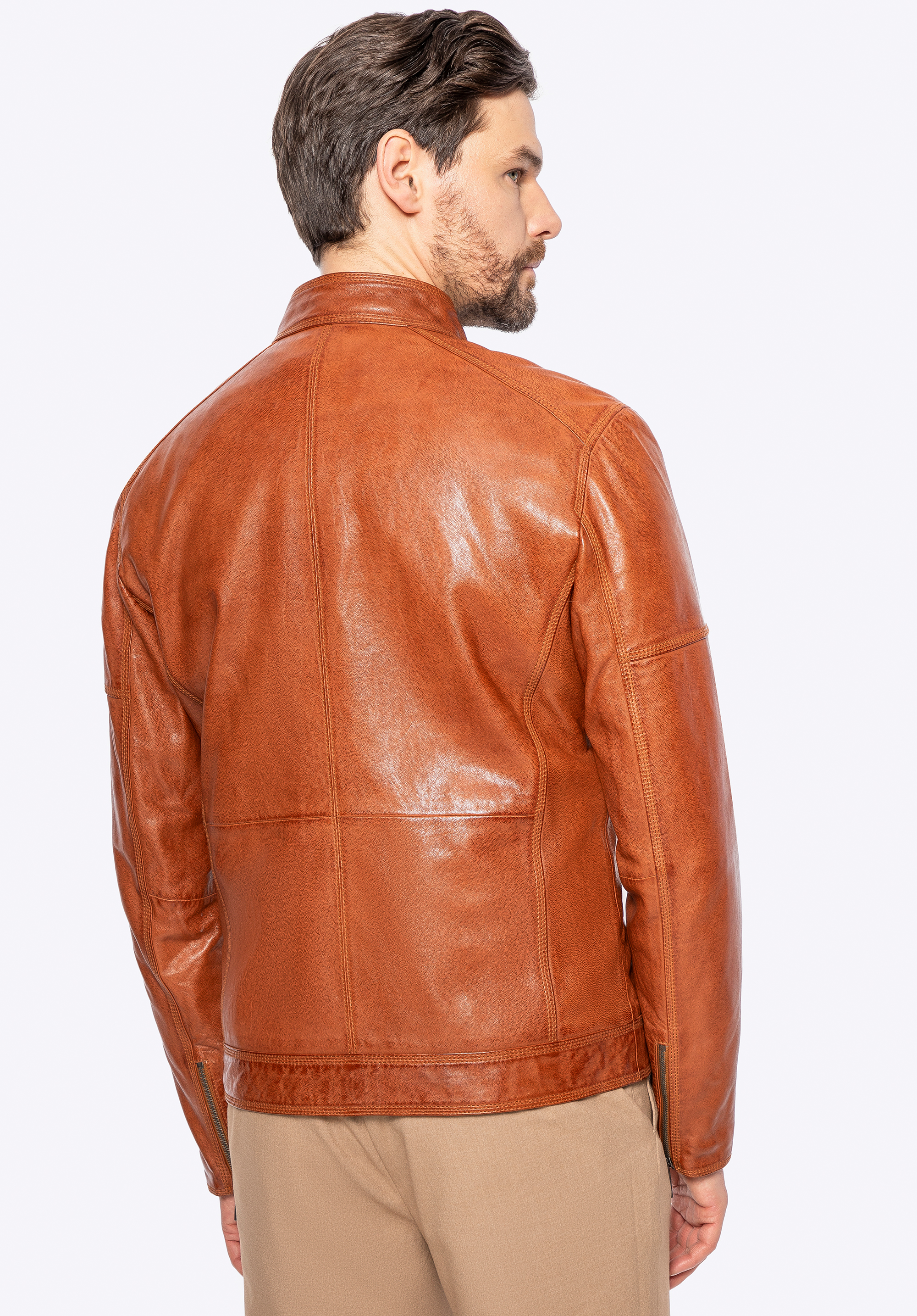 Pánska kožená motorkárska bunda Farba: svetlohnedá