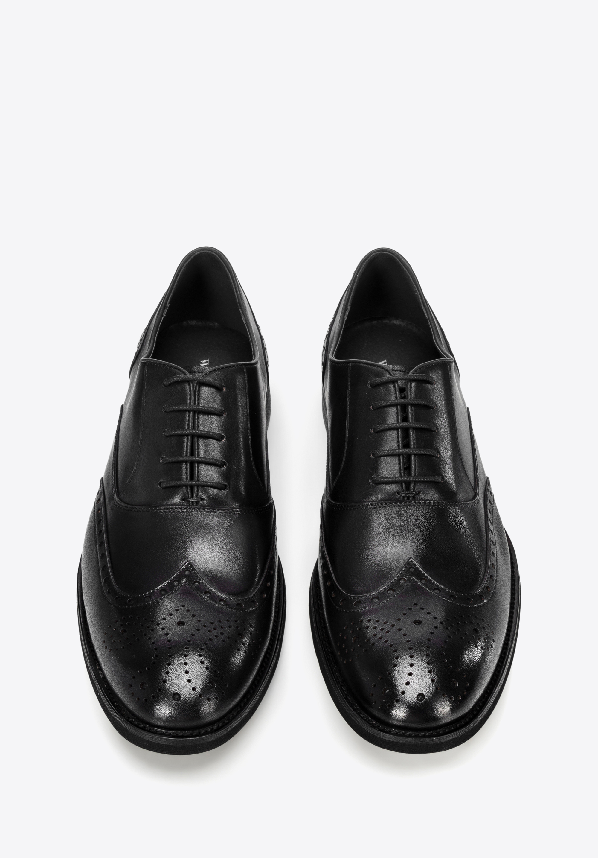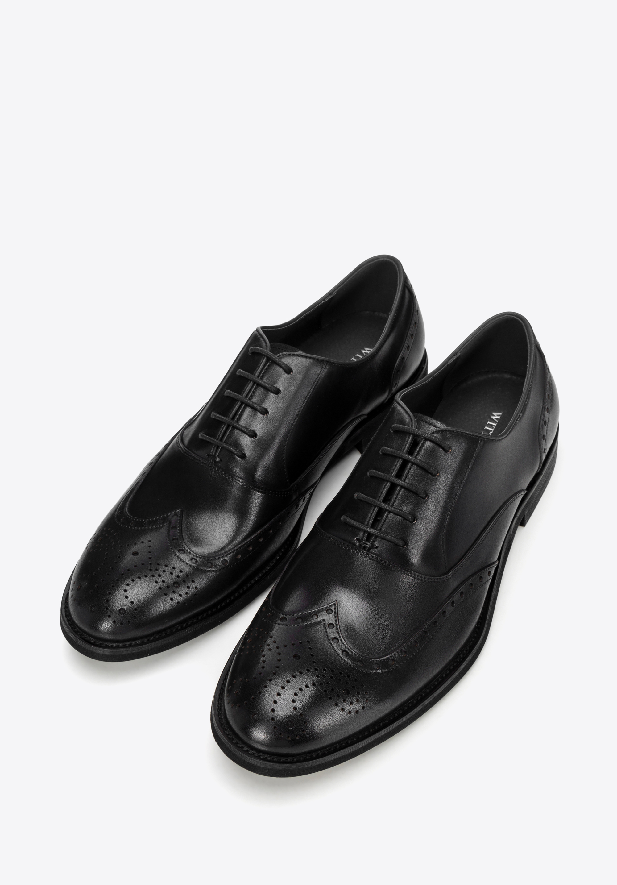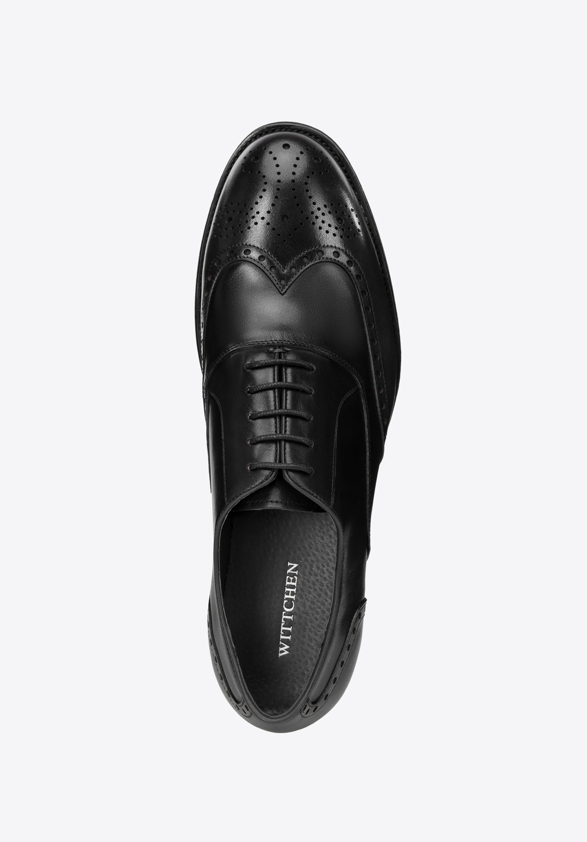 Objavte nadčasový štýl a precíznosť remeselného spracovania v luxusných pánskych topánkach. Tieto pánske topánky vyrobené z najkvalitnejšej hovädzej kože zaujmú svojim sofistikovaným vzhľadom, odolnosťou a zmyslom pre detail. Charakteristické uzavreté šnurovanie zaisťuje dokonalé uchytenie, zatiaľ čo bohatá perforácia po celom povrchu dodáva ľahký pocit a rafinovaný charakter. Krídlová špička v mandľovom tvare dodáva topánkam štíhly, elegantný tvar a zvýrazňuje ich exkluzívny vzhľad.