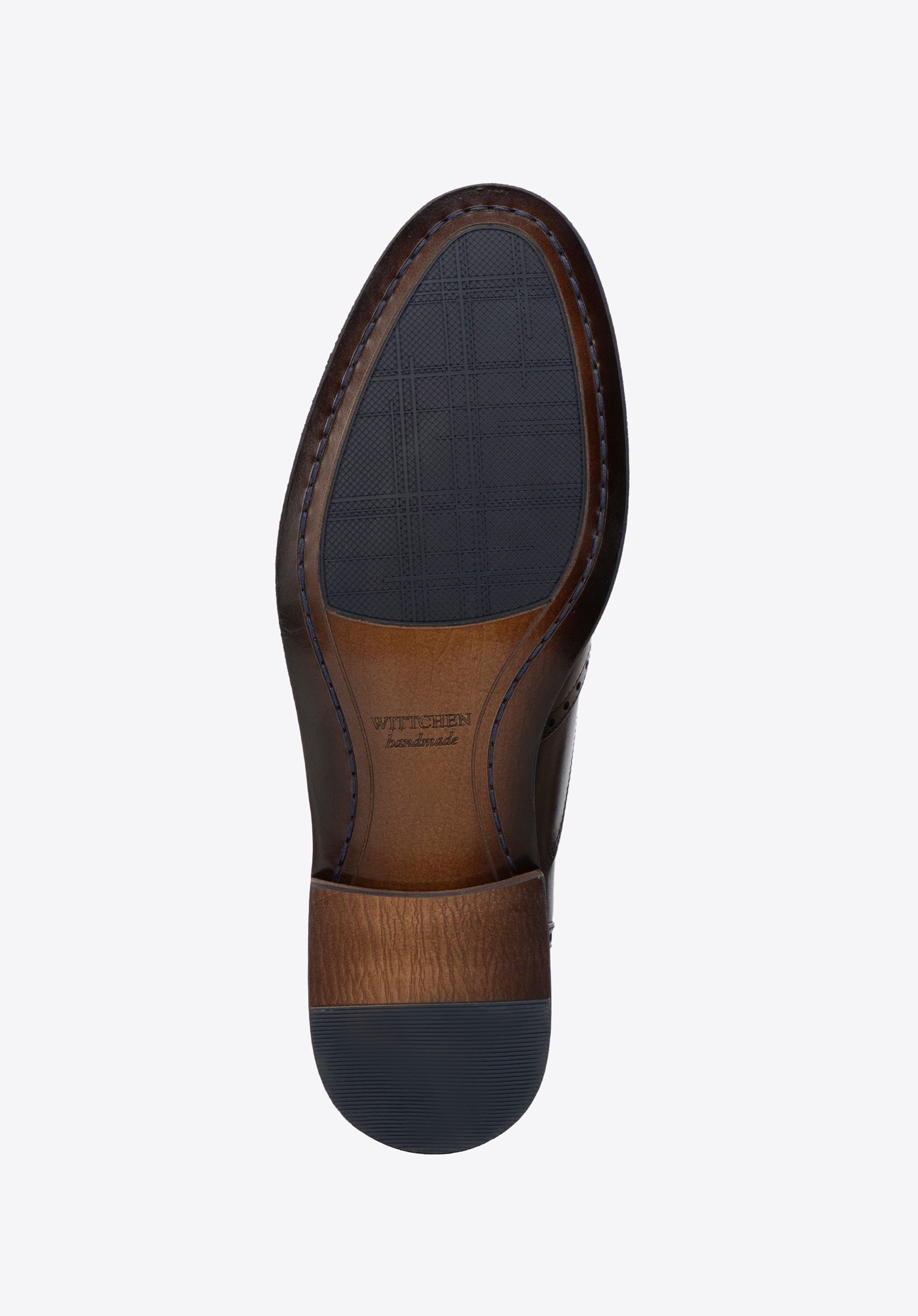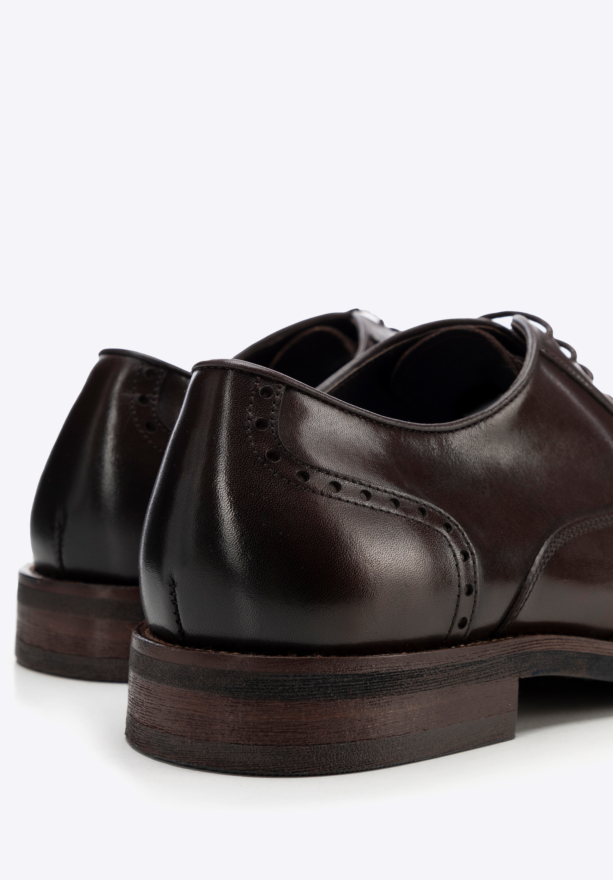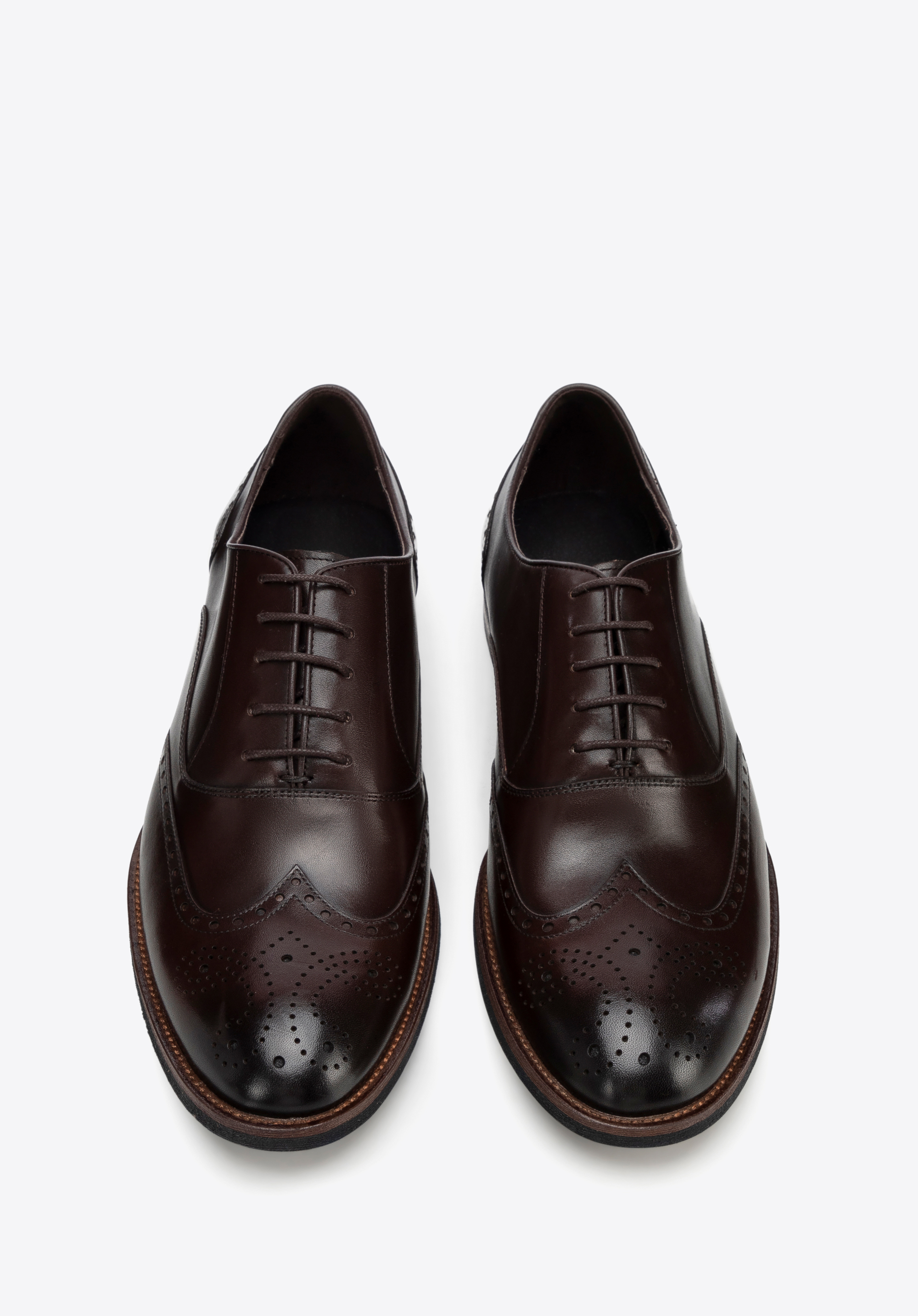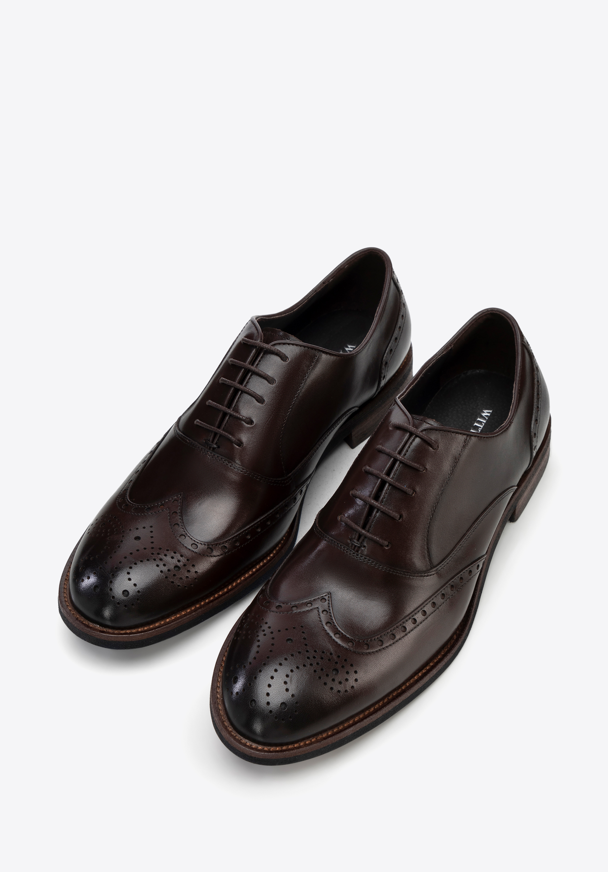 Objavte nadčasový štýl a precíznosť remeselného spracovania v luxusných pánskych topánkach. Tieto pánske topánky vyrobené z najkvalitnejšej hovädzej kože zaujmú svojim sofistikovaným vzhľadom, odolnosťou a zmyslom pre detail. Charakteristické uzavreté šnurovanie zaisťuje dokonalé uchytenie, zatiaľ čo bohatá perforácia po celom povrchu dodáva ľahký pocit a rafinovaný charakter. Krídlová špička v mandľovom tvare dodáva topánkam štíhly, elegantný tvar a zvýrazňuje ich exkluzívny vzhľad.